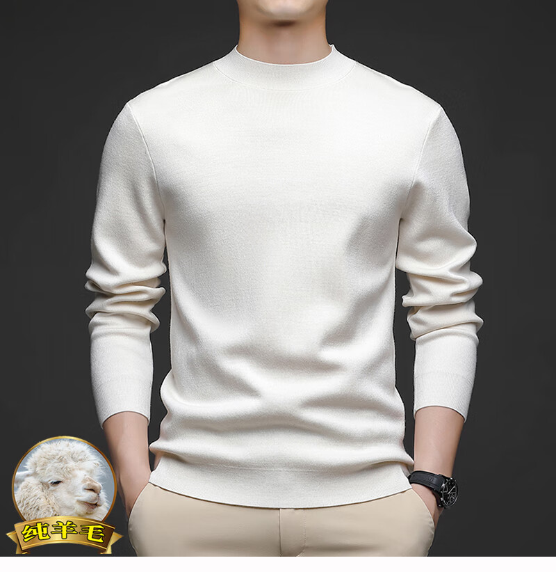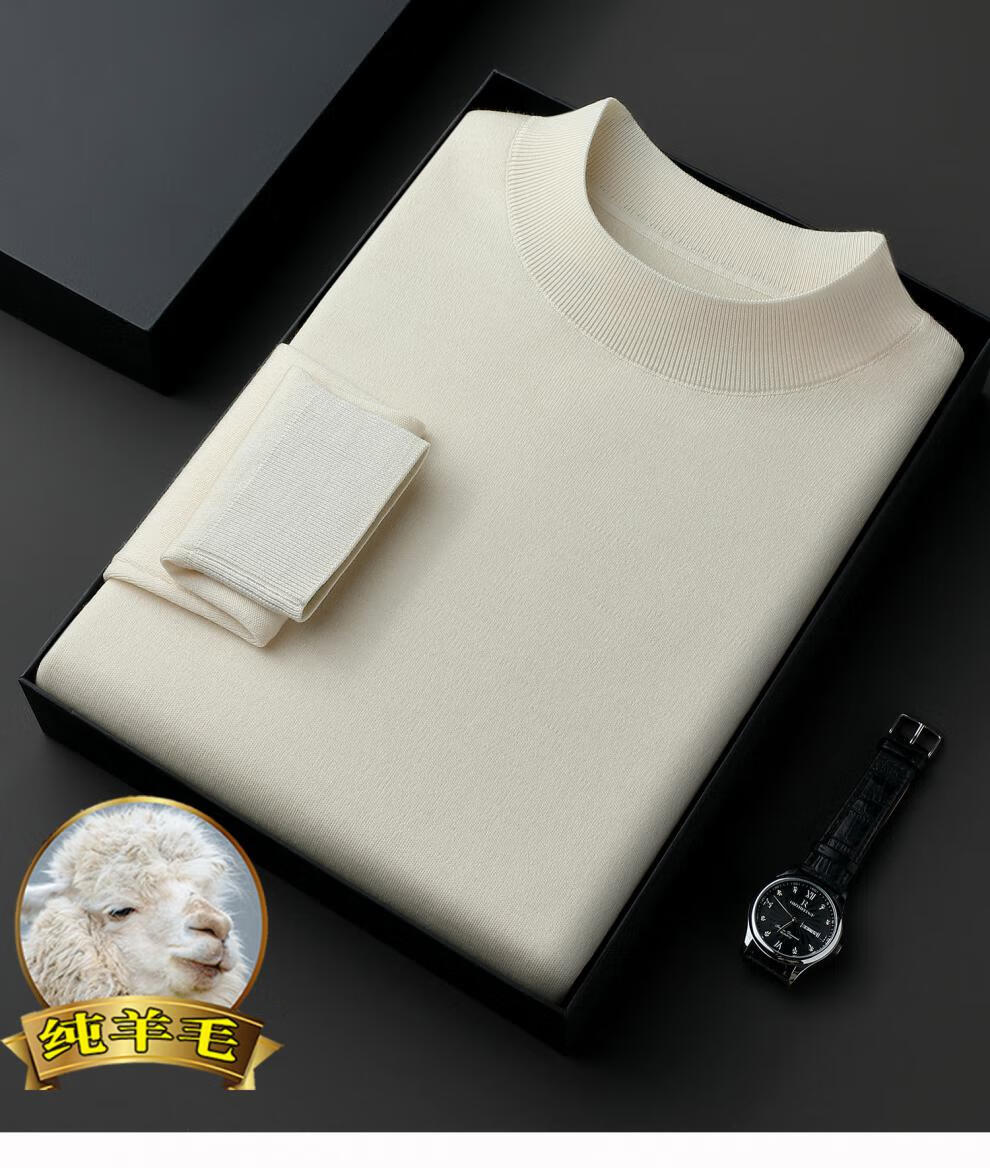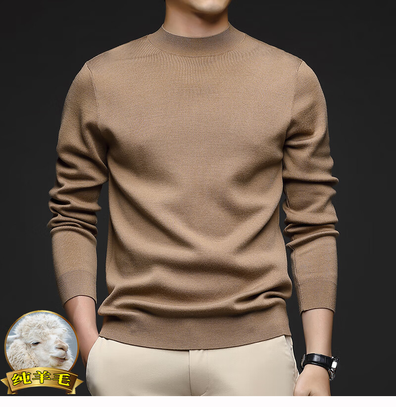 Hengyuanxiang Men's 100% Worsted Wool Sweater Machine Washable Winter Mid-Collar Sweater Woolen Sweater Warm Bottoming Shirt Men's Top Light Brown Pure 100% Selected Fine Wool 175/XL High-end Brand Men's Clothing