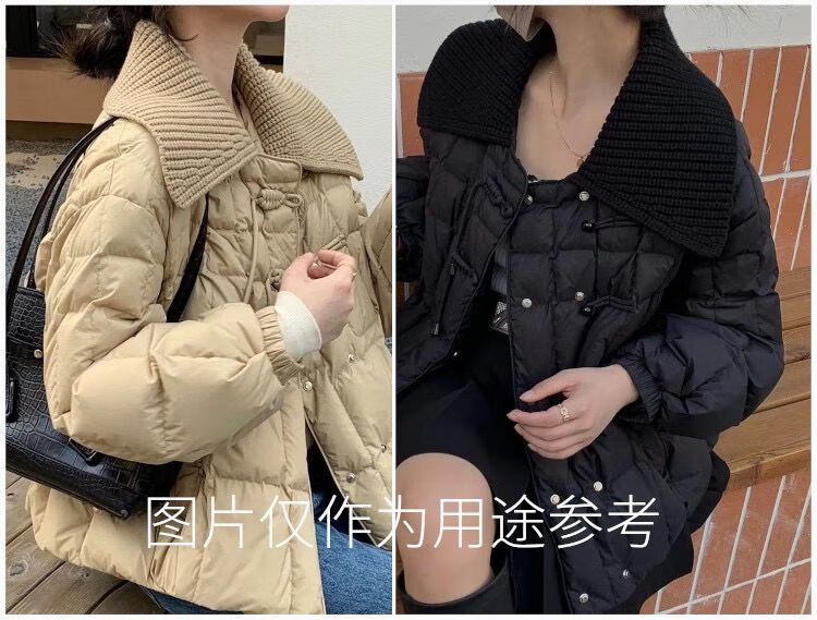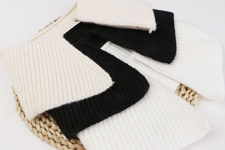 Mu Xiado Down Jacket Collar Protective Cover Wool Ribbed Lapel Knitted Threaded Square Collar Autumn and Winter Sweater Fake Collar Down Jacket Anti-Black Large 52CM