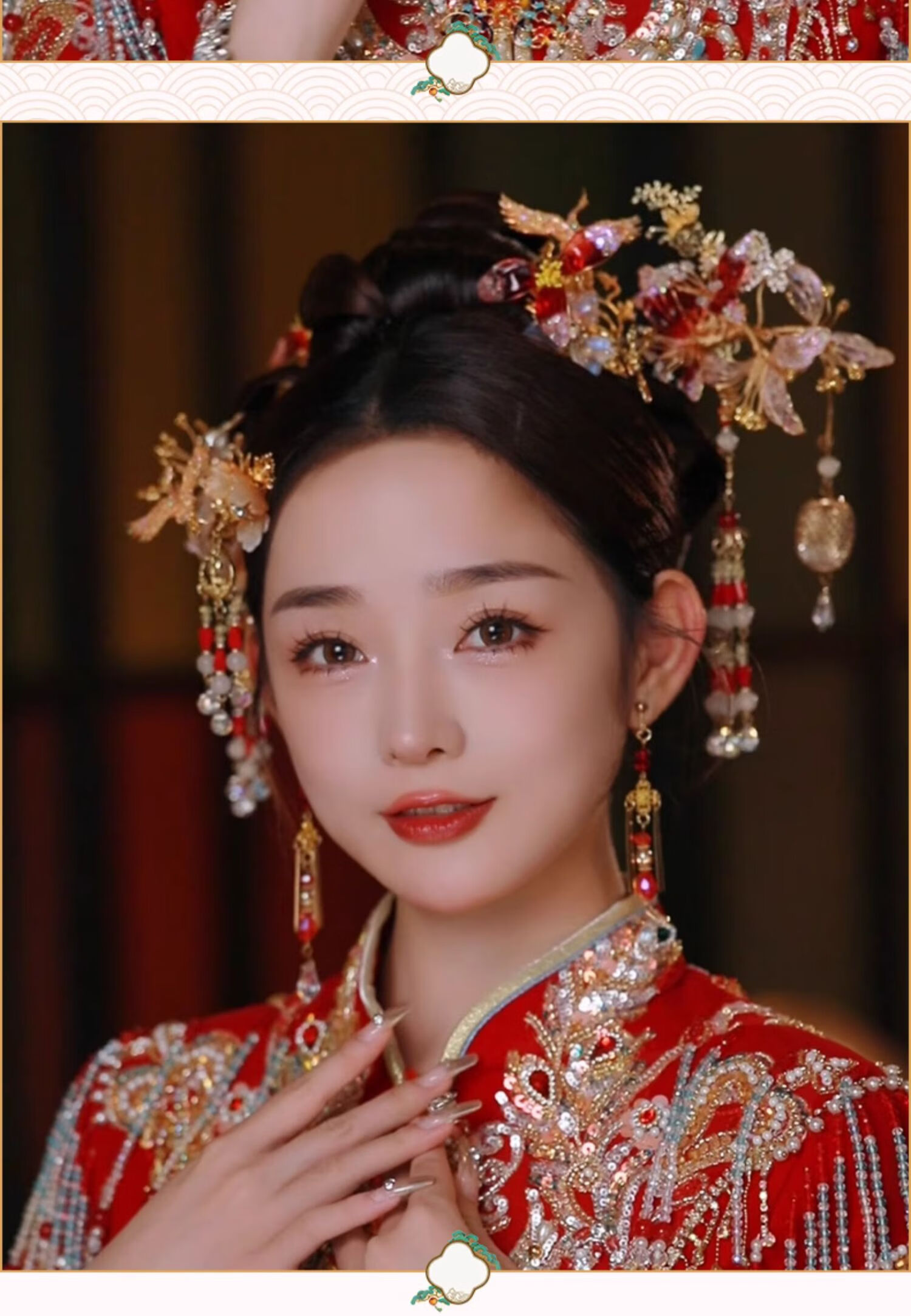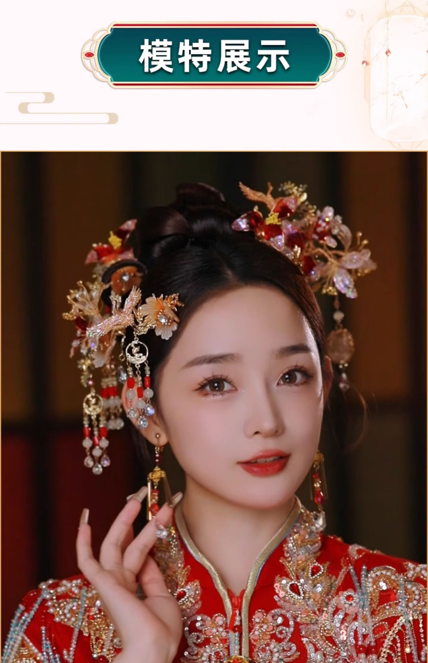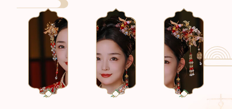 Mixin new 2025 new Chinese style light-colored Xiuhe clothing headwear, age-reducing dressing gown accessories, small lantern hairpin Xiuhe hair accessories, gold and red six-piece set of earring clips