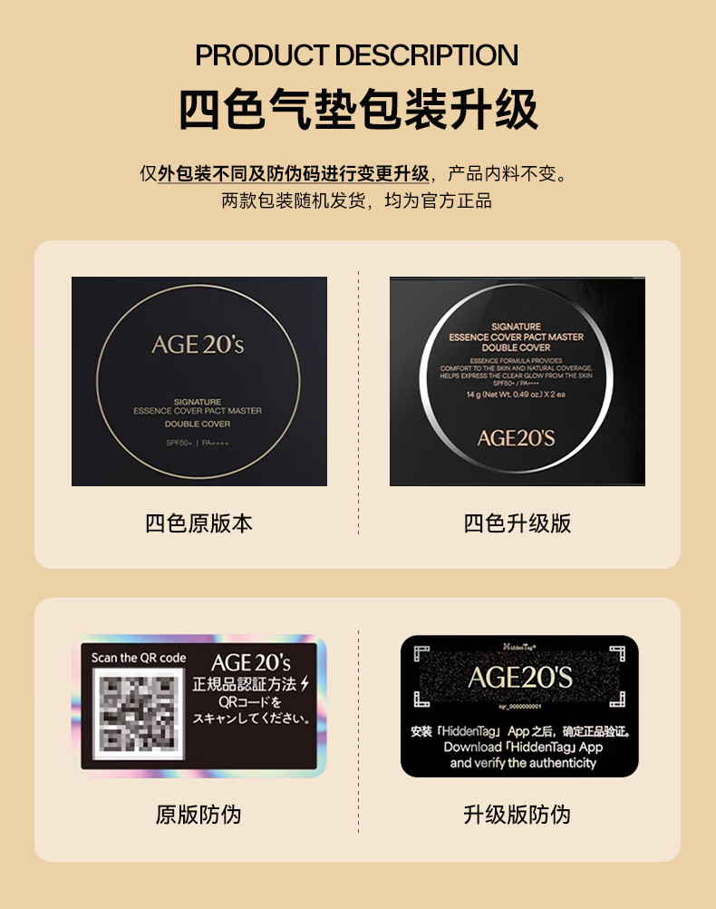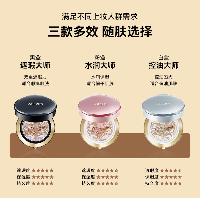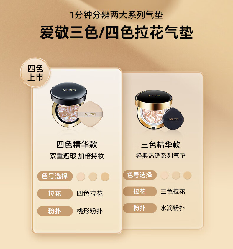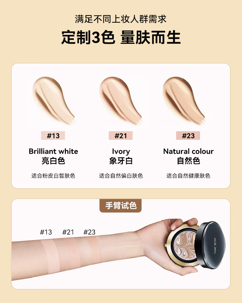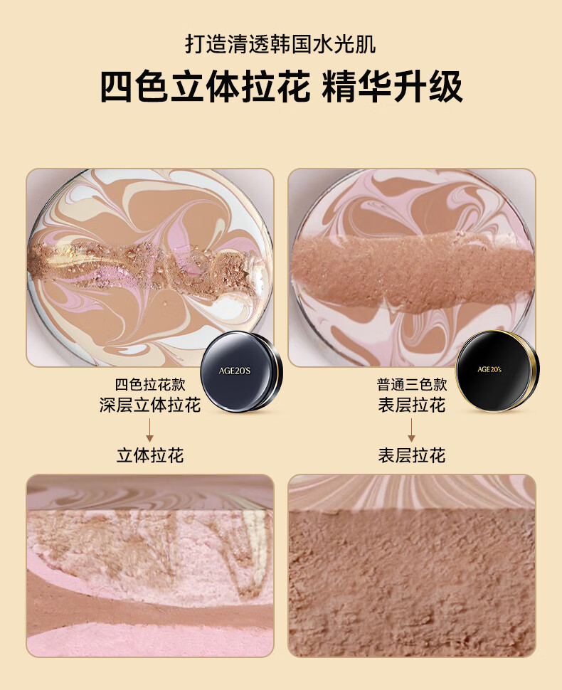 Aekyung Age 20 s Korean imported four-color latte art air cushion SPF50+ concealer long-lasting oil control BB cream foundation 14g/only*2 four-color concealer master No. 21 #ivory white