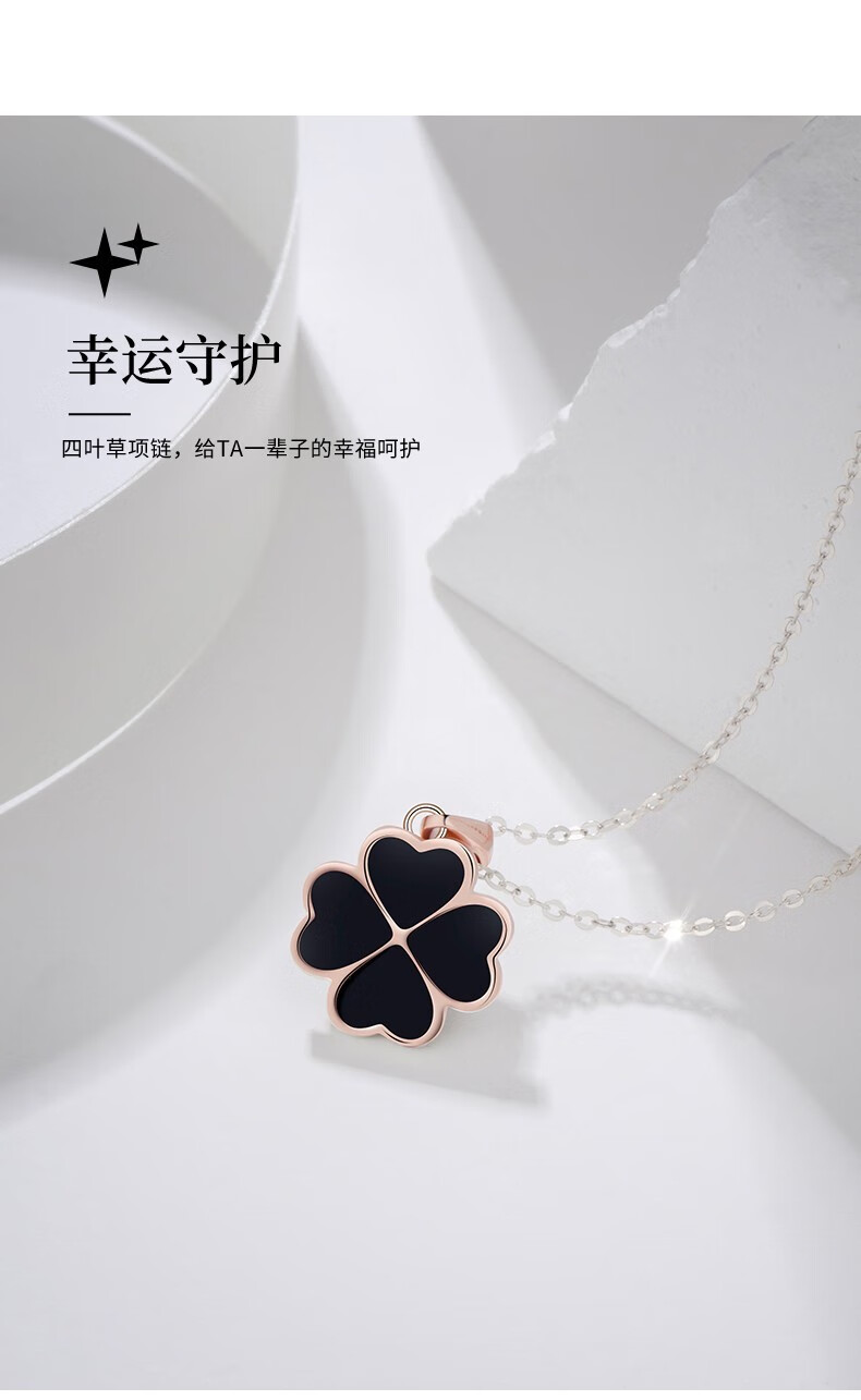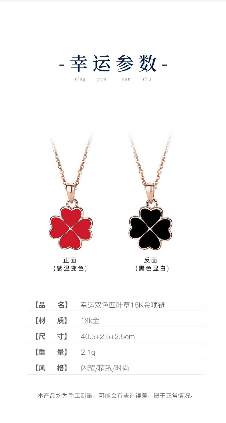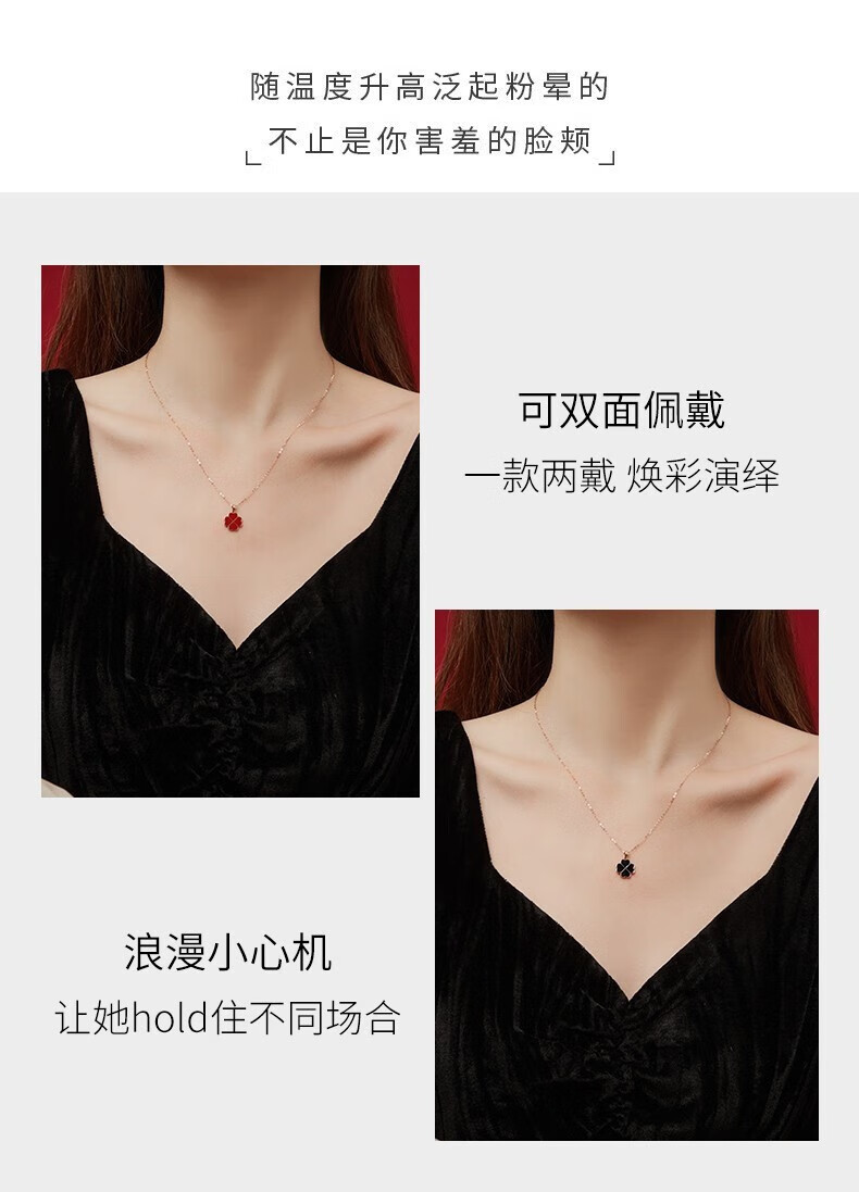 Givenchy light luxury 18K gold temperature-changing two-color four-leaf clover necklace women's gold jewelry birthday gift for wife lucky two-color four-leaf clover necklace (red and black)