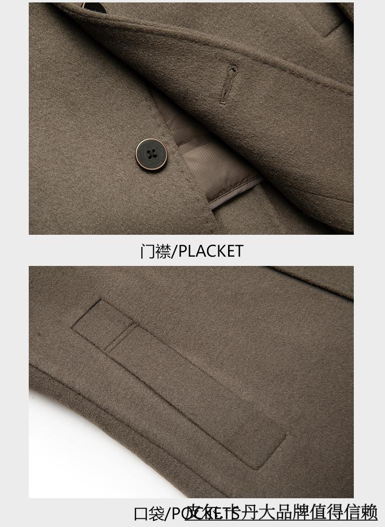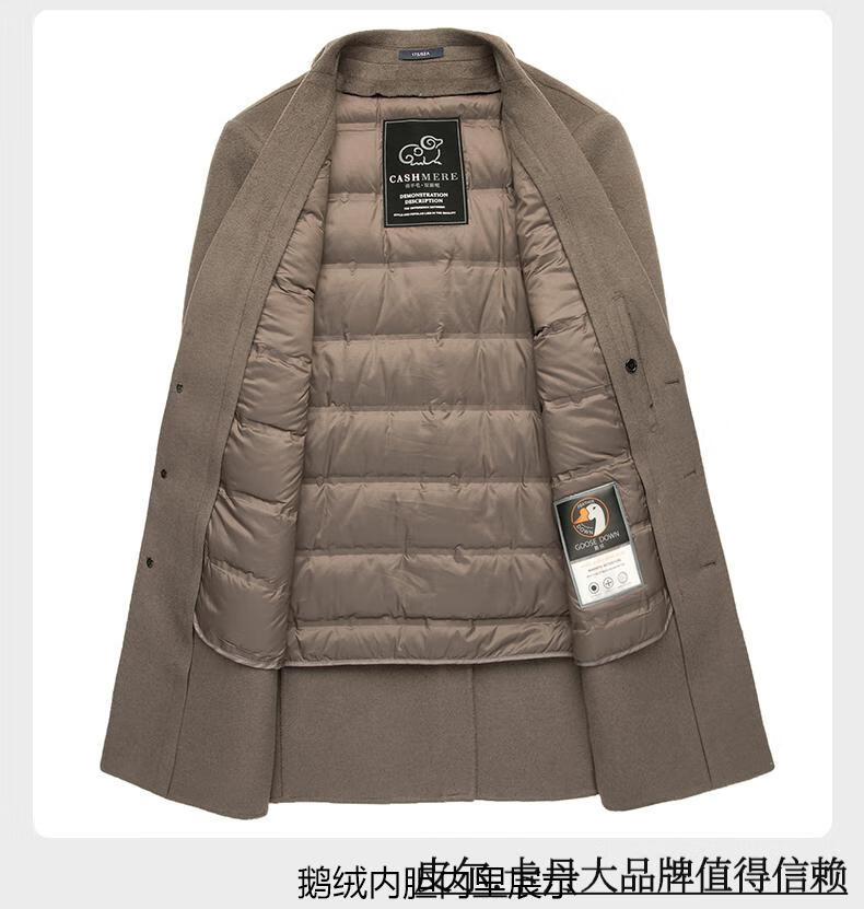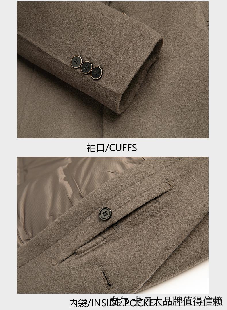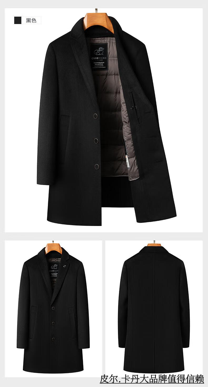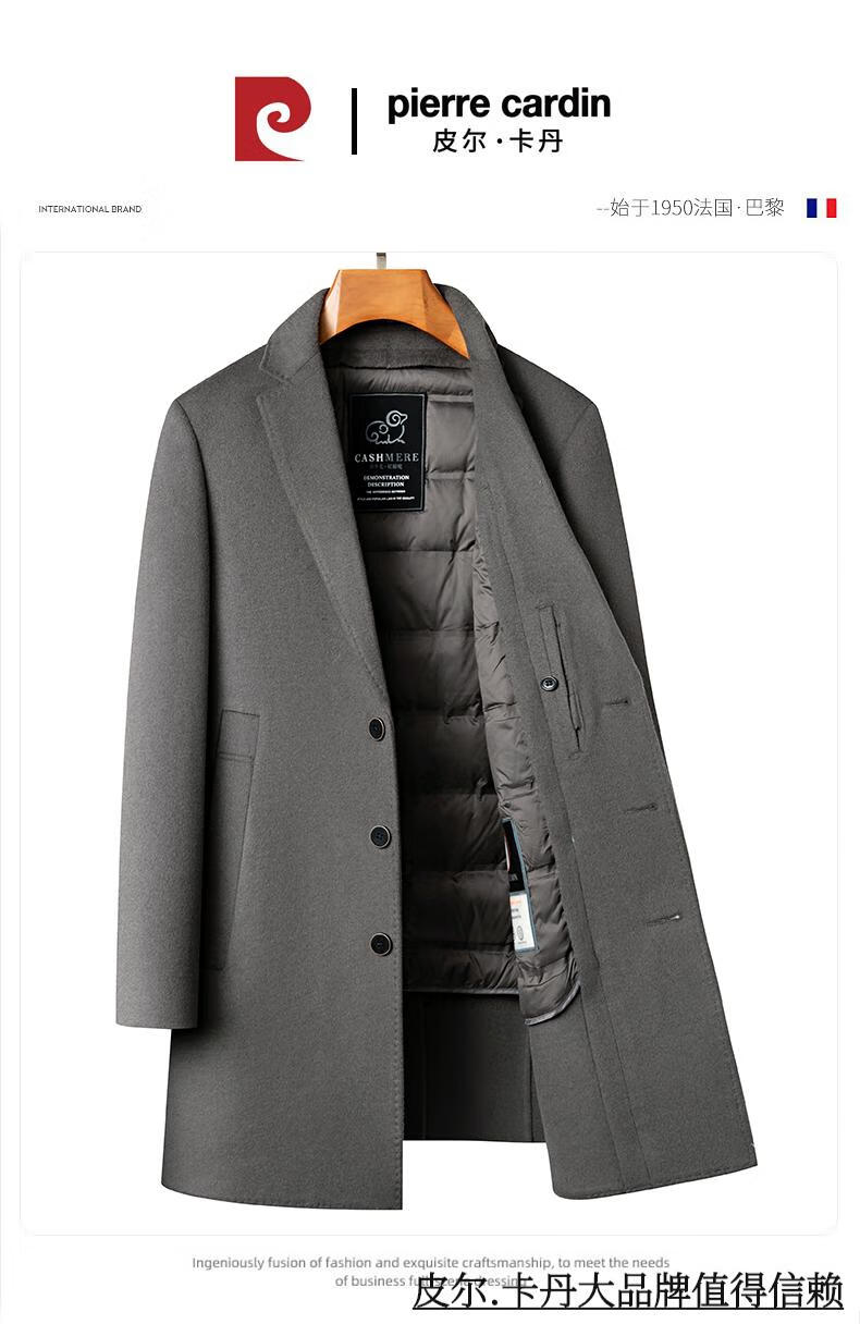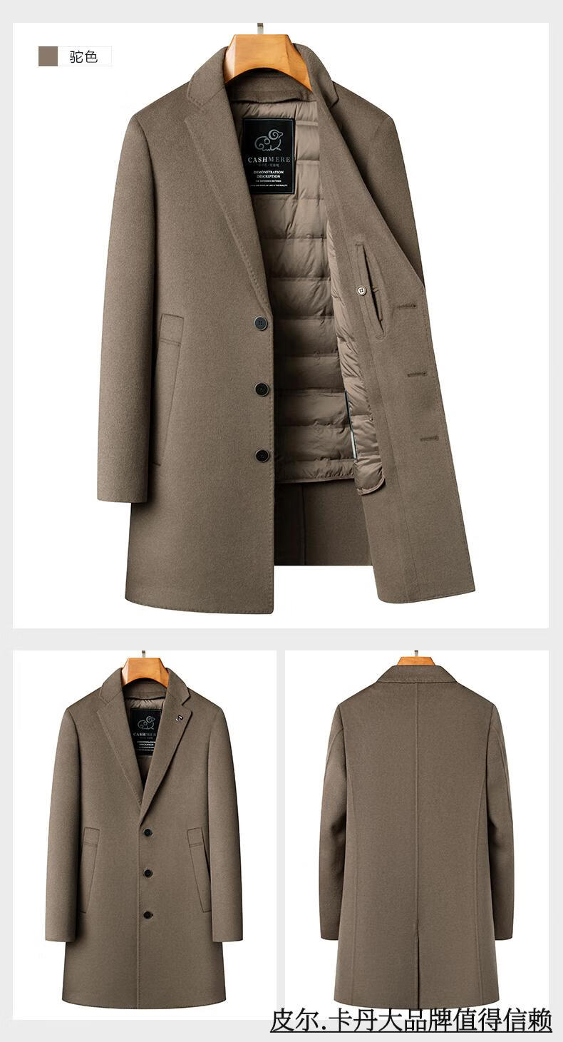Pierre Cardin high-end double-sided cashmere woolen coat men's mid-length thickened down lining woolen coat men's winter clothing camel 175/92A suitable for 125-145Jin Jin equals 0.5 kg