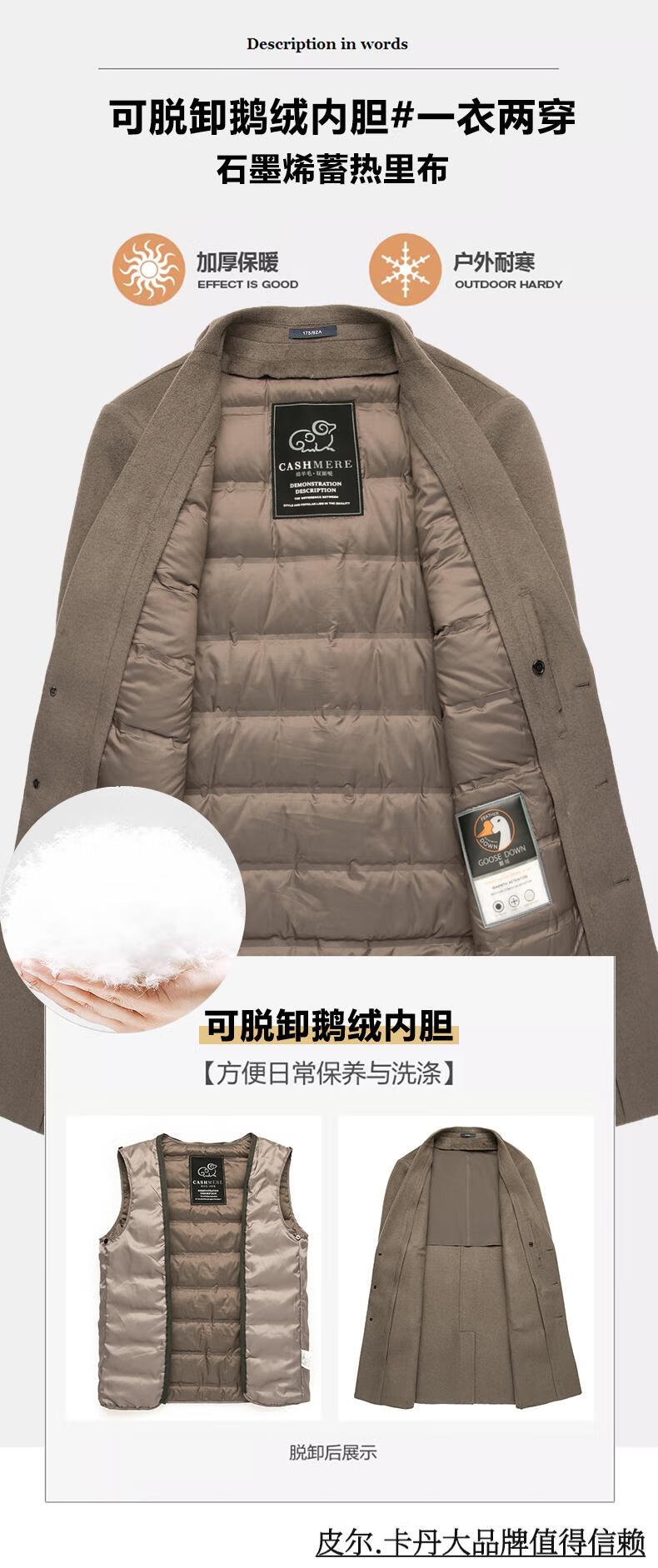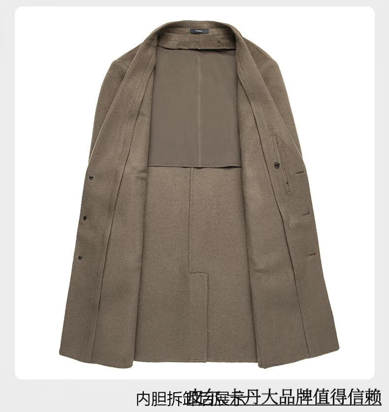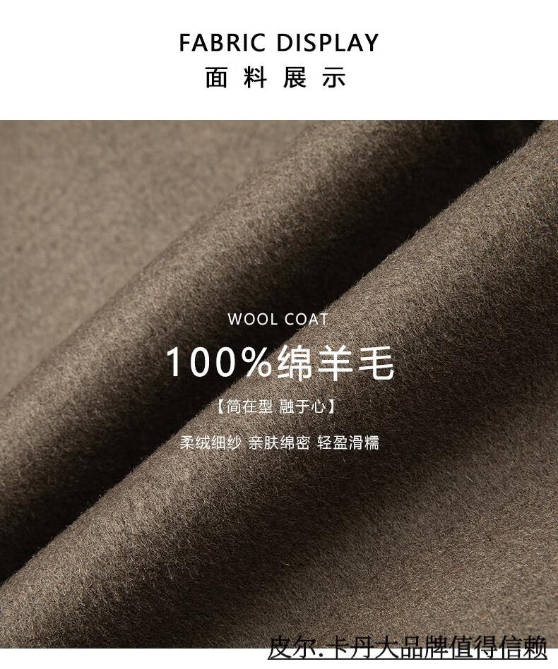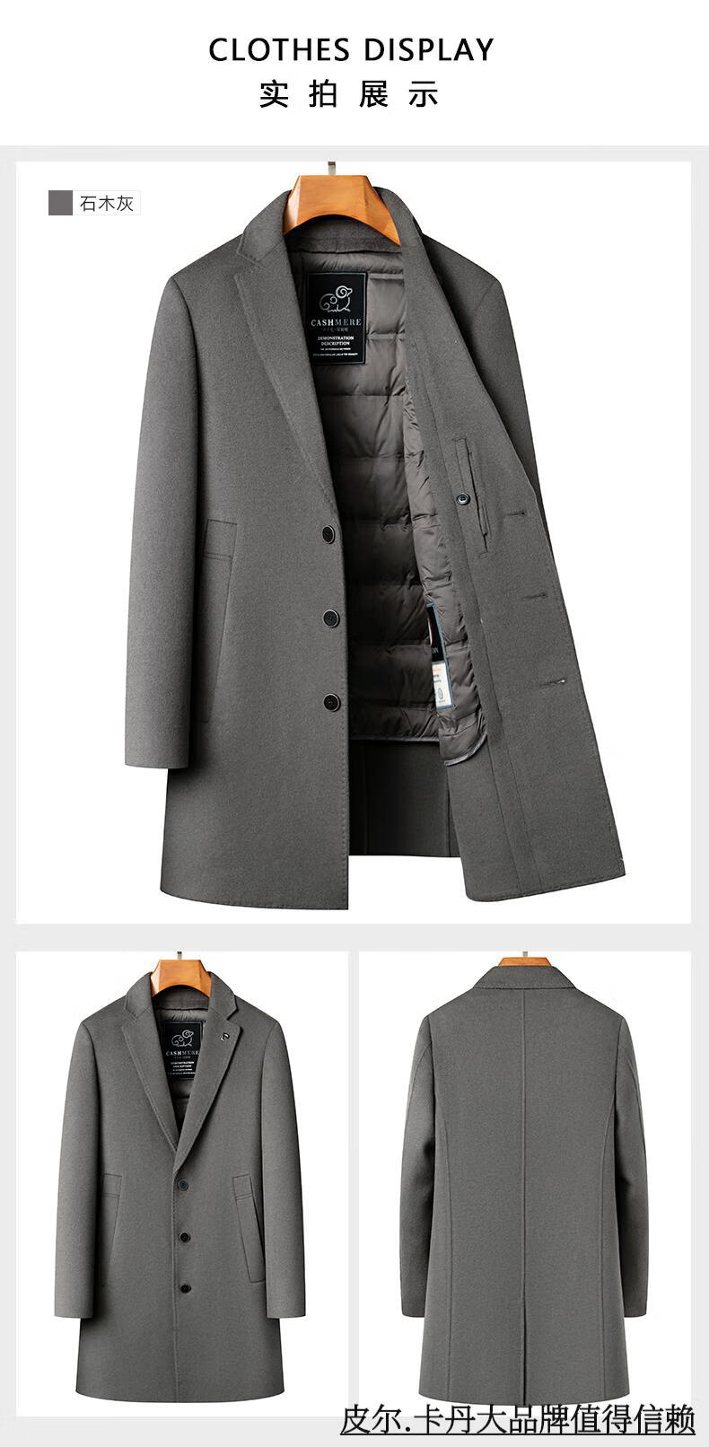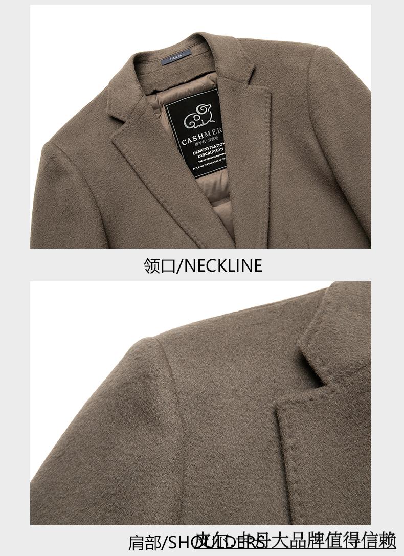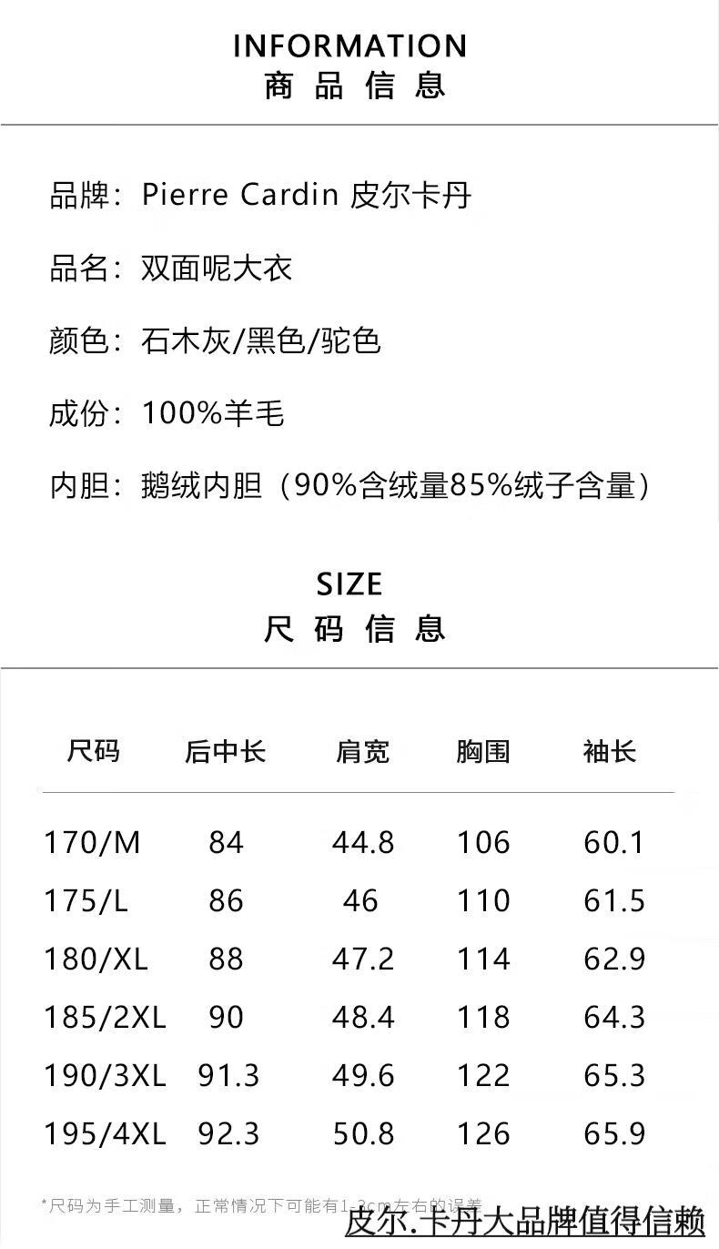 Pierre Cardin high-end double-sided cashmere woolen coat men's mid-length thickened down lining woolen coat men's winter clothing camel 175/92A suitable for 125-145Jin Jin equals 0.5 kg