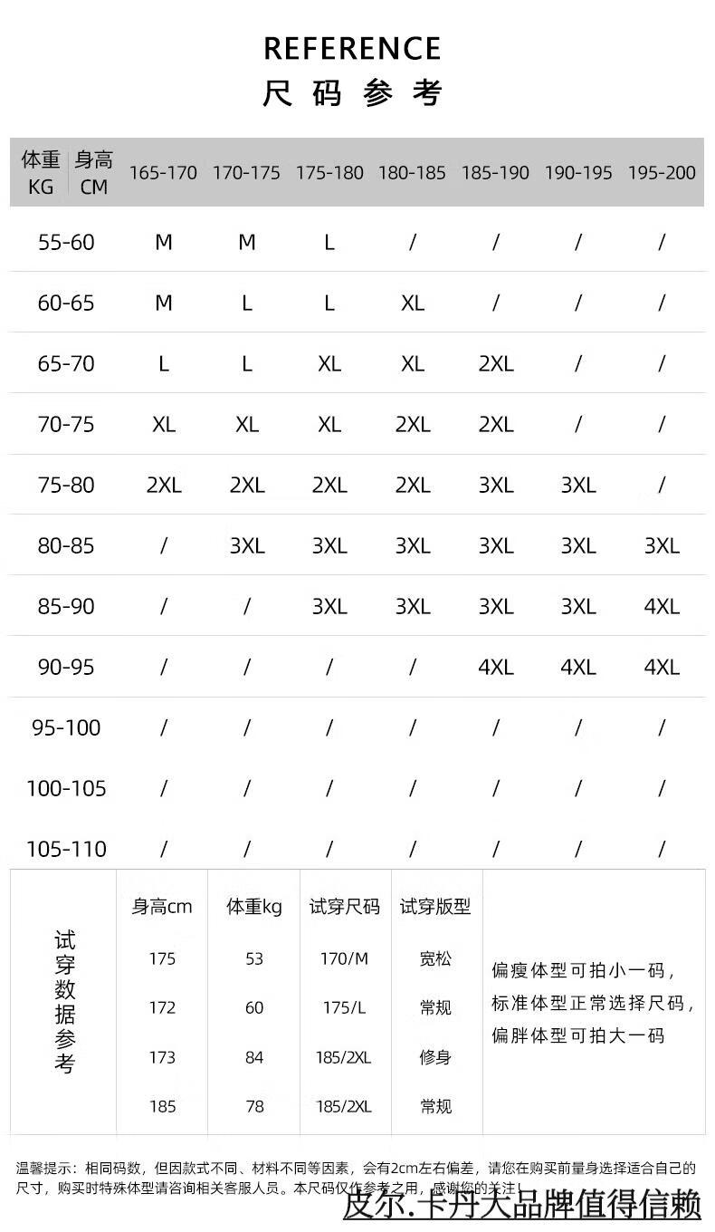 China (cm) 165 / 88-90 170 / 96-98 175 / 108-110 180 / 118-122 185 / 126-130