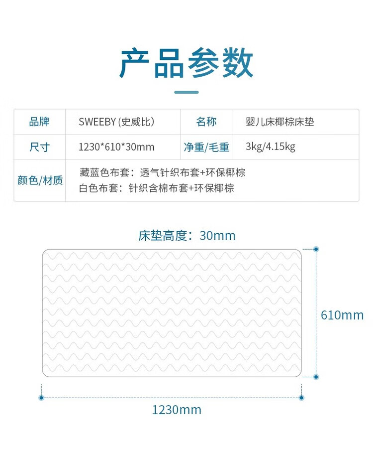 Sweeby Baby Mattress Natural Coconut Palm Mattress 3E Coconut Dream Baby Mattress Removable and Washable Breathable Palm Mat White - Cotton Cover (120*60) Natural Coconut Brown Silk