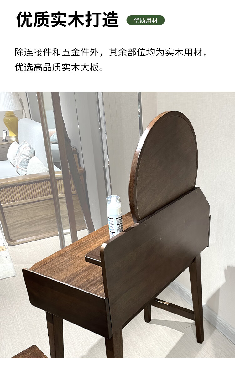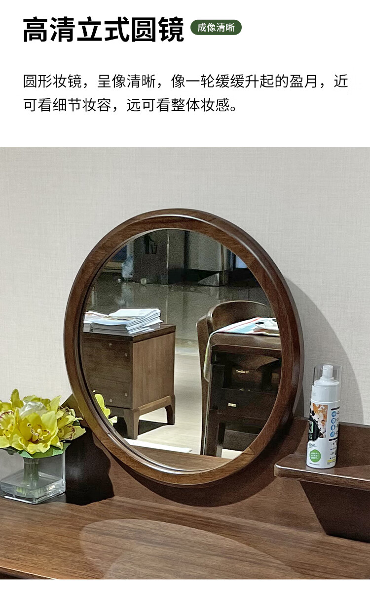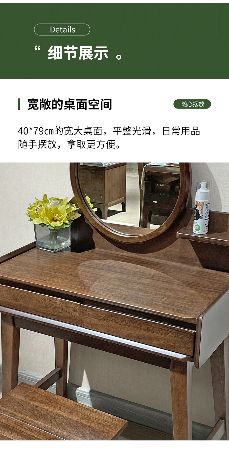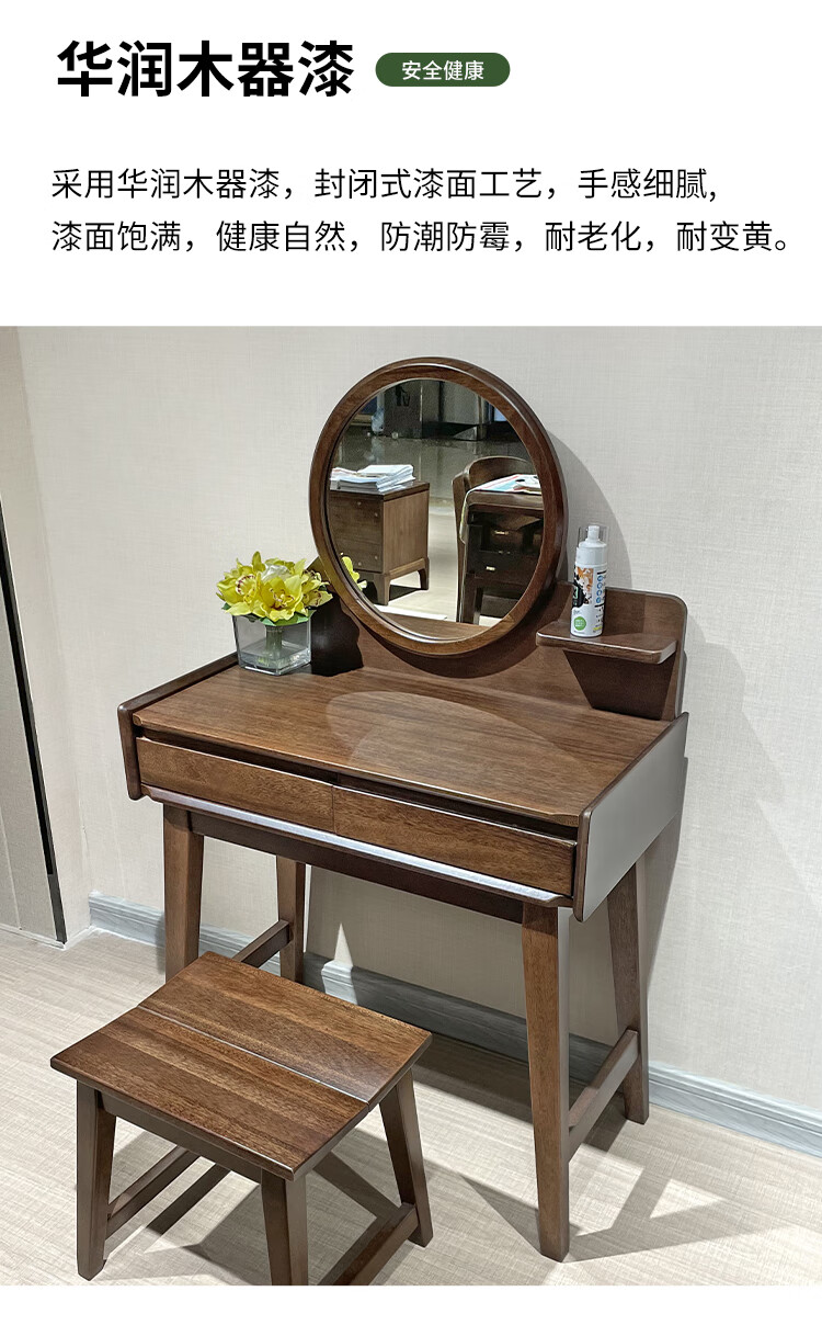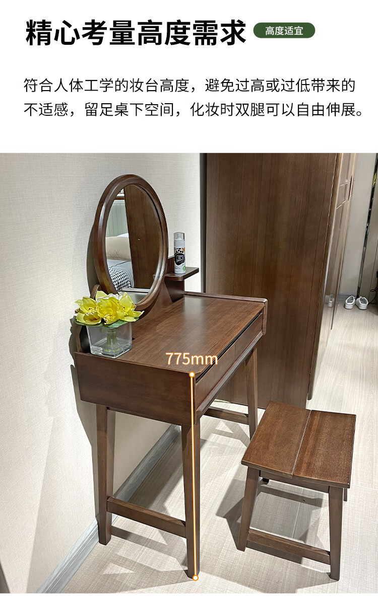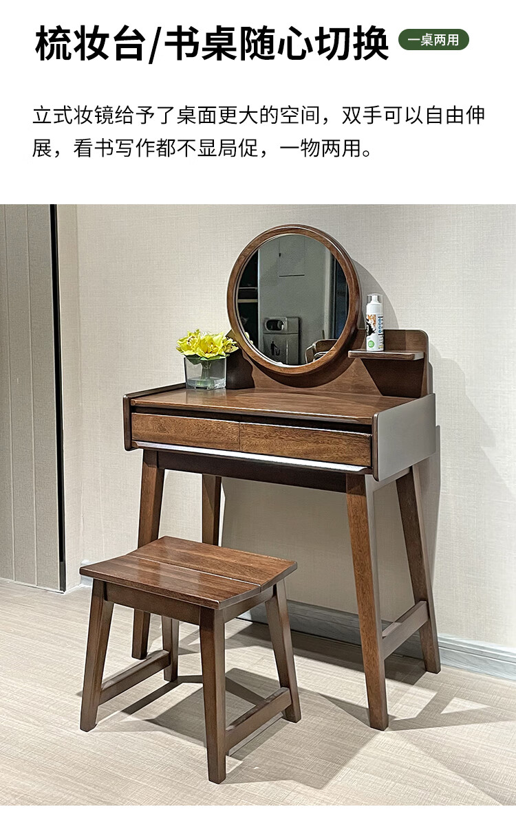 Feile Xiong walnut solid wood dresser modern simple home master bedroom dressing table storage cabinet integrated small dressing table walnut dresser + makeup stool 80*40*130cm