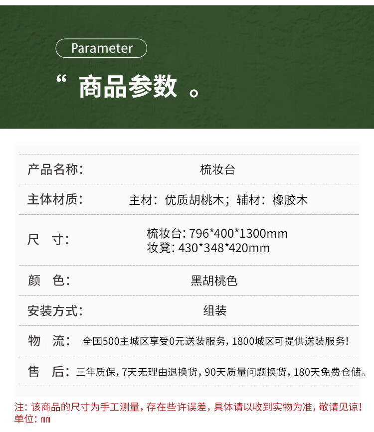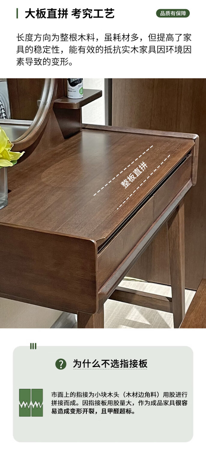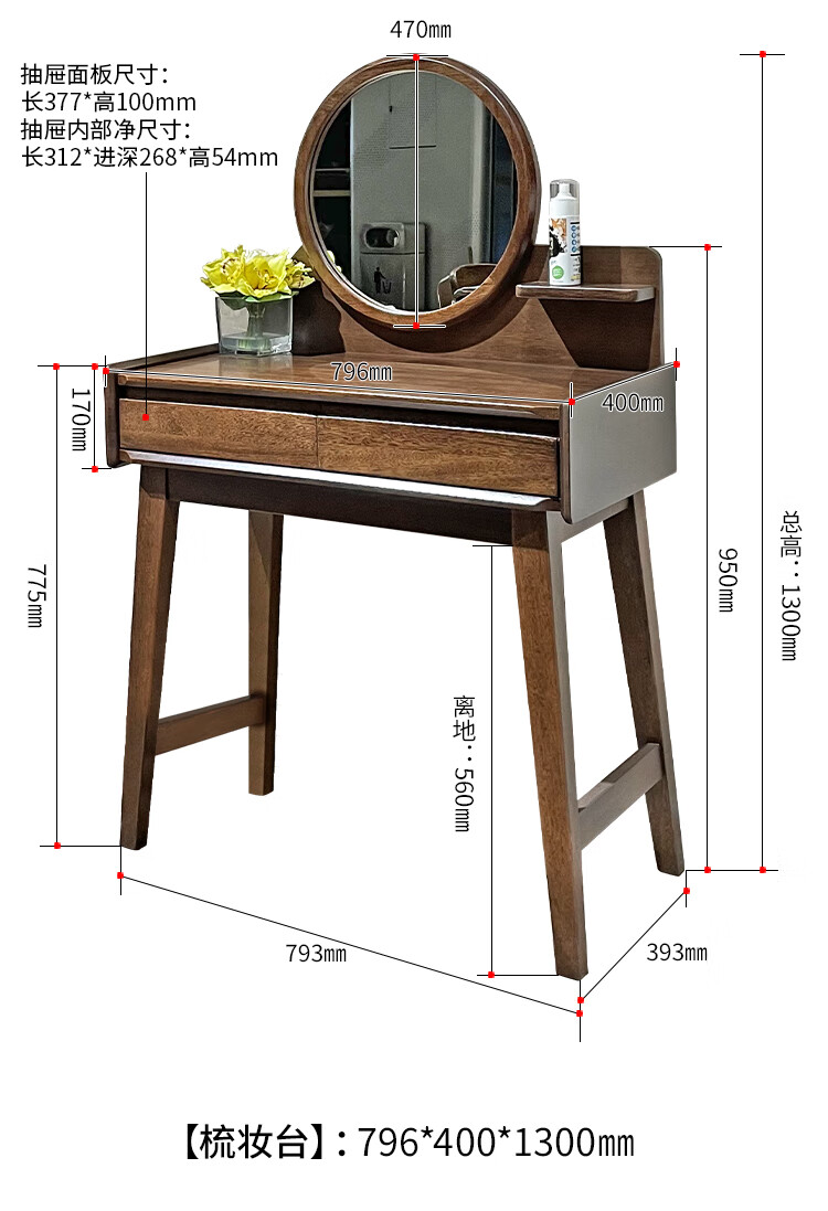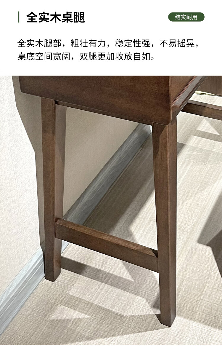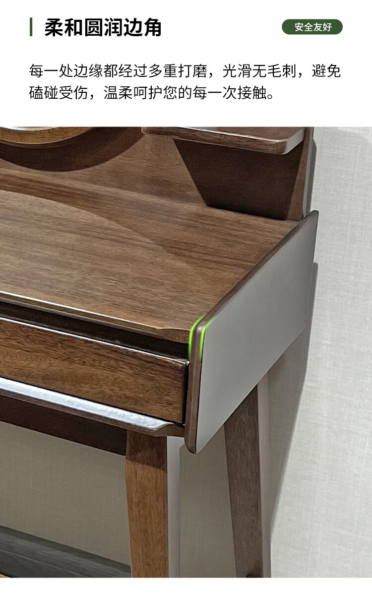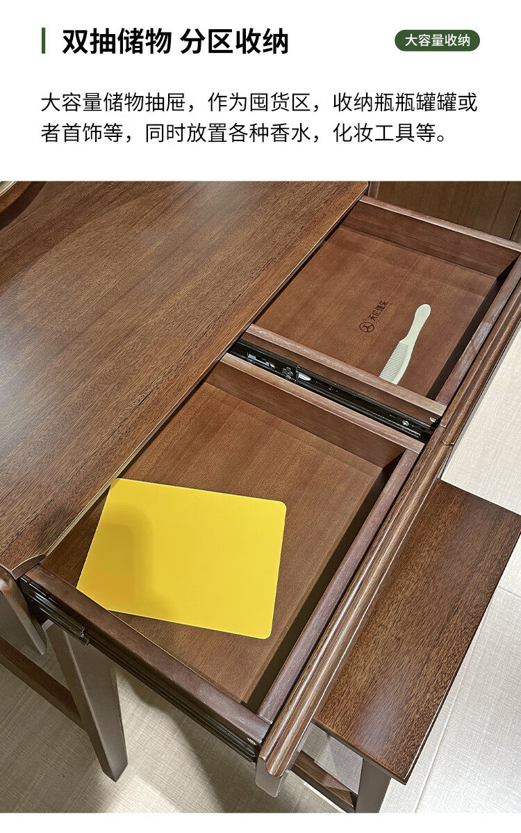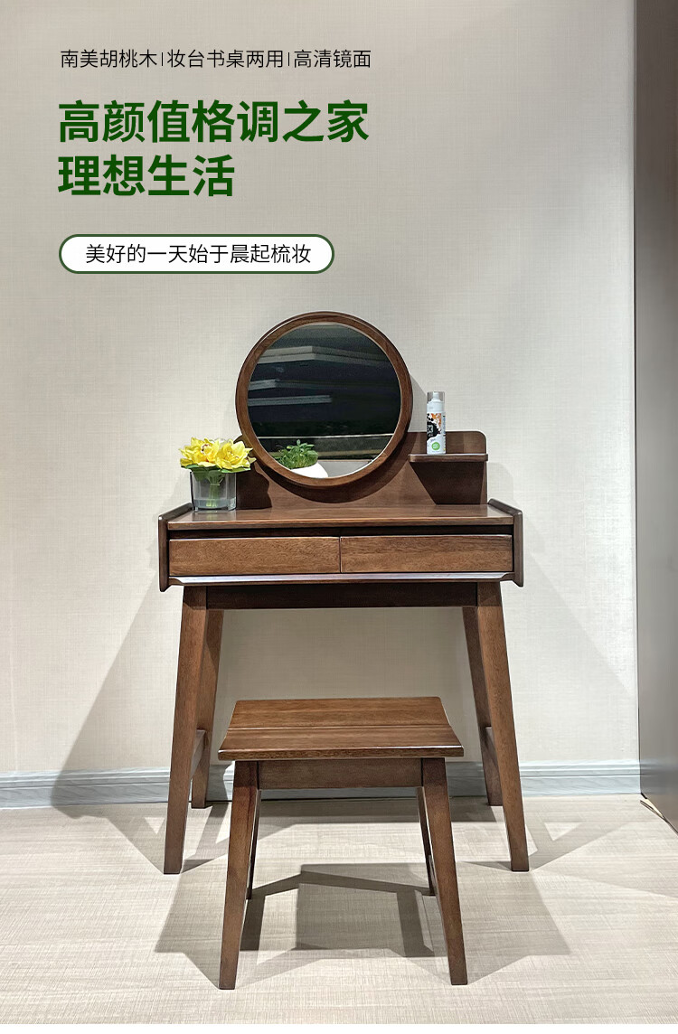 Feile Xiong walnut solid wood dresser modern simple home master bedroom dressing table storage cabinet integrated small dressing table walnut dresser + makeup stool 80*40*130cm