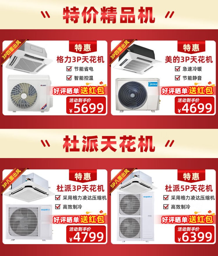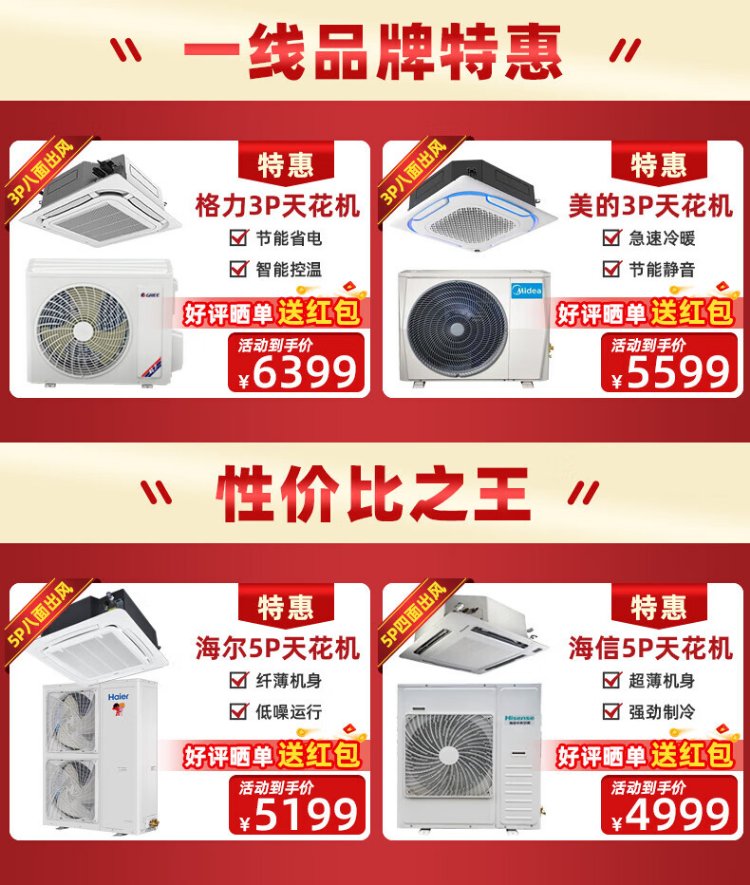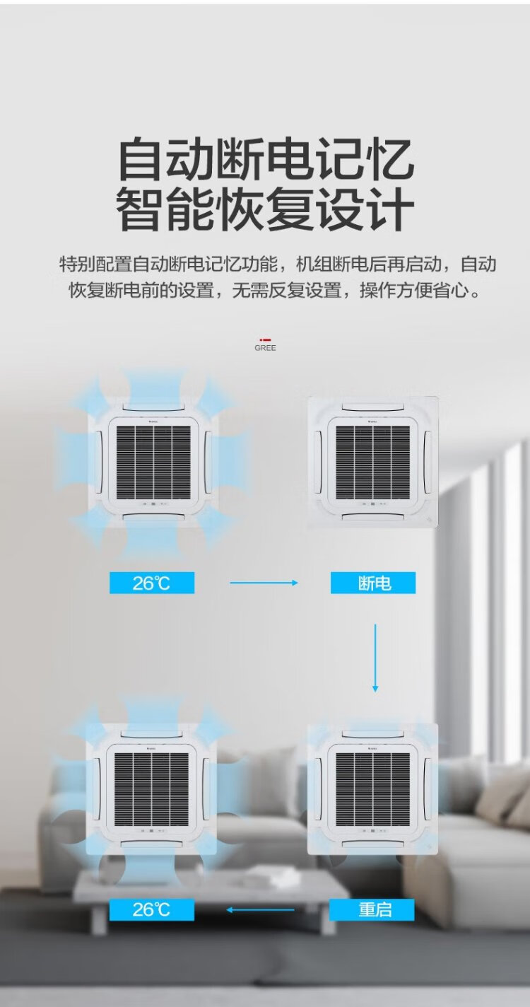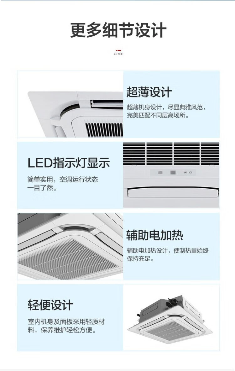 Gree (GREE) central air conditioning ceiling unit 5 HP/3 HP/2 HP ceiling-mounted one-to-one built-in office and commercial eight-side air outlet second-hand sample machine, package installation, 5-horse heating and cooling four-side air outlet
