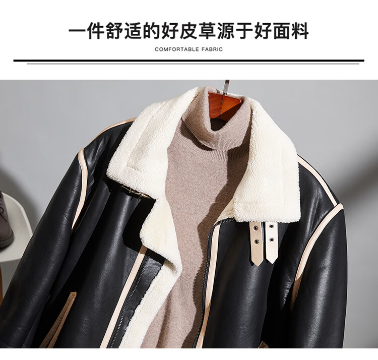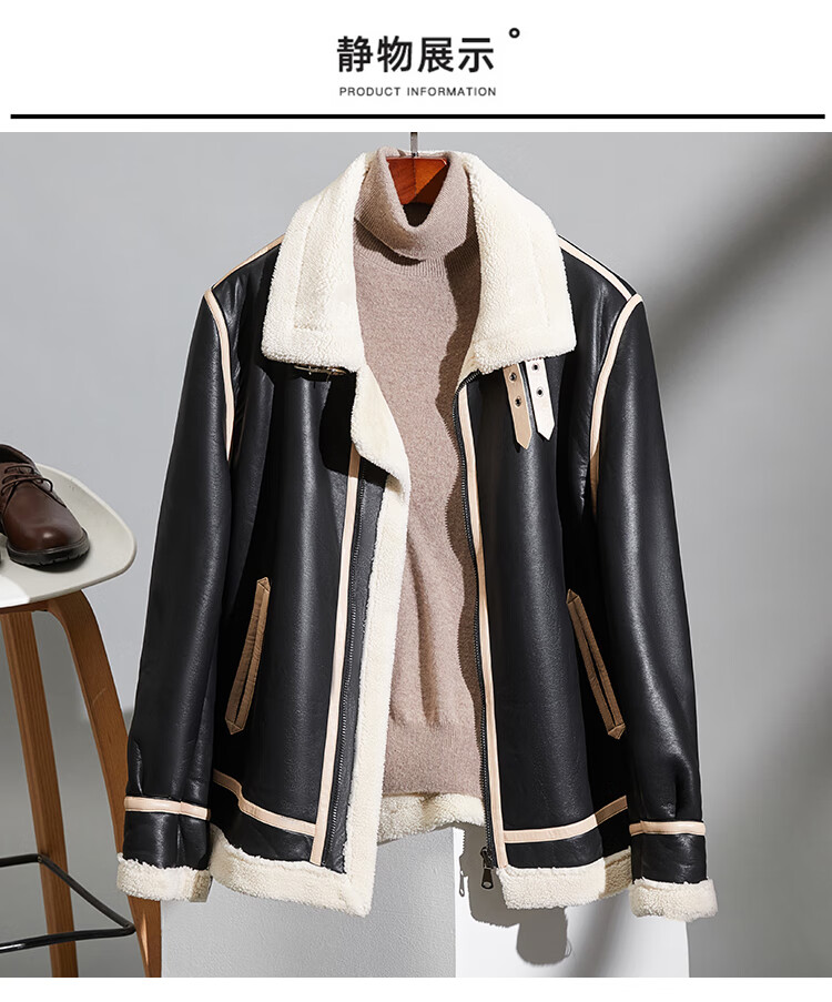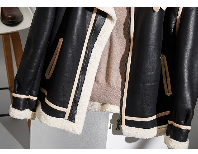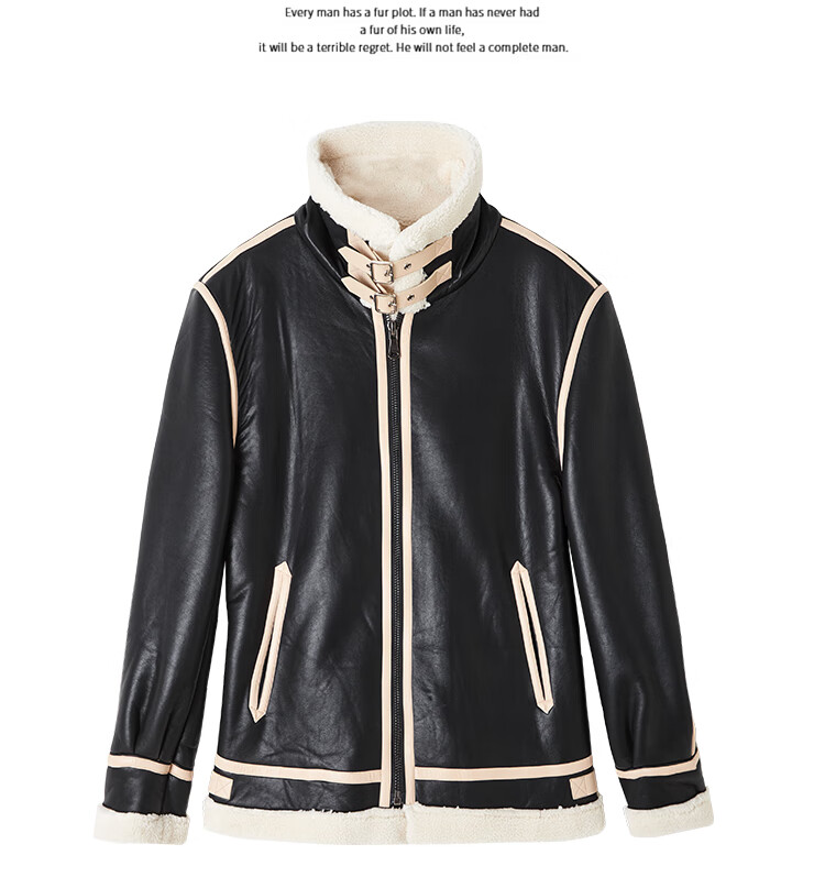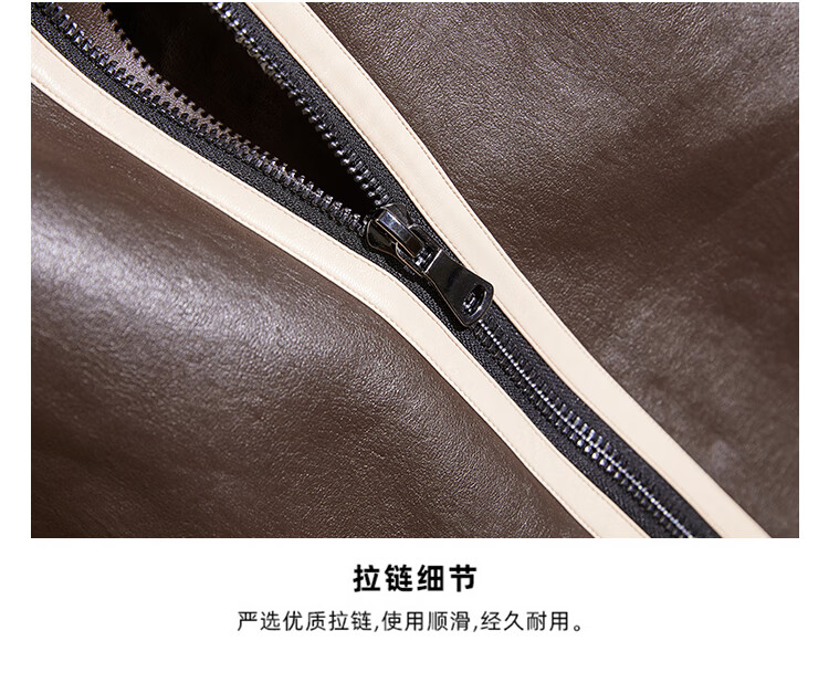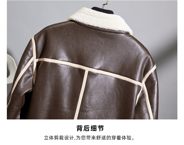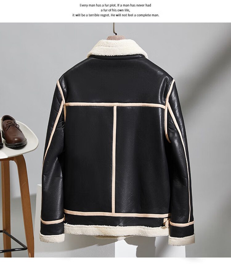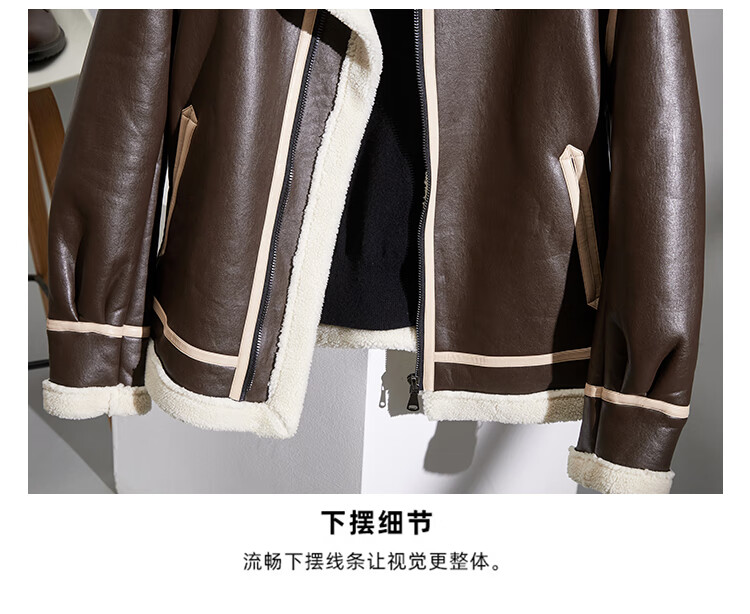 Pierre Cardin fur one-piece men's winter large size velvet thickened leather jacket short motorcycle jacket men's lamb wool jacket brown XL (light business)