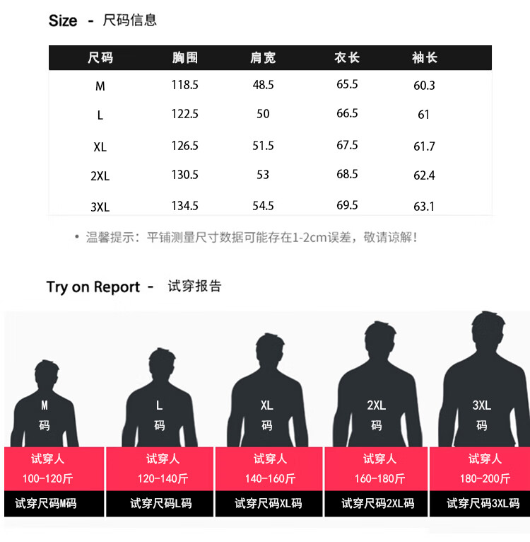 China (cm) 165 / 88-90 170 / 96-98 175 / 108-110 180 / 118-122 185 / 126-130