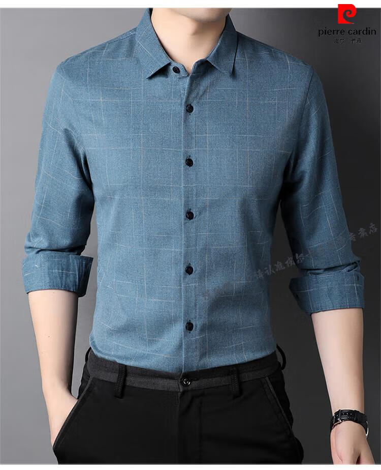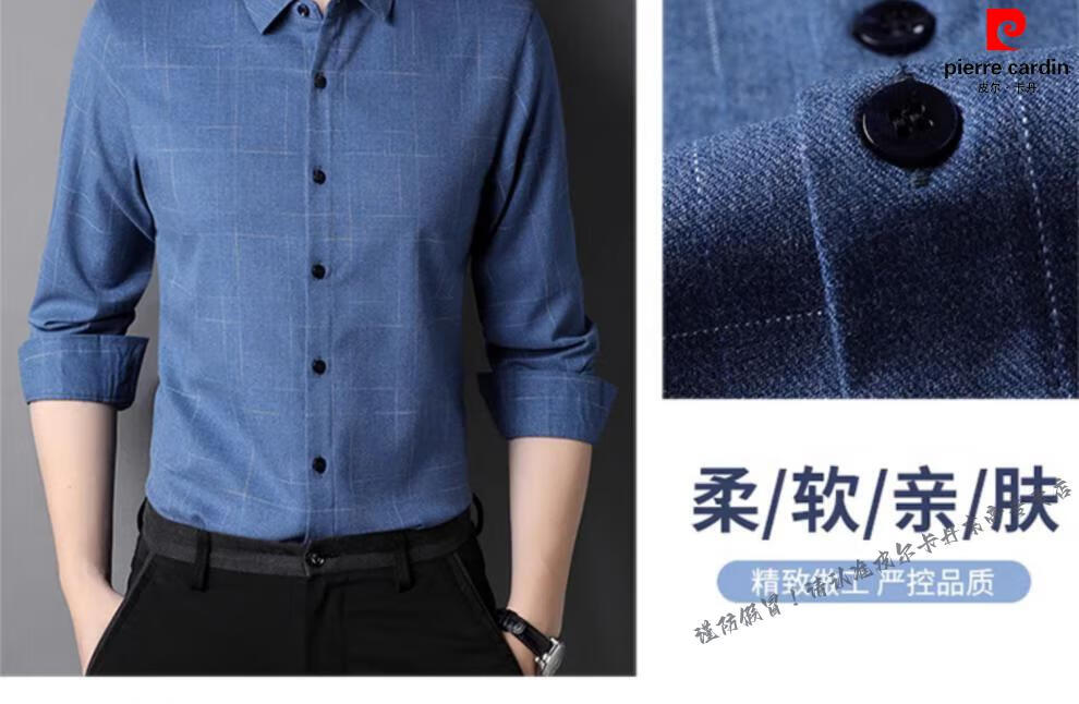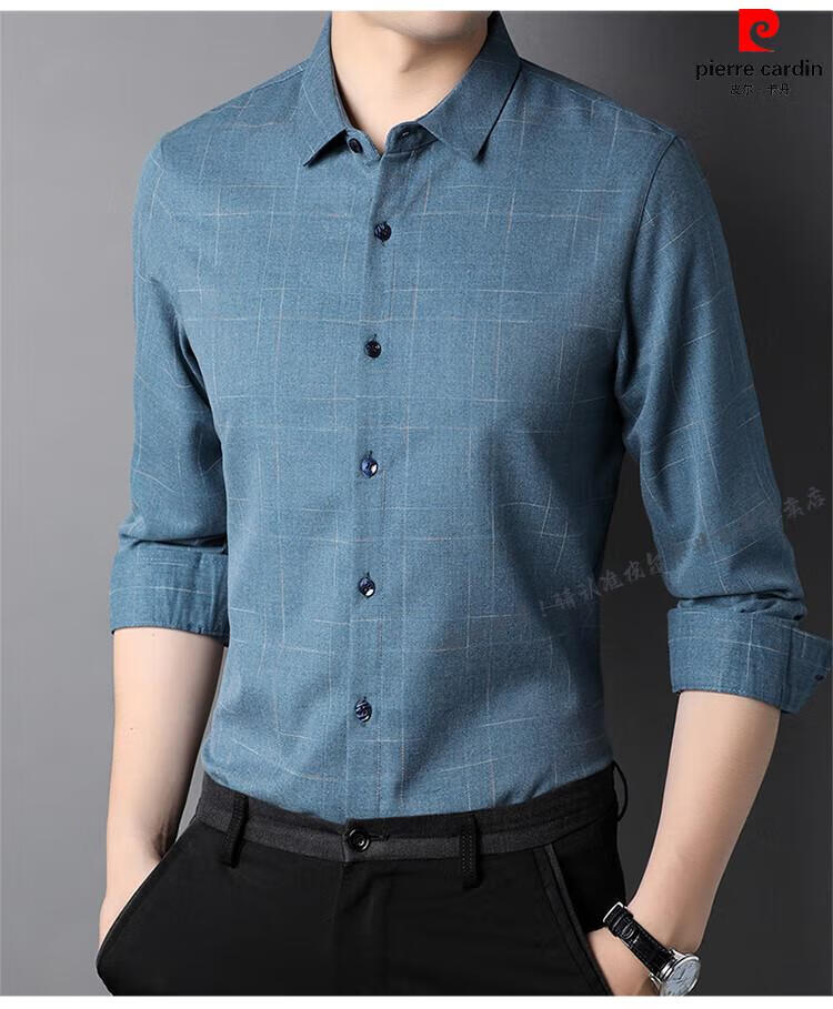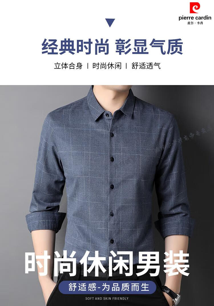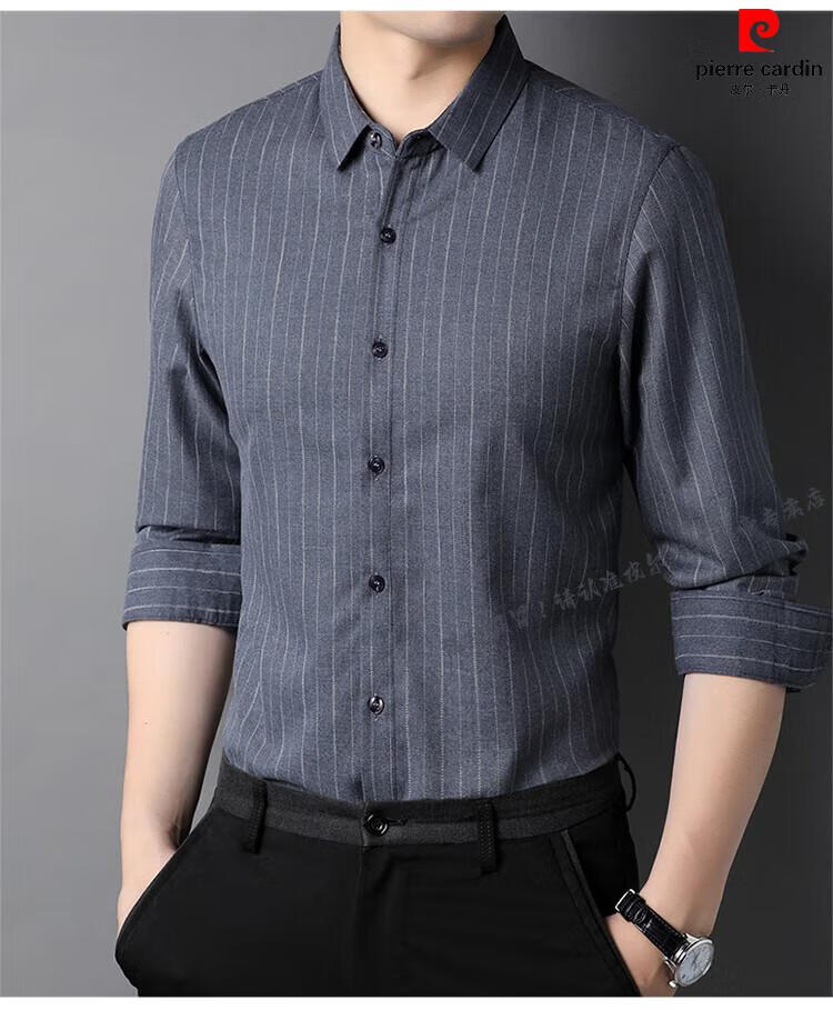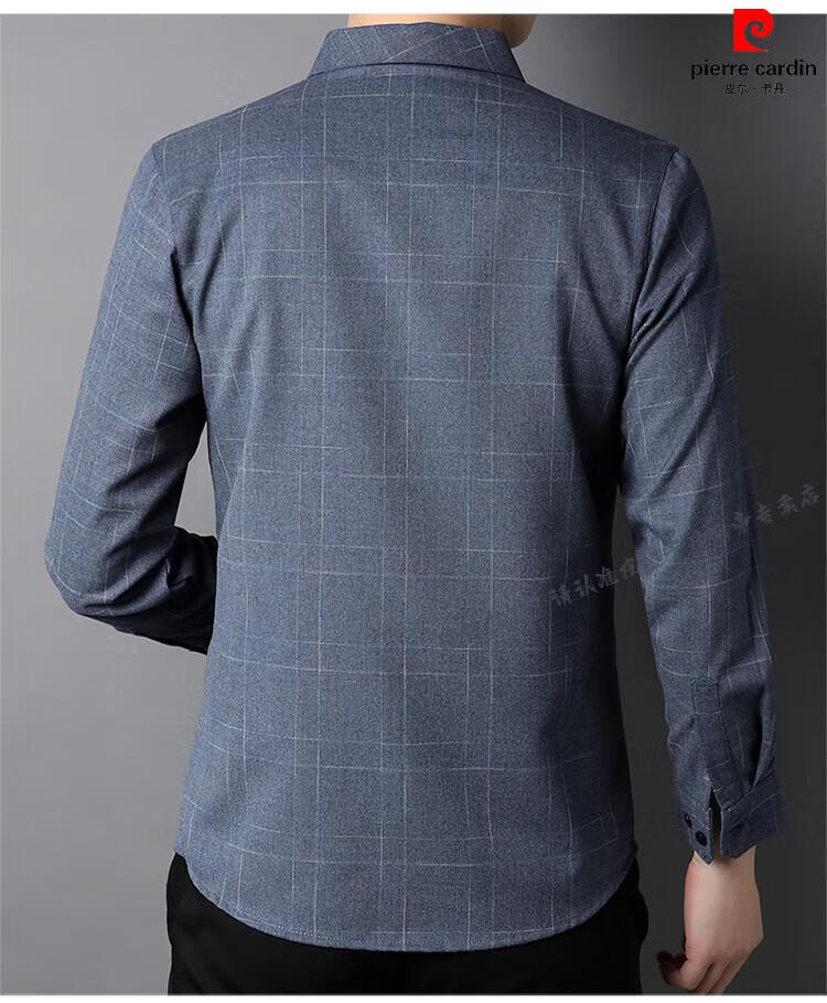 Pierre Cardin pure cotton comfortable and warm long-sleeved shirt men's winter thickened velvet business casual plaid warm shirt jacket gray (model) velvet XL 180 recommended 155-165Jin Jin equals 0.5 kg
