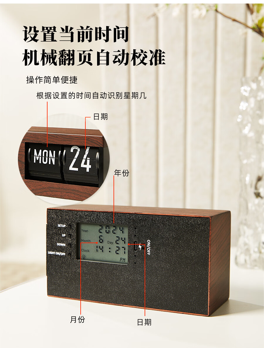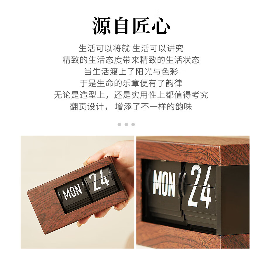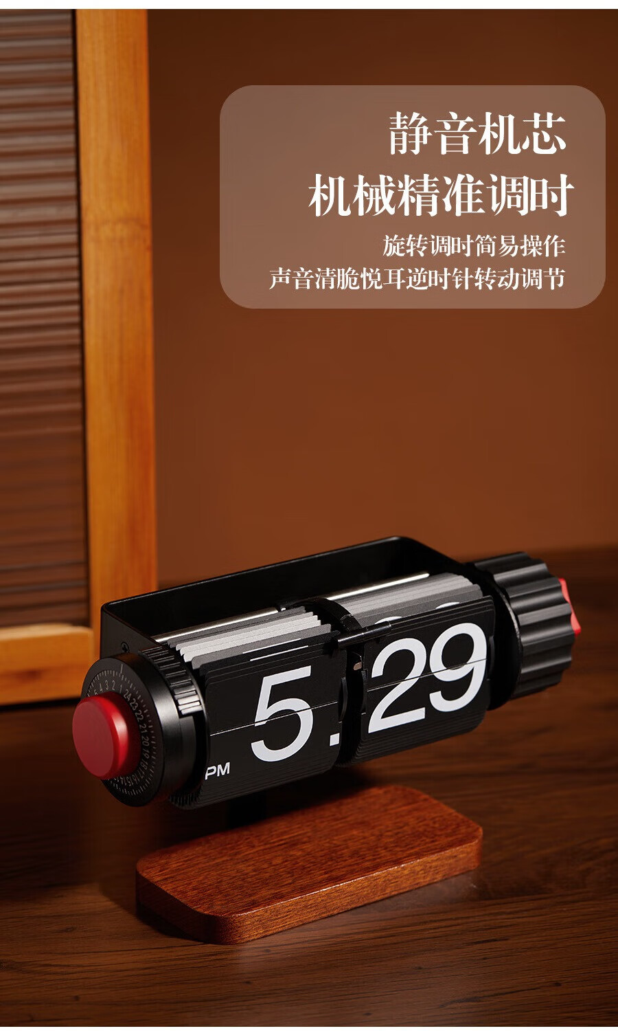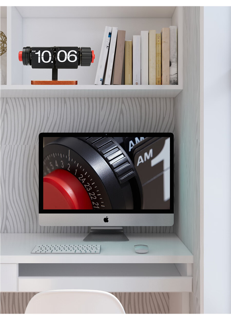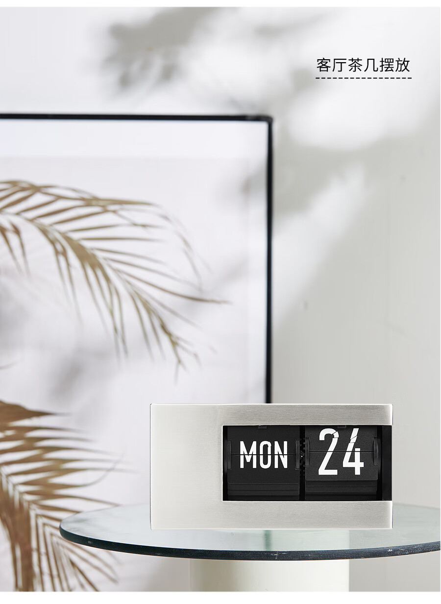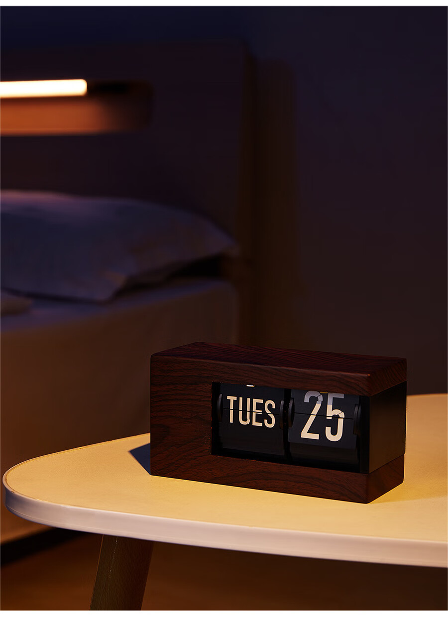 Creative automatic page-turning clock, retro living room ornaments, table clock, modern simple mechanical clock, pendulum clock, home decoration desk clock, 24-hour glossy black, free battery