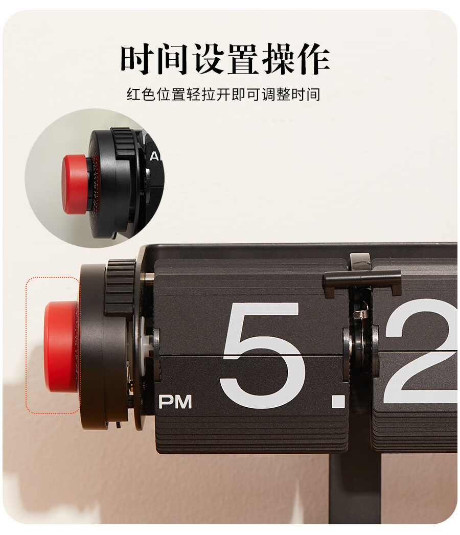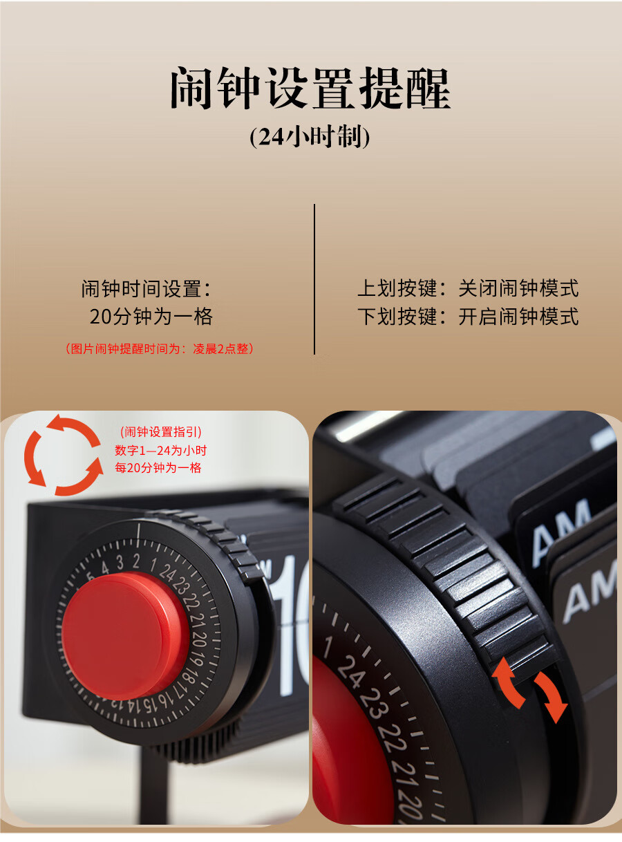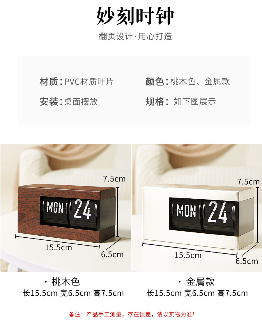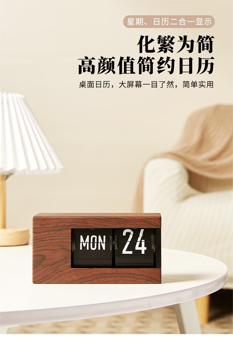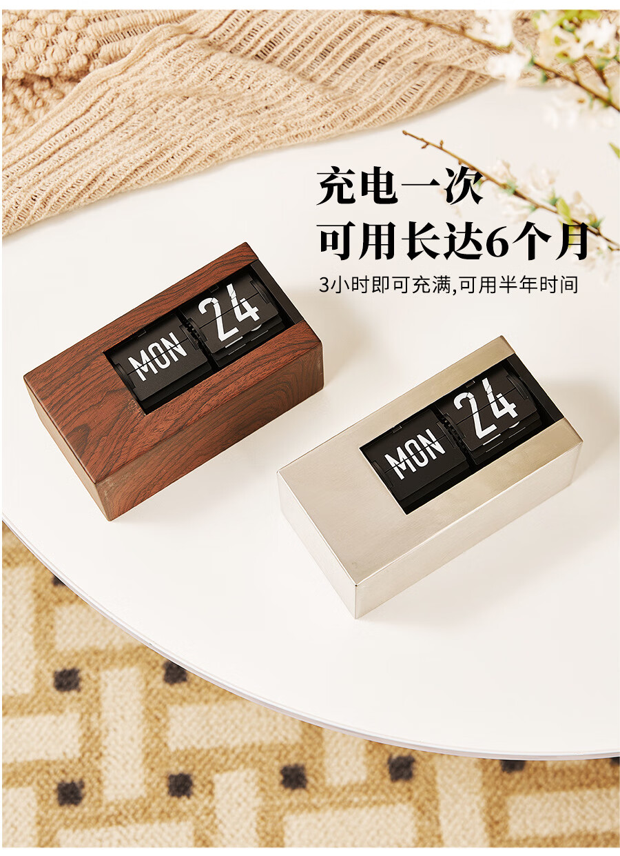 Creative automatic page-turning clock, retro living room ornaments, table clock, modern simple mechanical clock, pendulum clock, home decoration desk clock, 24-hour glossy black, free battery