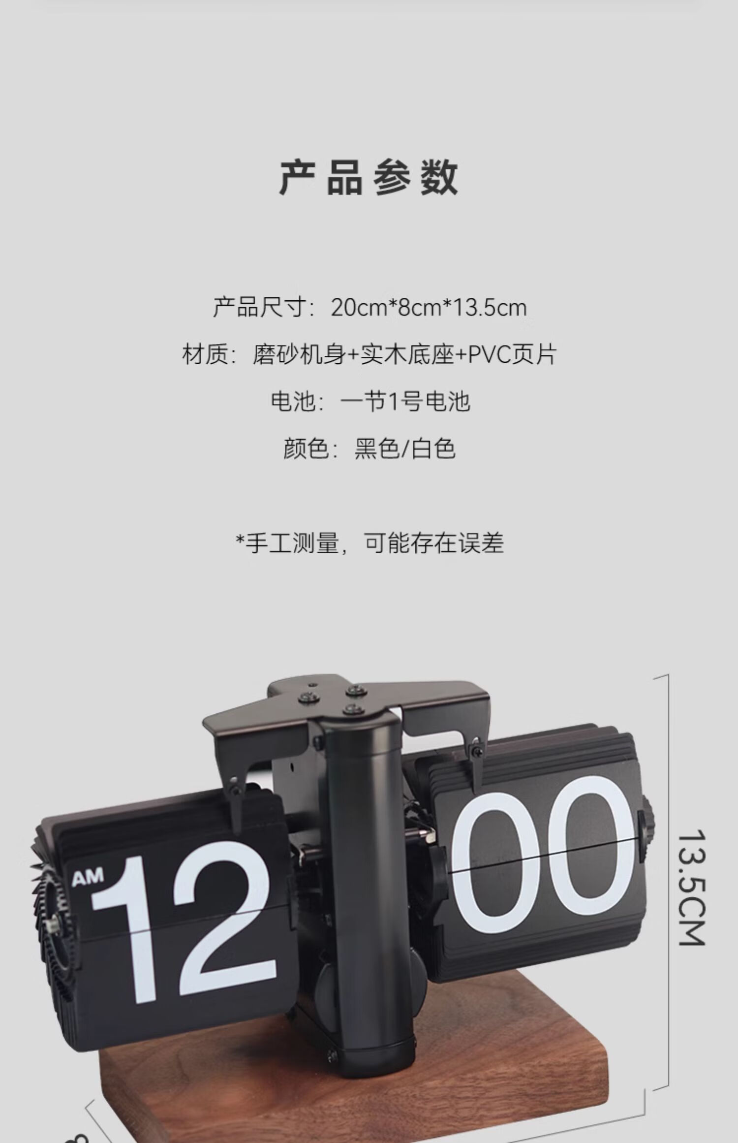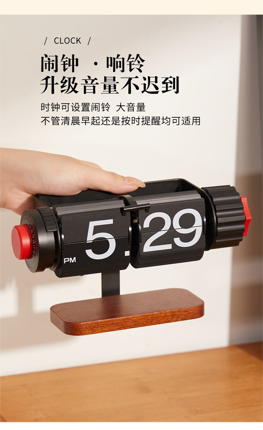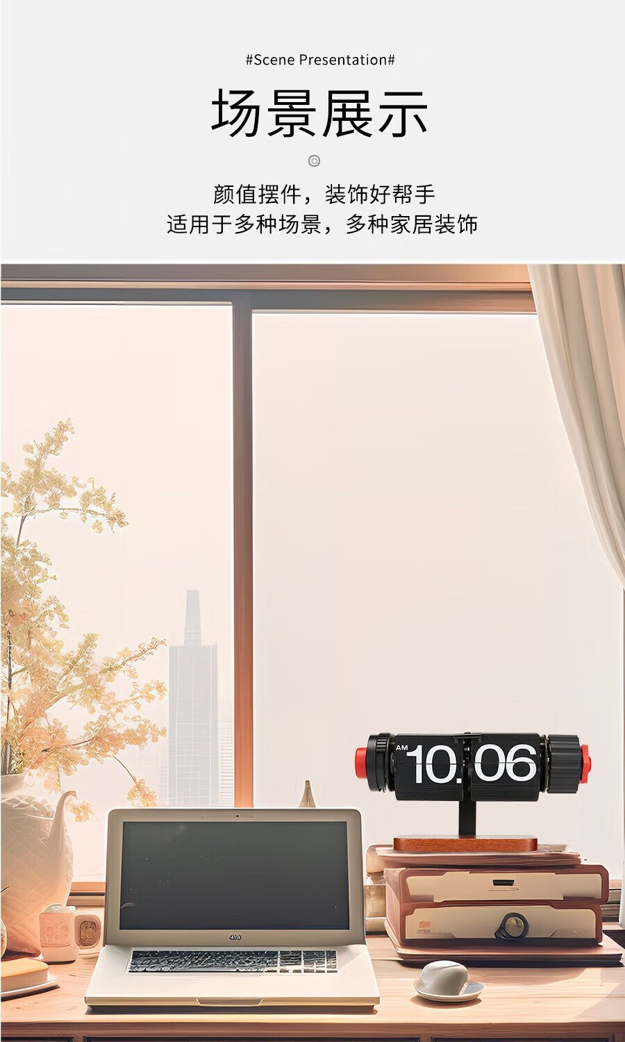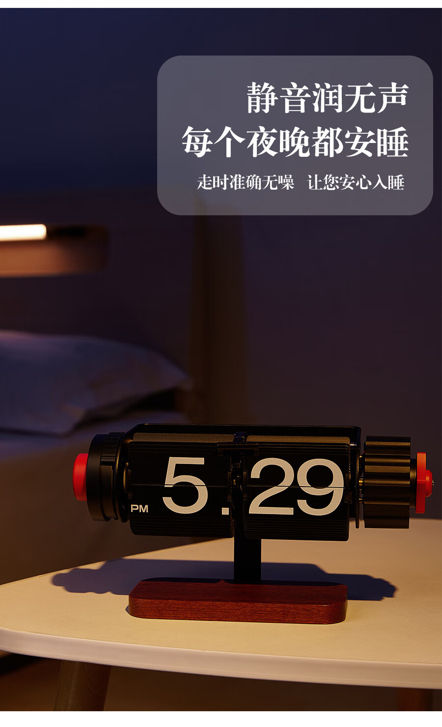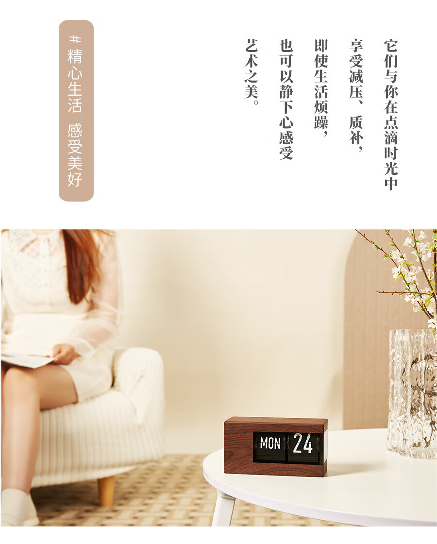 Creative automatic page-turning clock, retro living room ornaments, table clock, modern simple mechanical clock, pendulum clock, home decoration desk clock, 24-hour glossy black, free battery