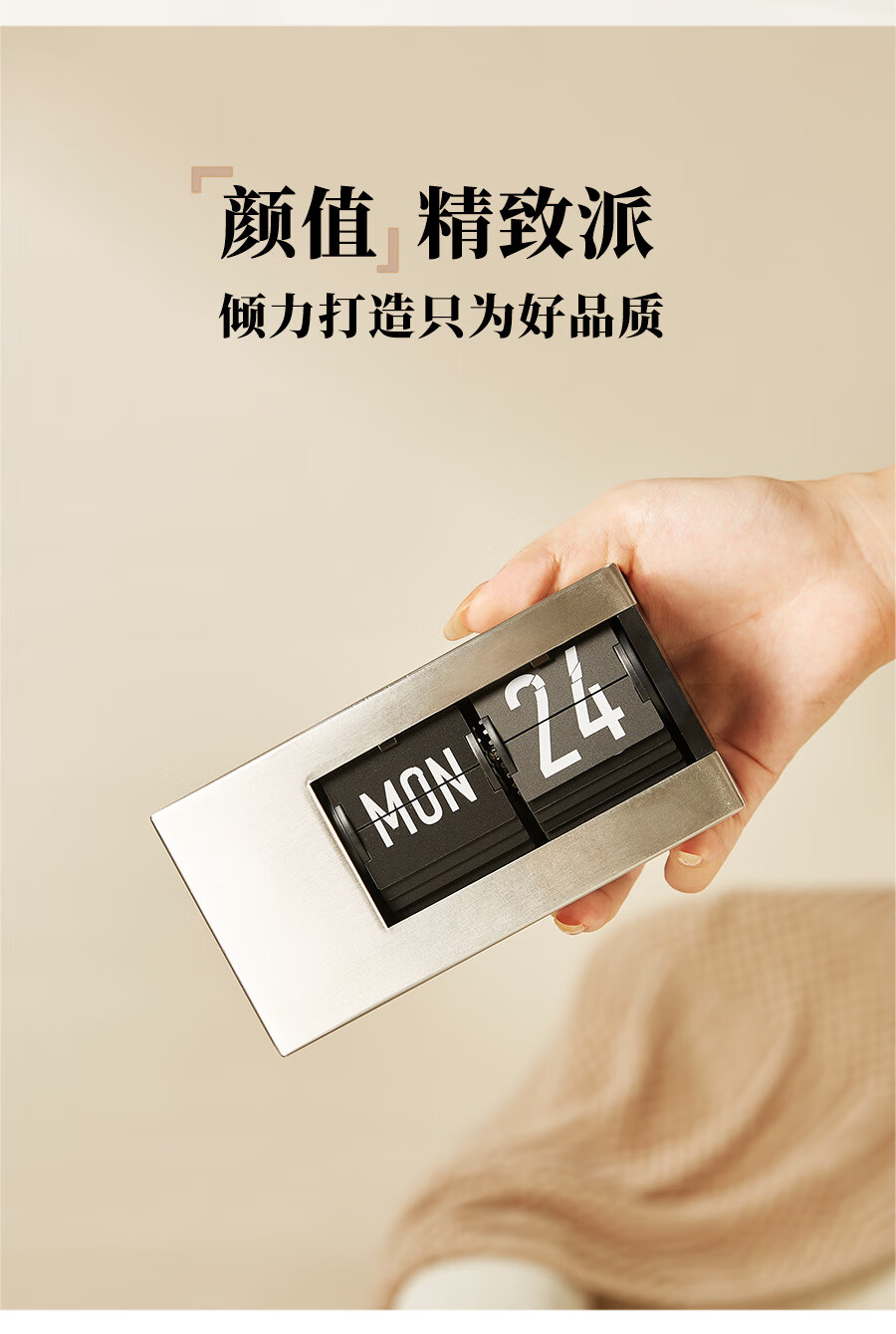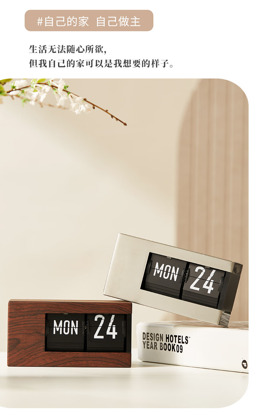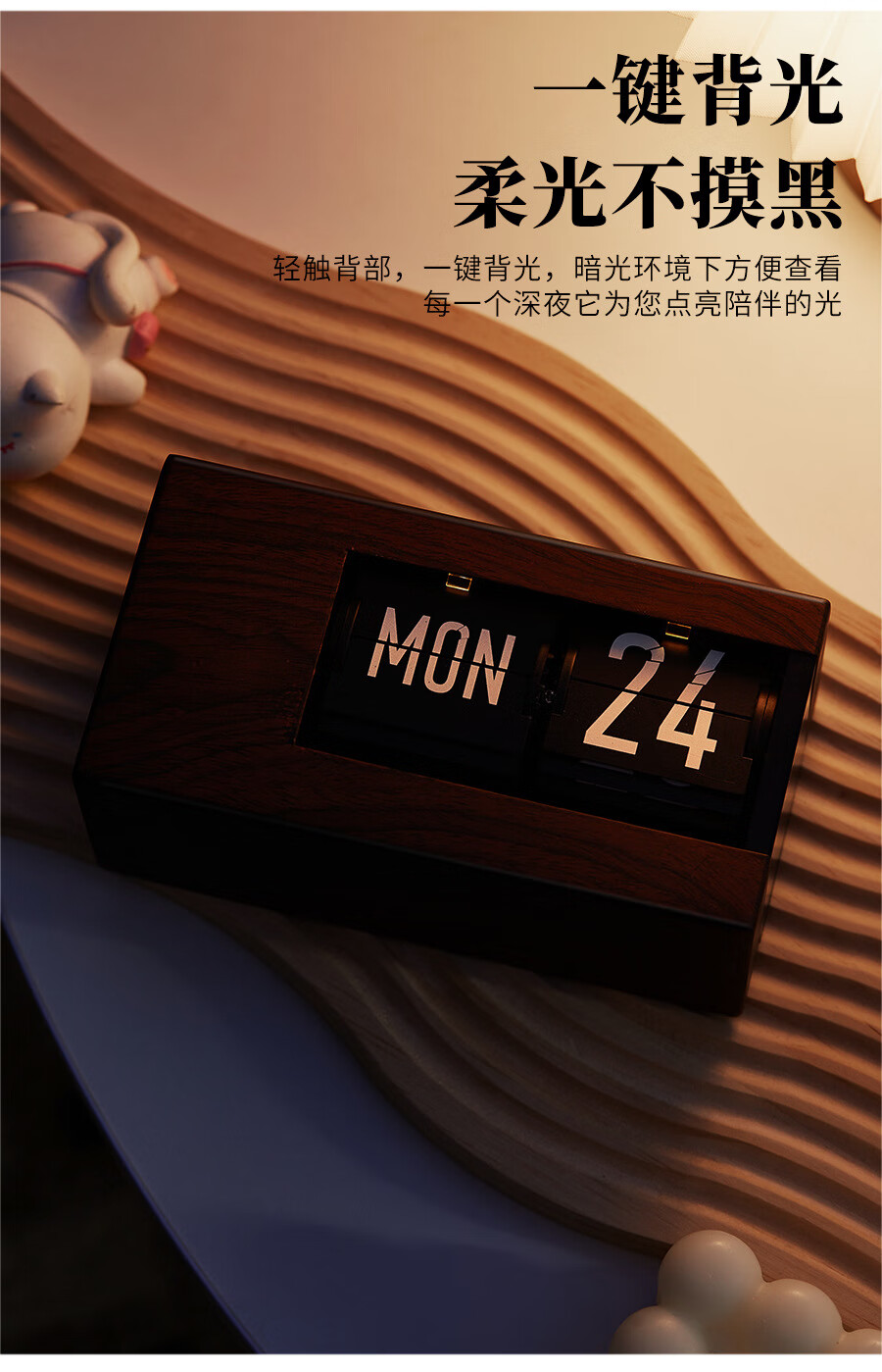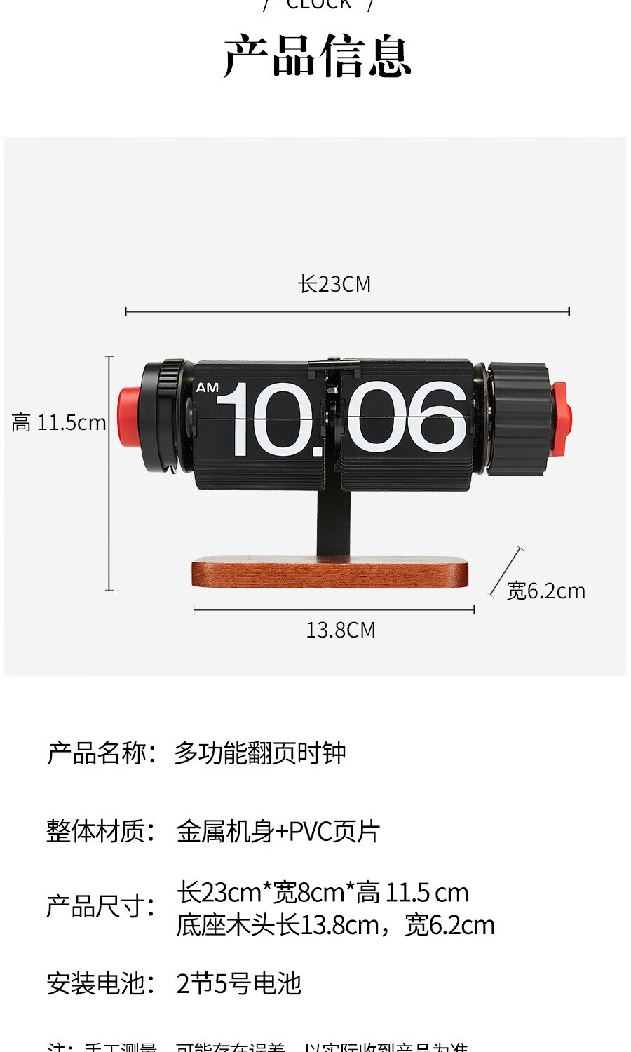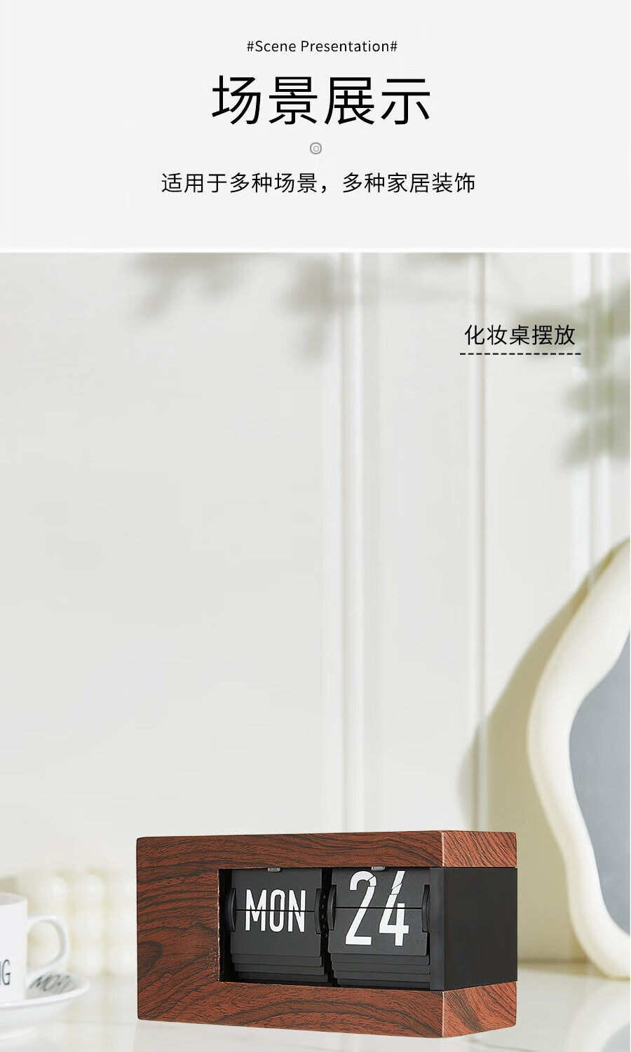 Creative automatic page-turning clock, retro living room ornaments, table clock, modern simple mechanical clock, pendulum clock, home decoration desk clock, 24-hour glossy black, free battery