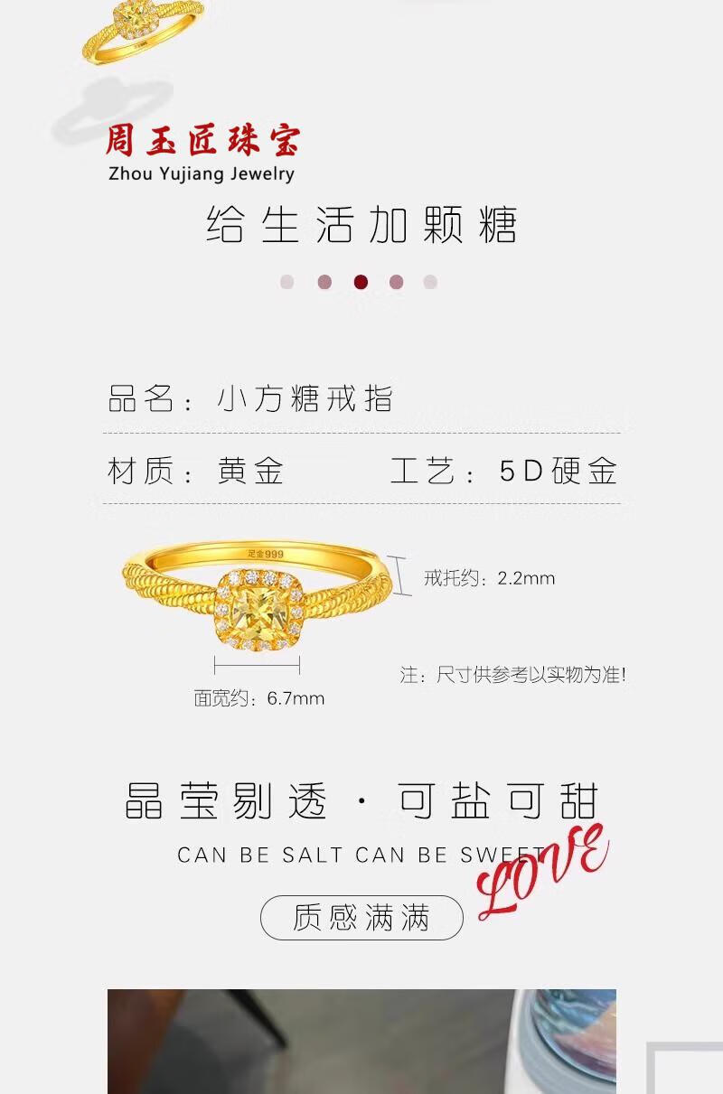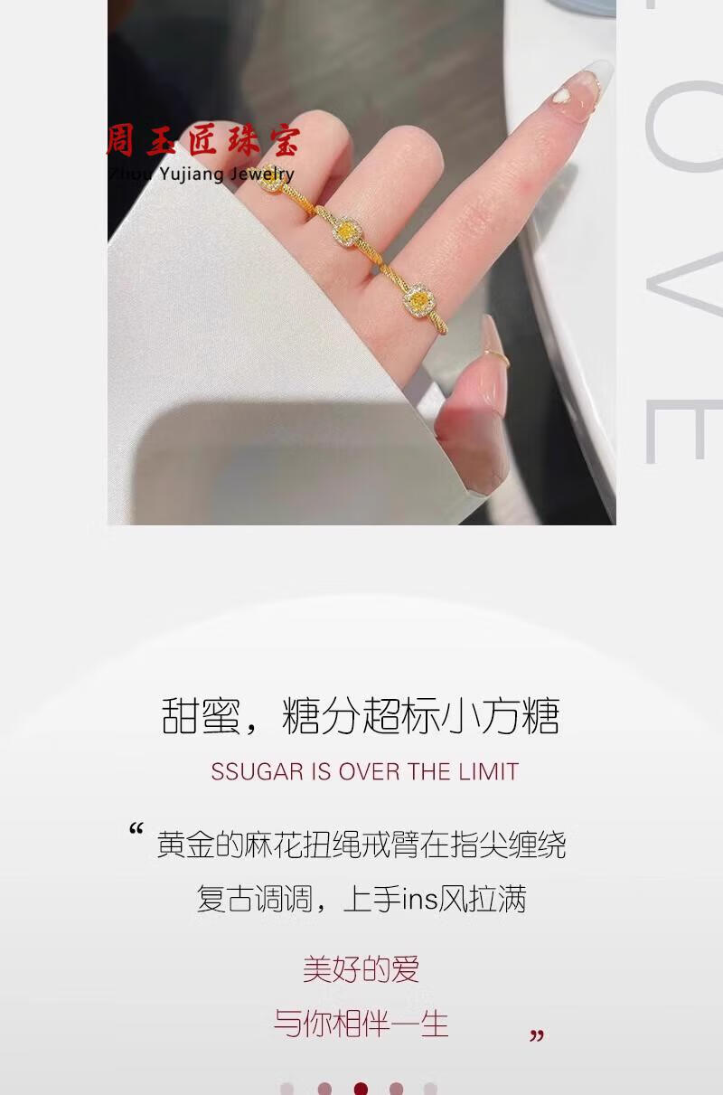 Sugar cube ring gold 999 gold little girl's opening adjustable fashion light luxury diamond ring free gold small sugar cube ring (live mouth design) 1g