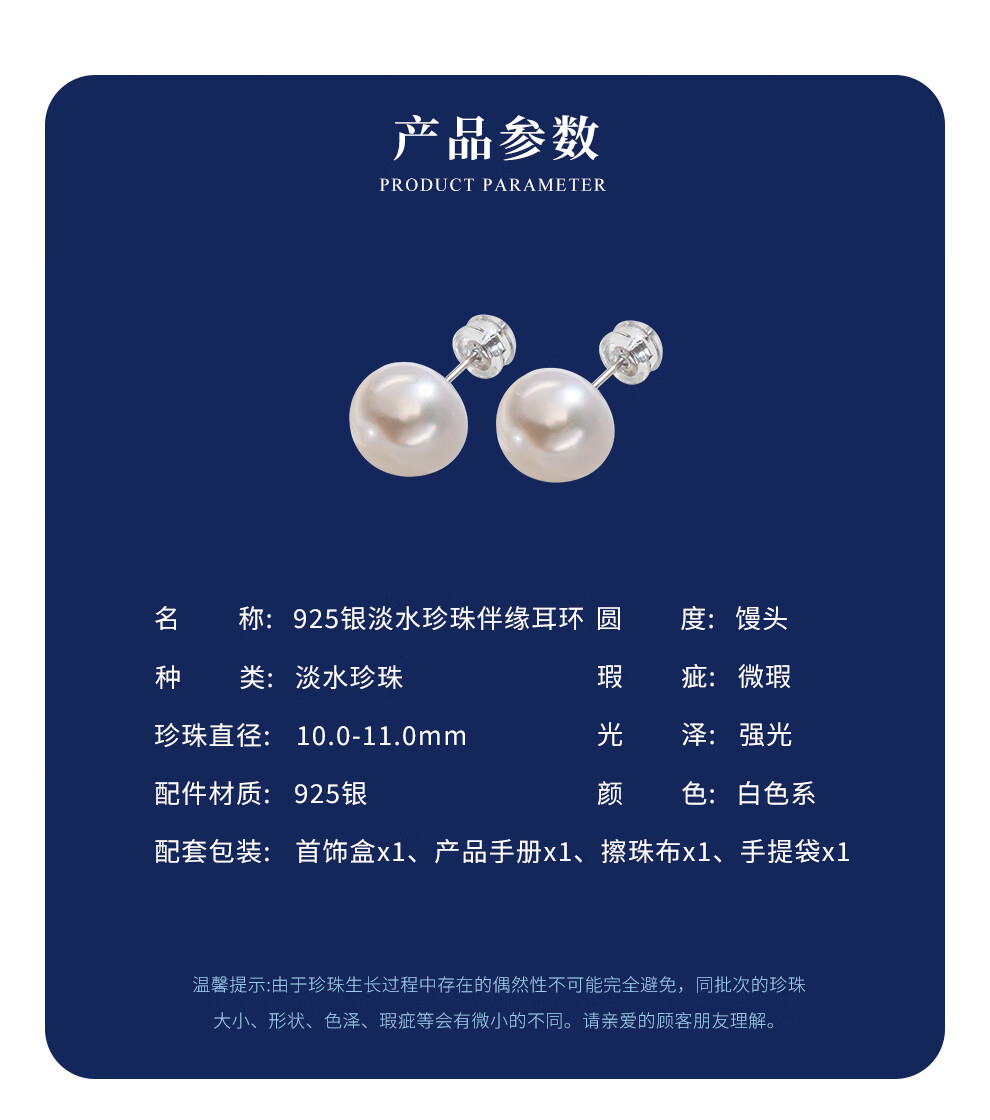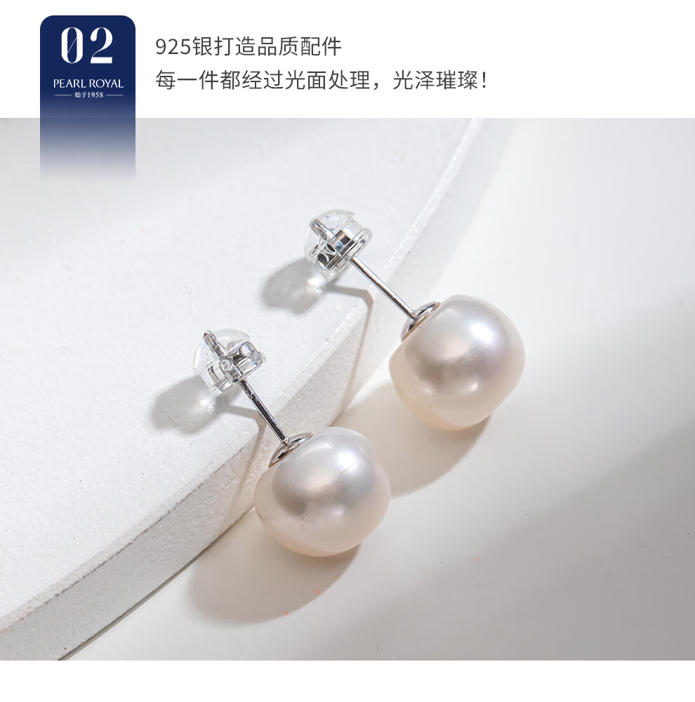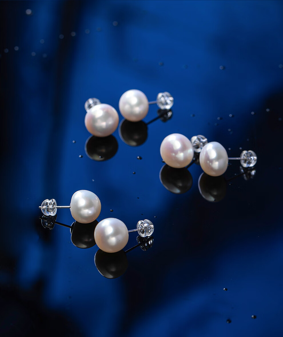 Nanzhu Palace 925 Silver Freshwater Pearl Earrings Large Particle Earrings C-E008SD-Y Versatile and Simple 9.0-10.0mm