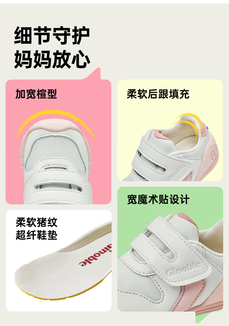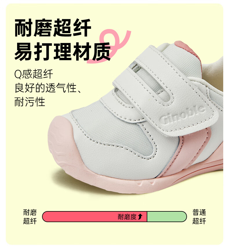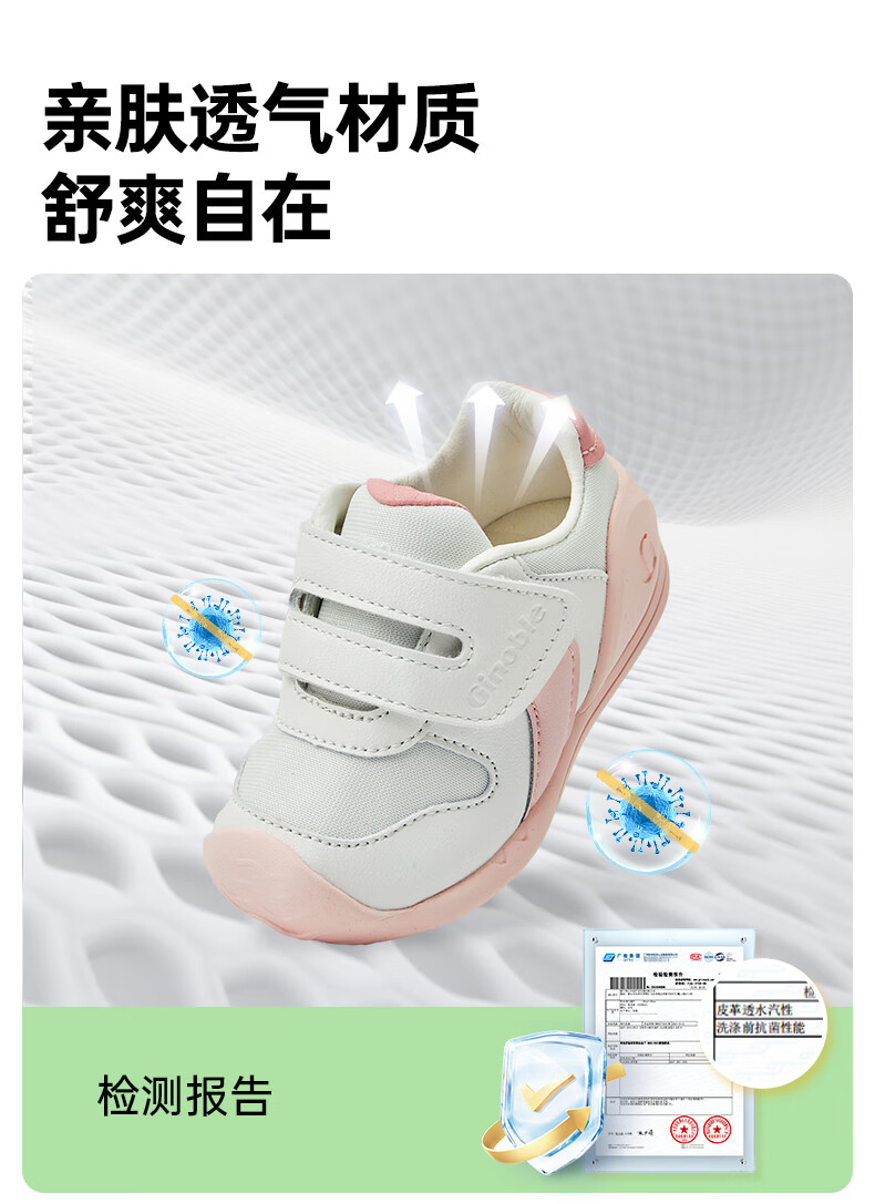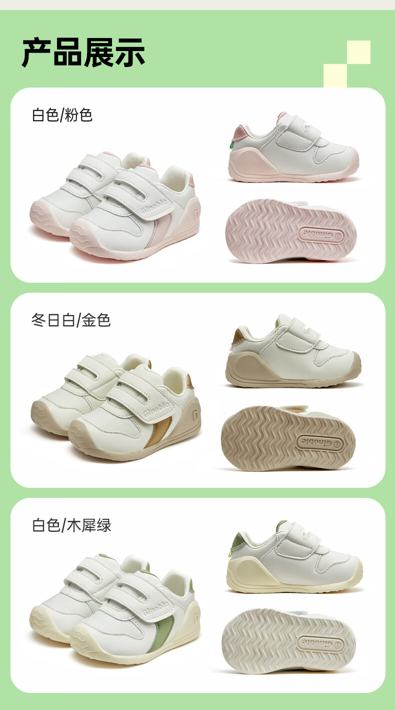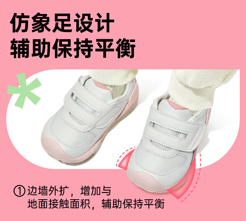 Jinopu Baby Toddler Shoes Spring and Autumn Style Baby Soft Sole Functional Shoes for Boys and Girls 8-18 Months GB2166 White/Pink 20 125mm Suitable for Foot Length 125-129mm