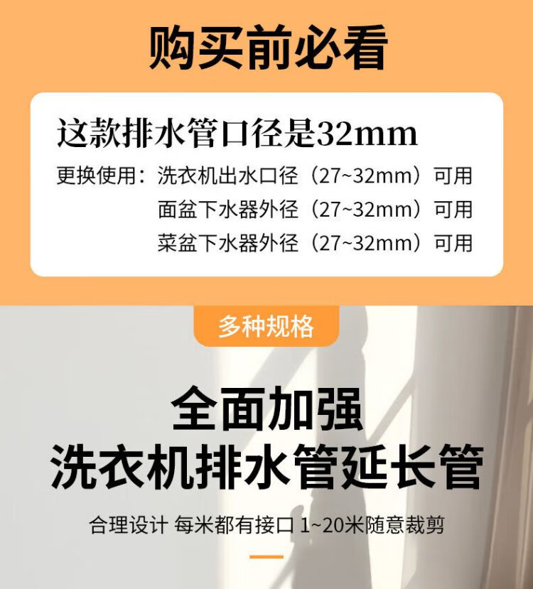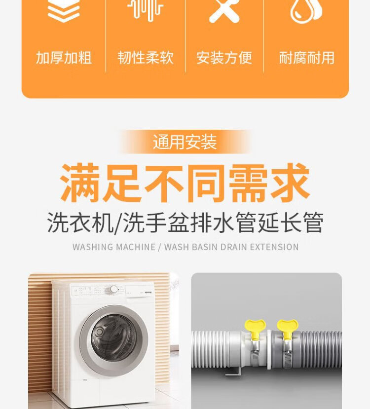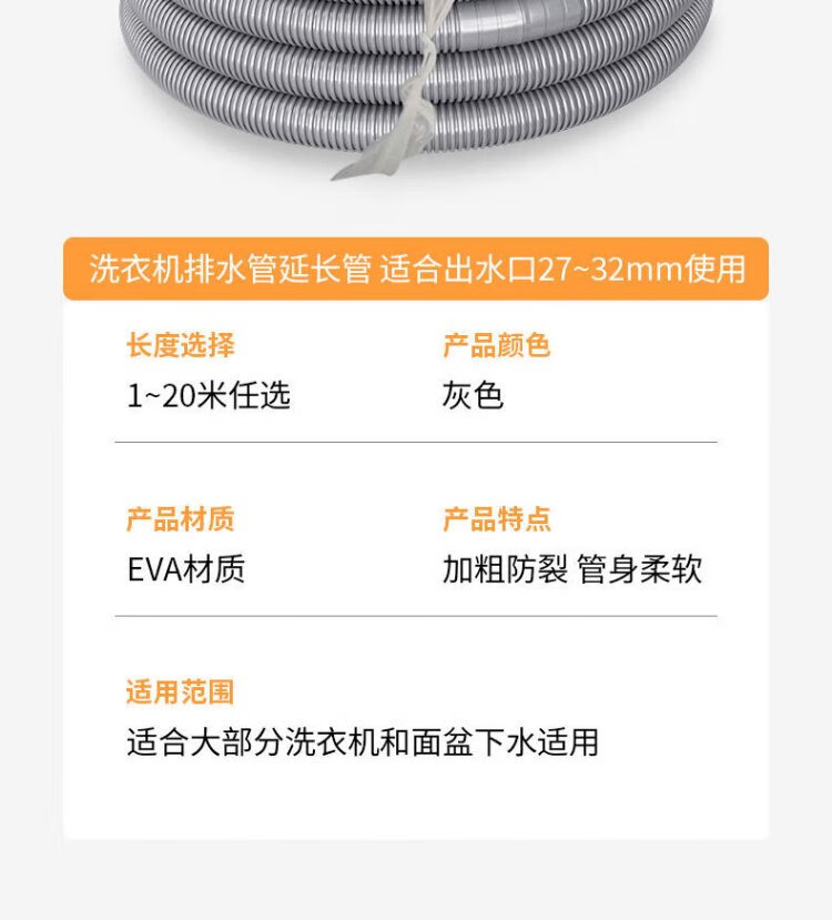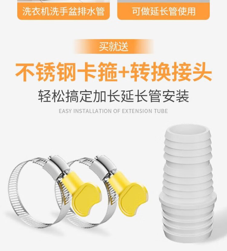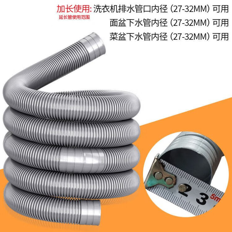 Xijingmei washing machine drain pipe extension pipe universal joint extended corrugated pipe drain pipe butt joint basin drain pipe hose drum pulsator washing machine outlet pipe adapter + 2 clamps + 1 meter pipe