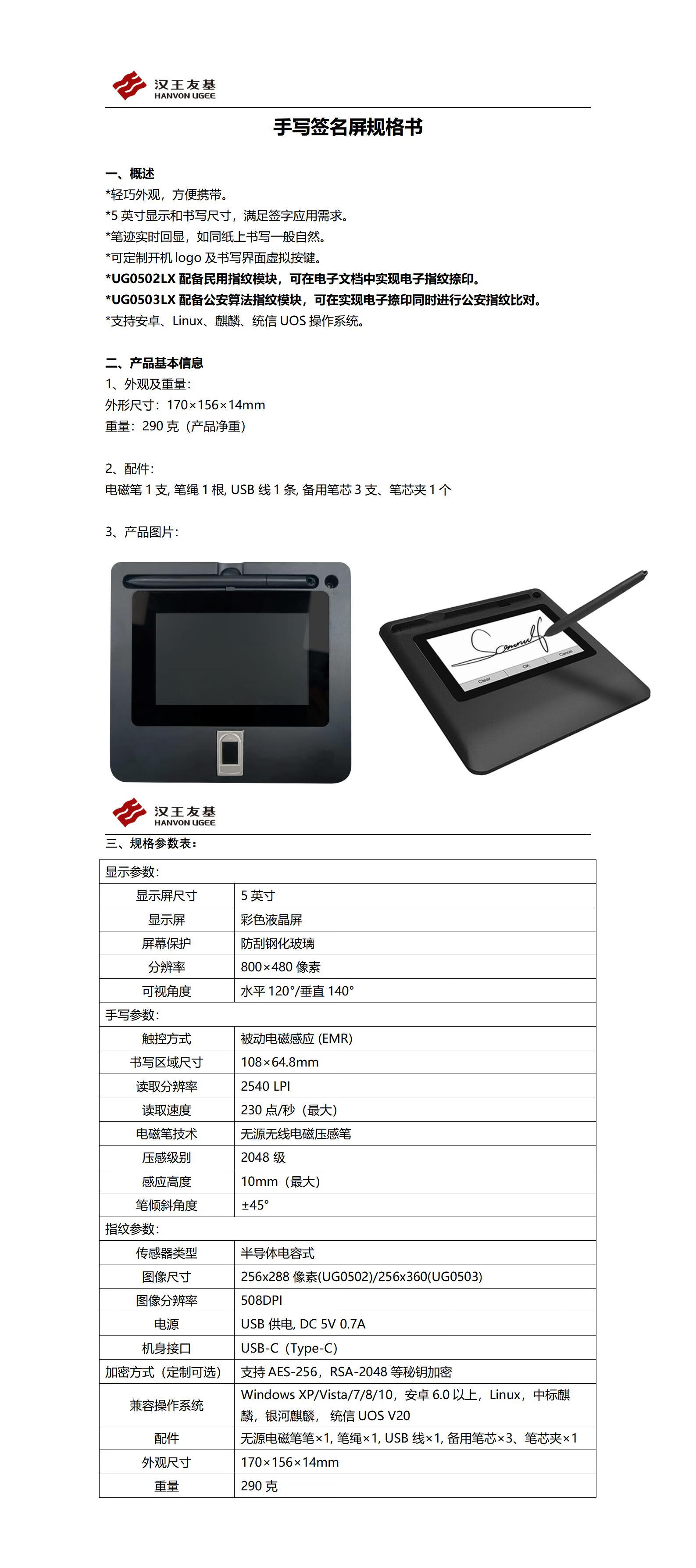 汉王友基UG05签字板手写屏签名板电子签字写字板0501文档签字液晶屏0501LX行业签批版HW050行业签名板 UG0503LX指纹签名屏