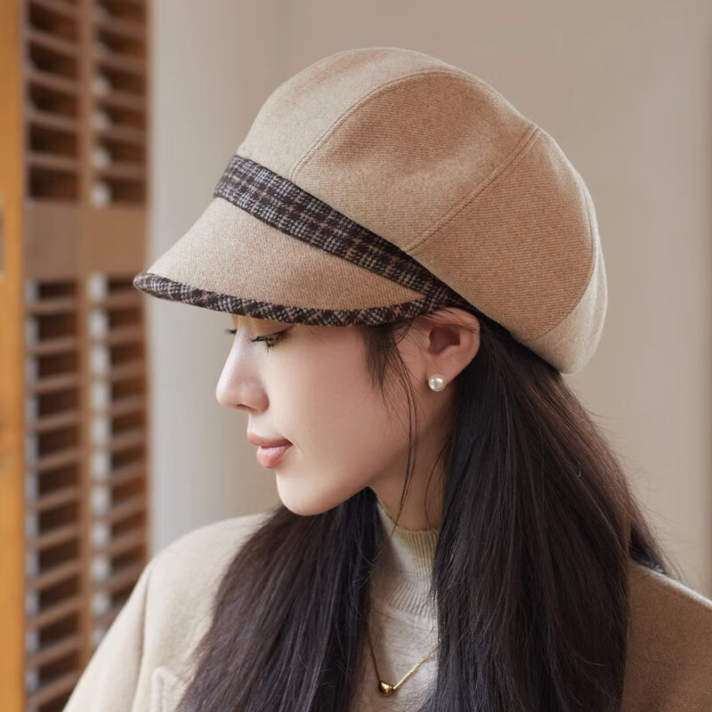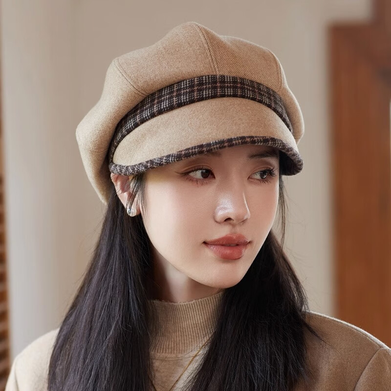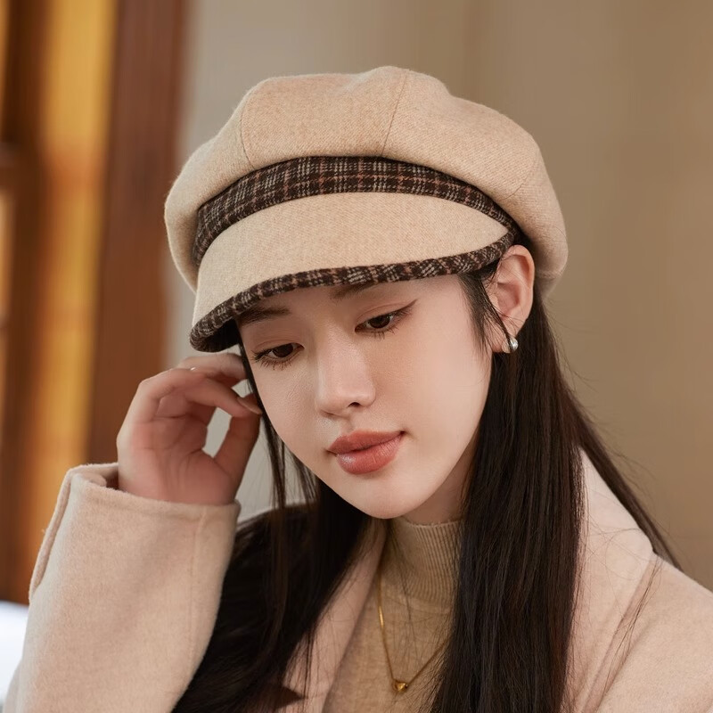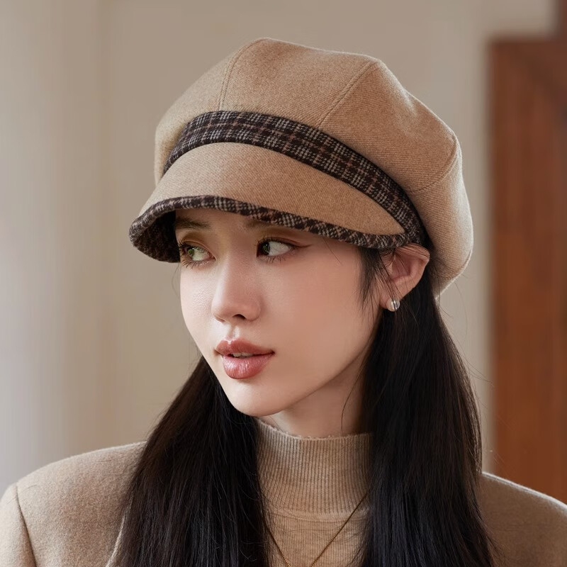 Jimmy Leaf Octagon Hat Women's Autumn and Winter Peaked Hat Season Korean Style Elegant Fashion Versatile Fashion Hat Beret British Temperament Trendy Gray One Size