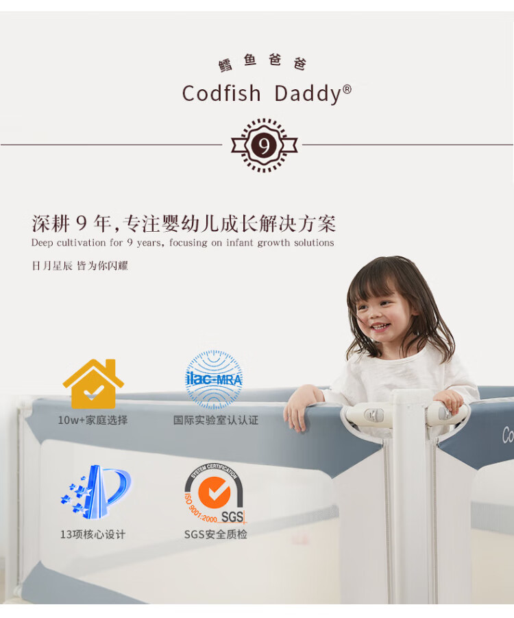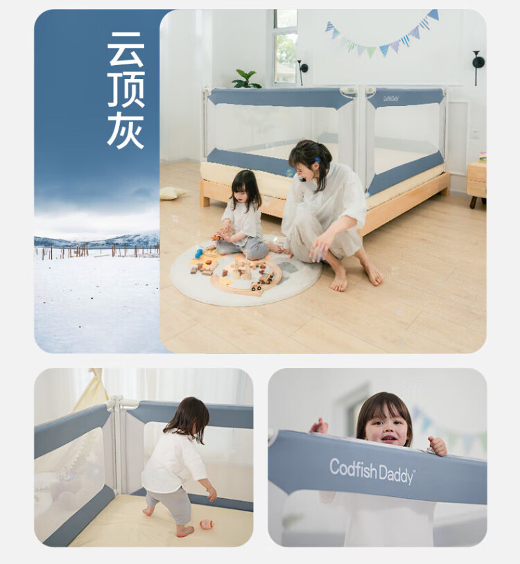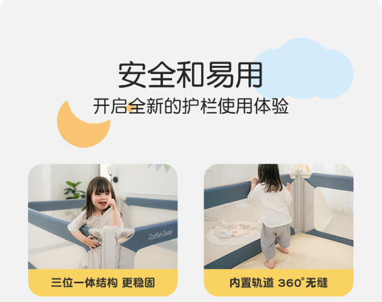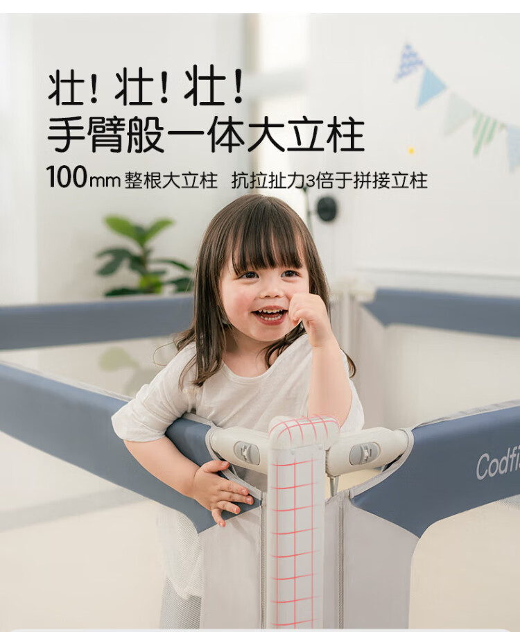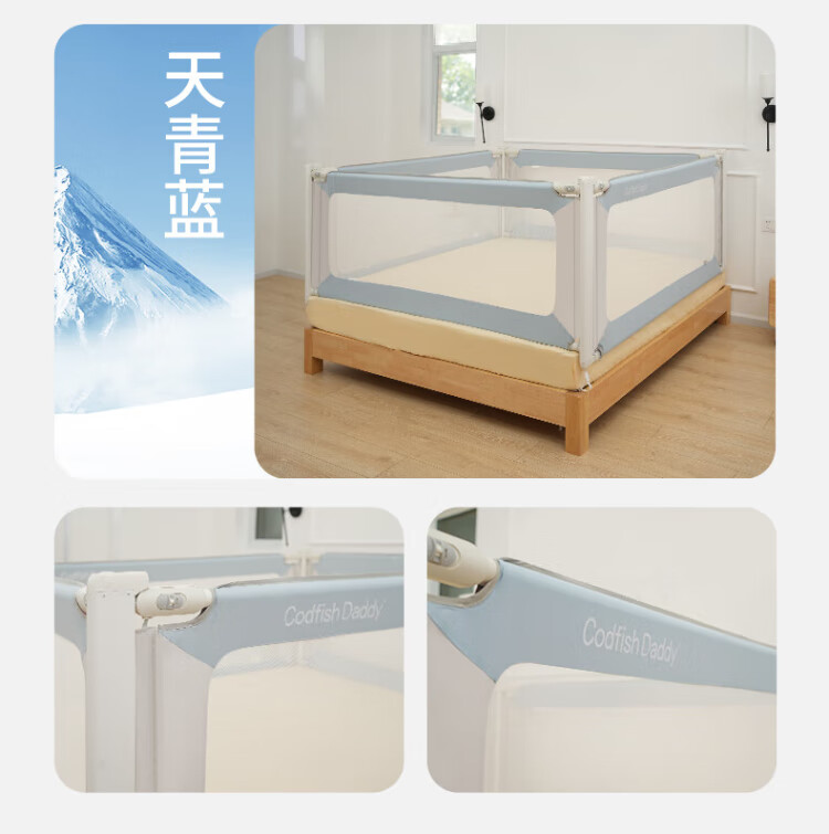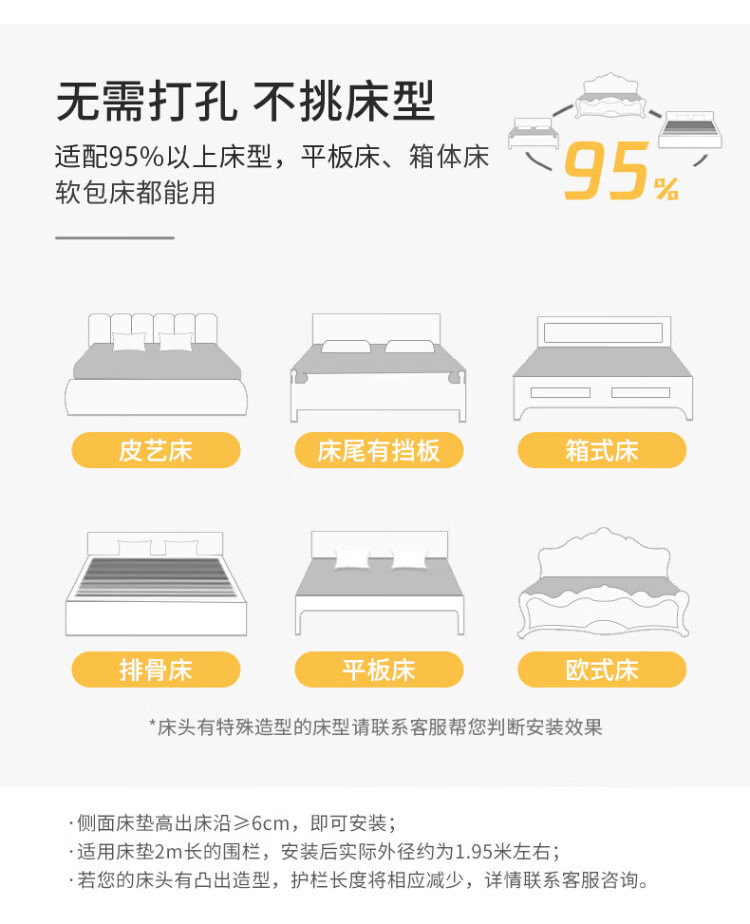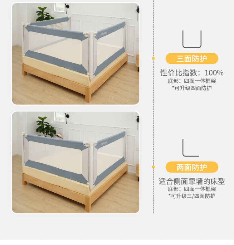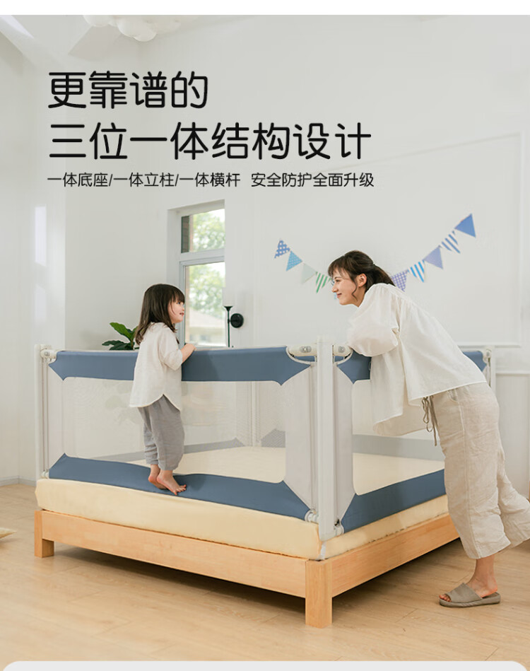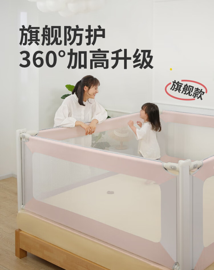 Cod dad bed fence baby anti-fall baby anti-fall bed children's bed guardrail flagship heightened fence integrated guardrail flagship version track - three-sided installation 1.8mX2.0m bed type suitable