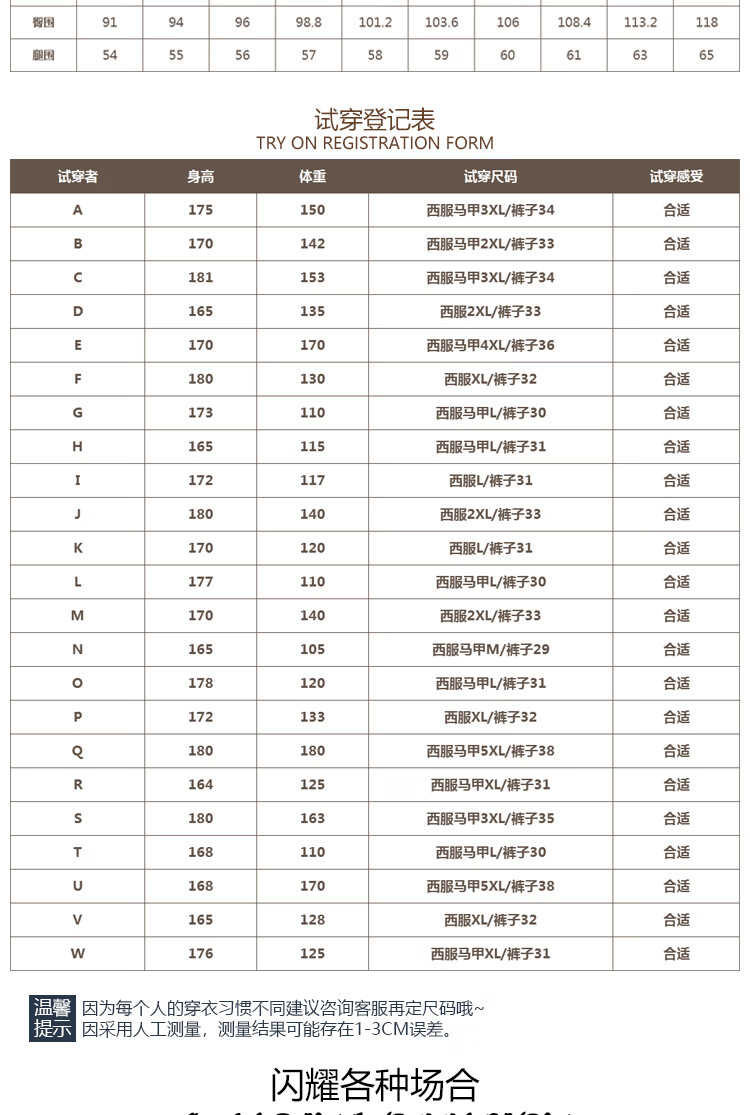 China (cm) 165 / 88-90 170 / 96-98 175 / 108-110 180 / 118-122 185 / 126-130