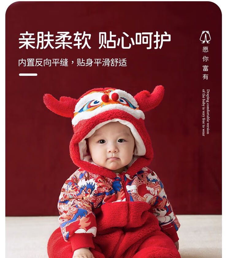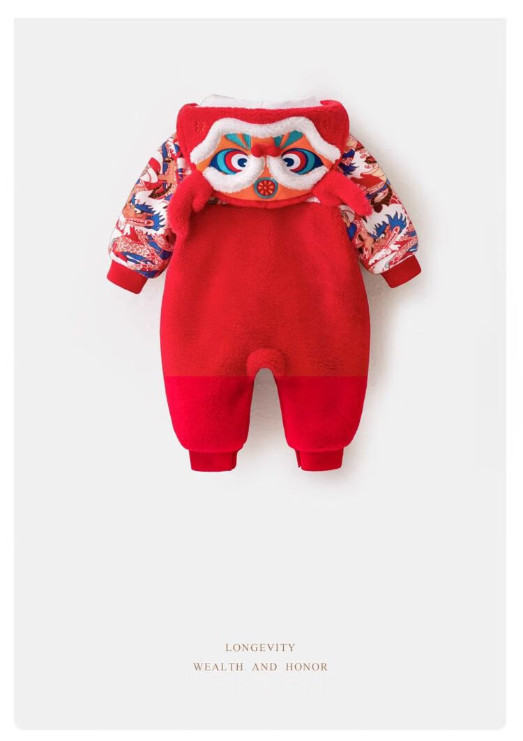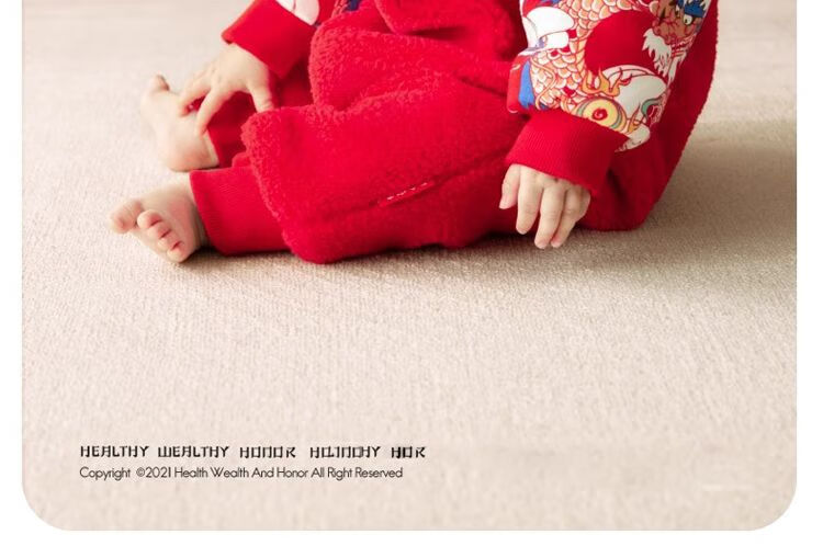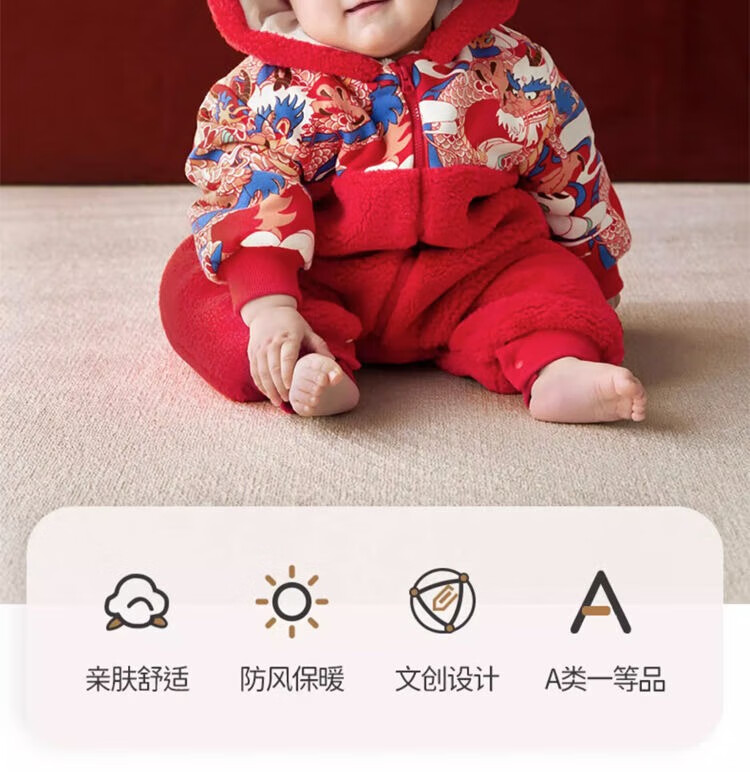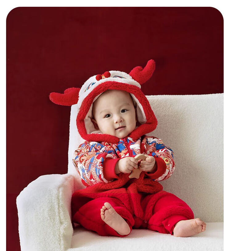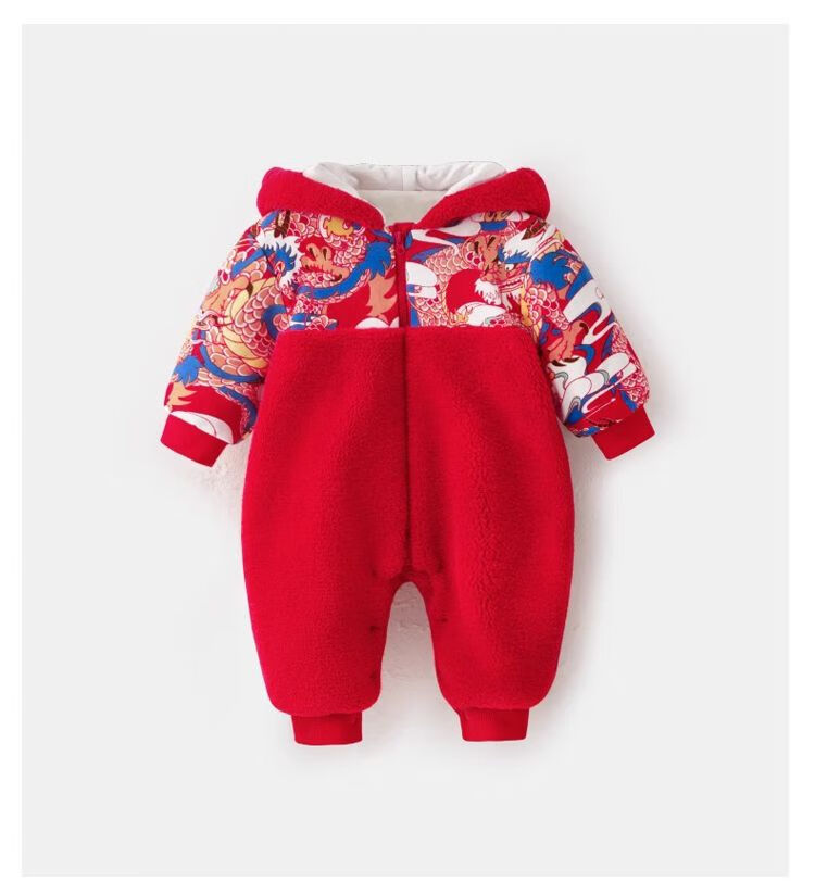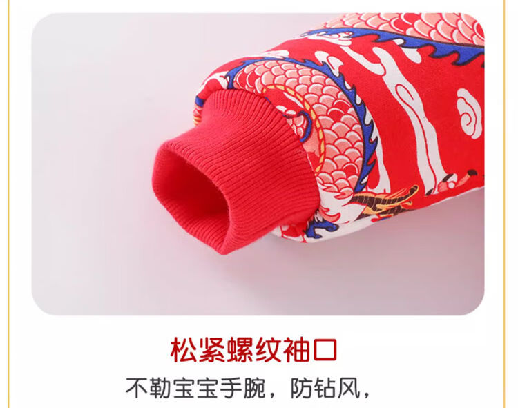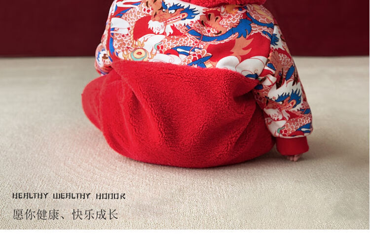 Meng Yitang full-month clothes for boys and girls, plus velvet clothes for boys and girls, thickened festive New Year clothes for 100-day birthday party for newborns, Guochao Xianglong 66