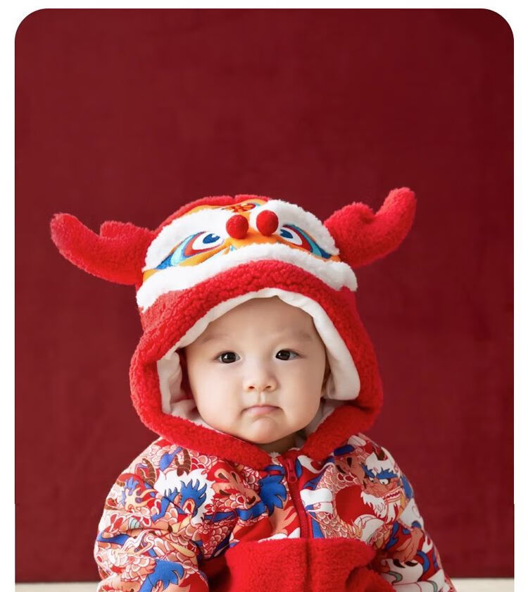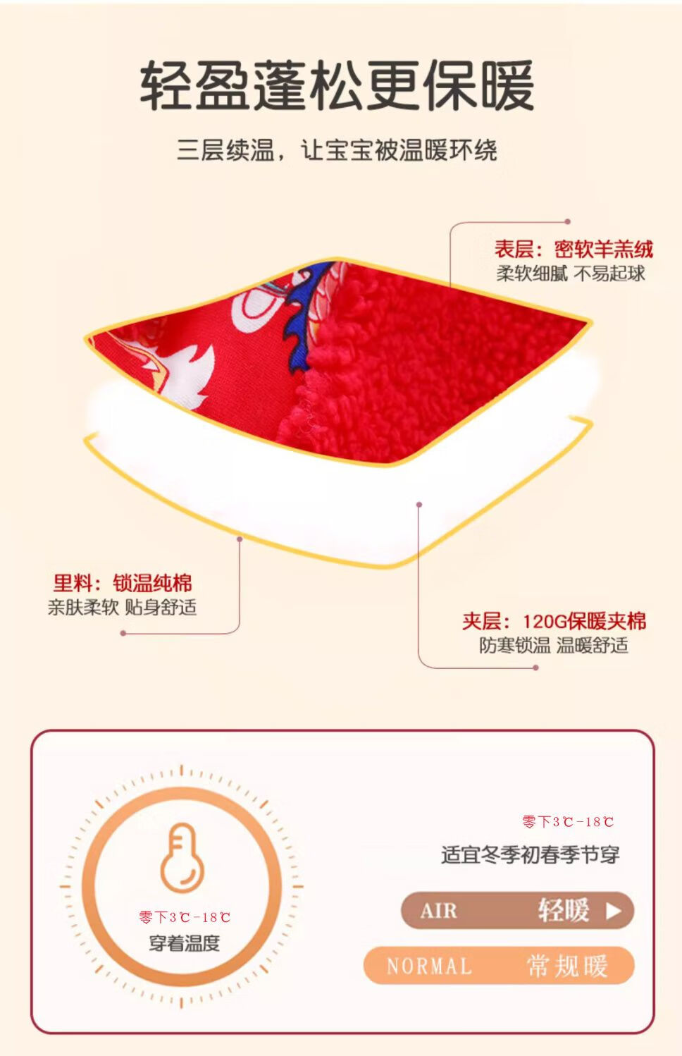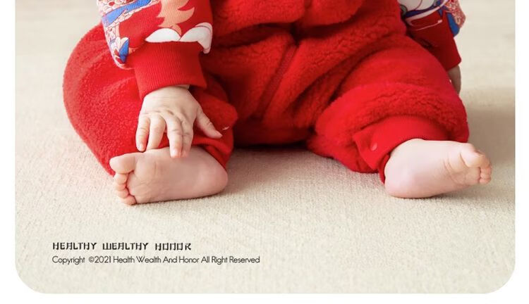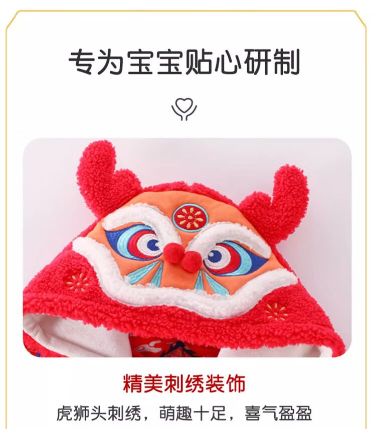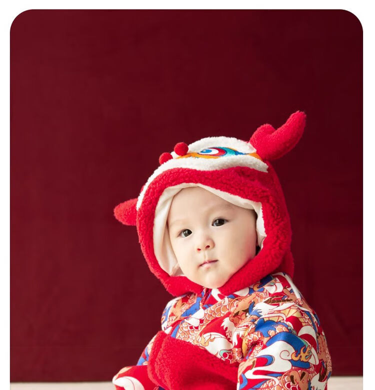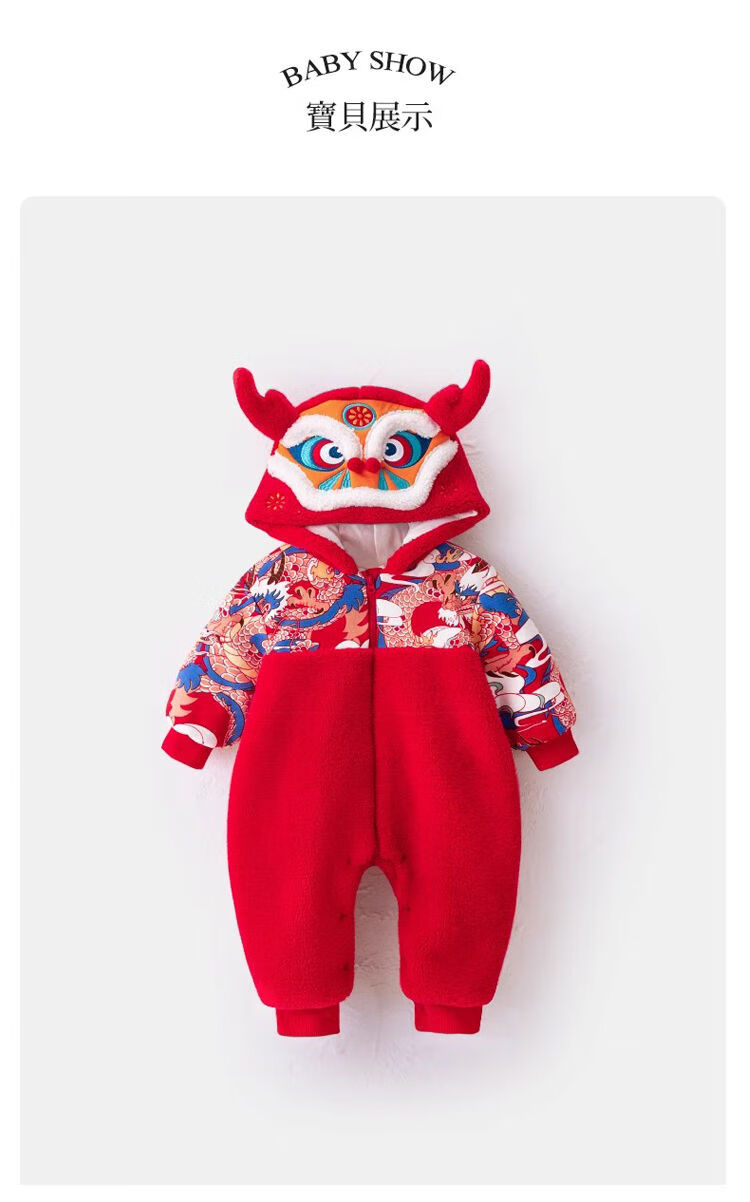 Meng Yitang full-month clothes for boys and girls, plus velvet clothes for boys and girls, thickened festive New Year clothes for 100-day birthday party for newborns, Guochao Xianglong 66