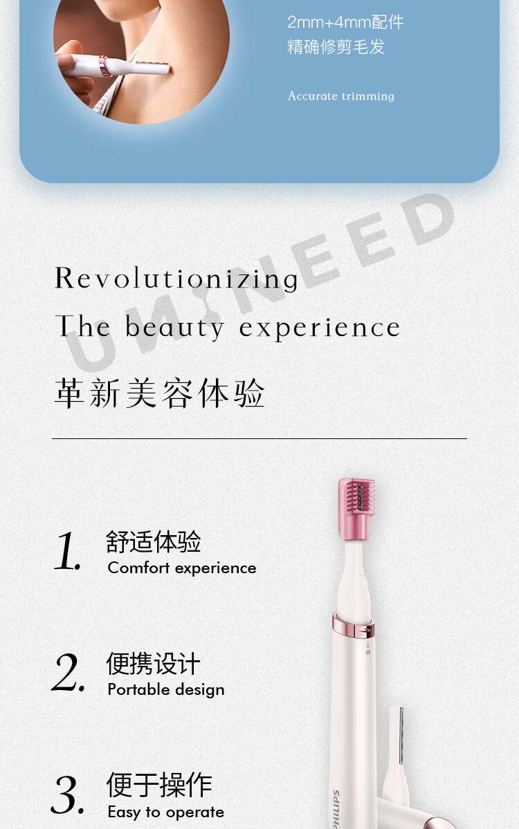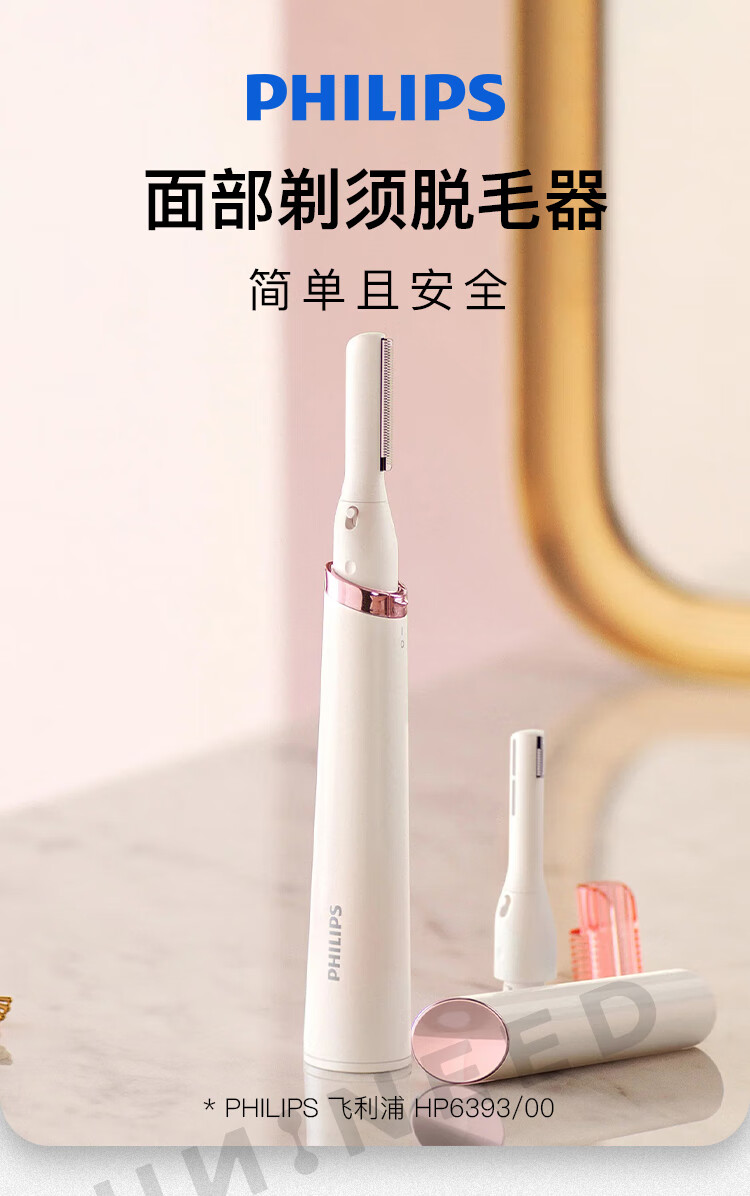 Philips (PHILIPS) HP6393 Women's Beauty Precision Trimmer Eyebrow Trimmer Compact Portable Travel Bag Facial Shaving Hair Remover Battery Birthday Gift Valentine's Day Gift HP6393/00