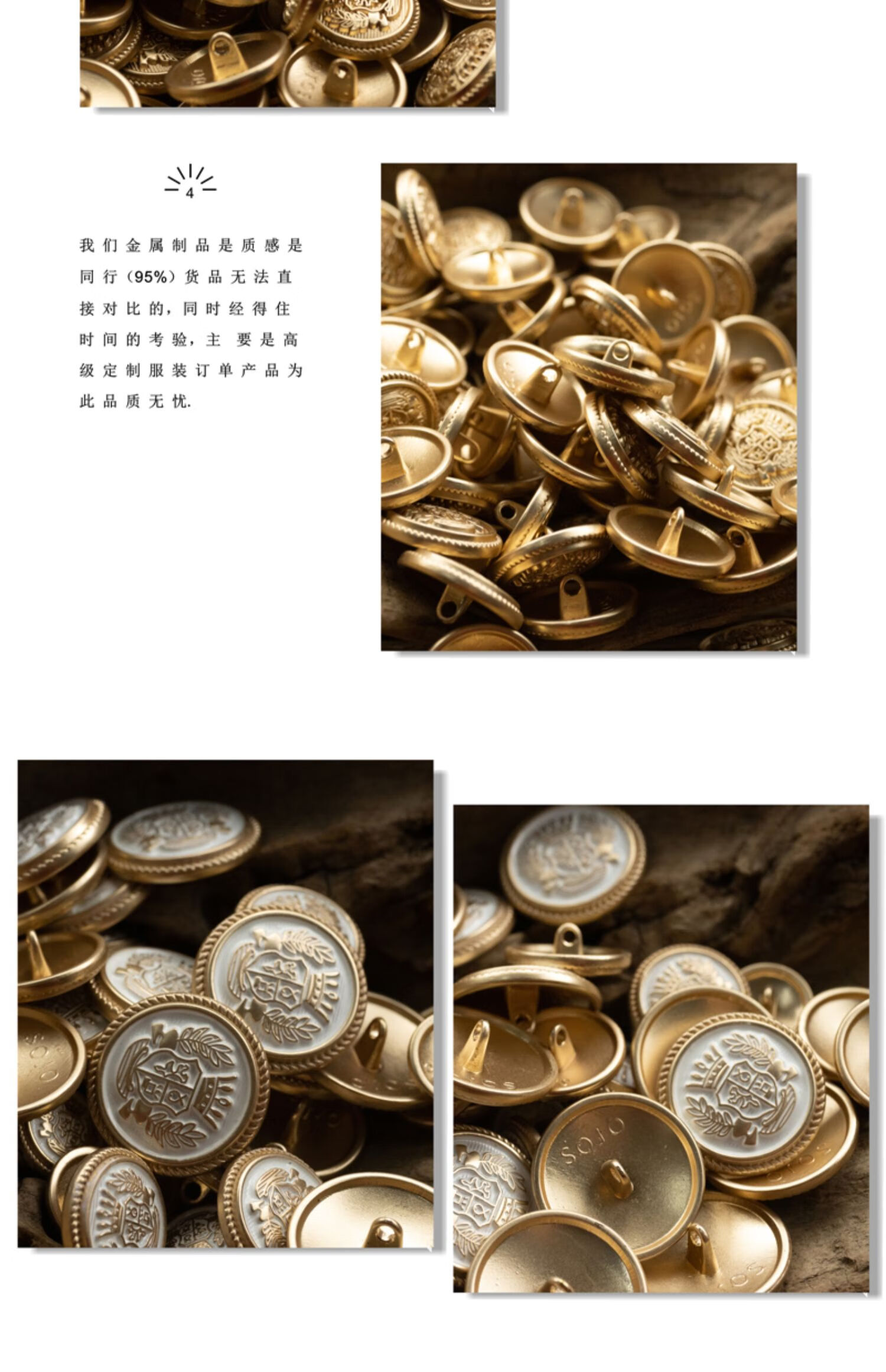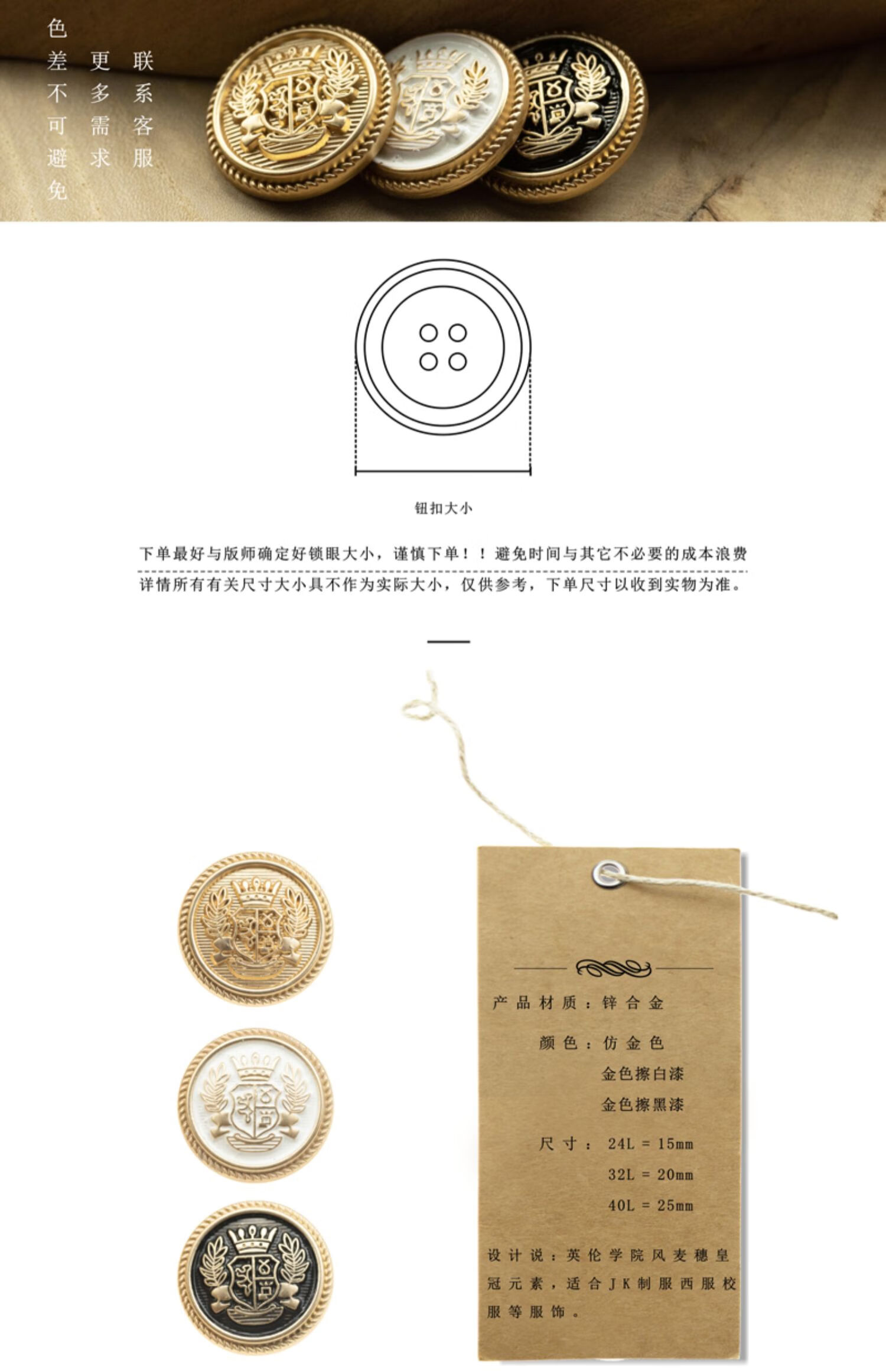 Shantou Lincun Metal Wheat Buttons British Crown Suit Matte Gold Rubbed Black and White Paint College JK Uniform Coat Buttons Matte Gold Rubbed Black Paint 6 pcs