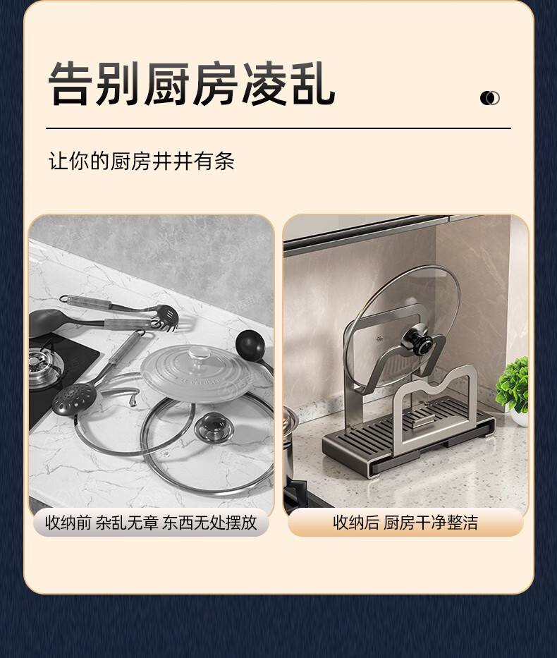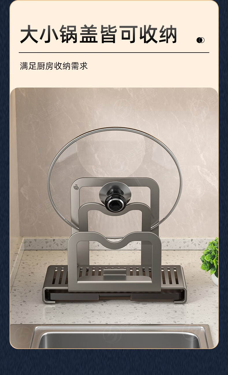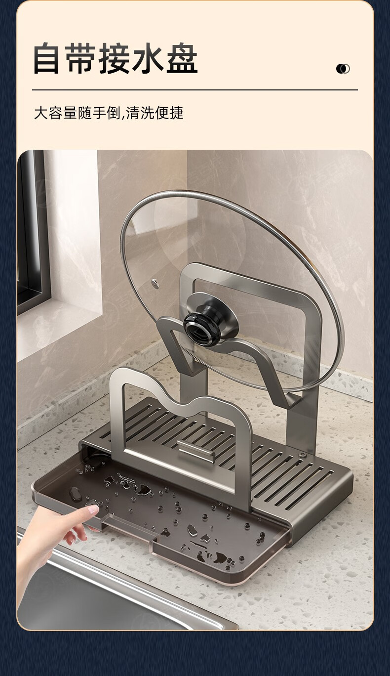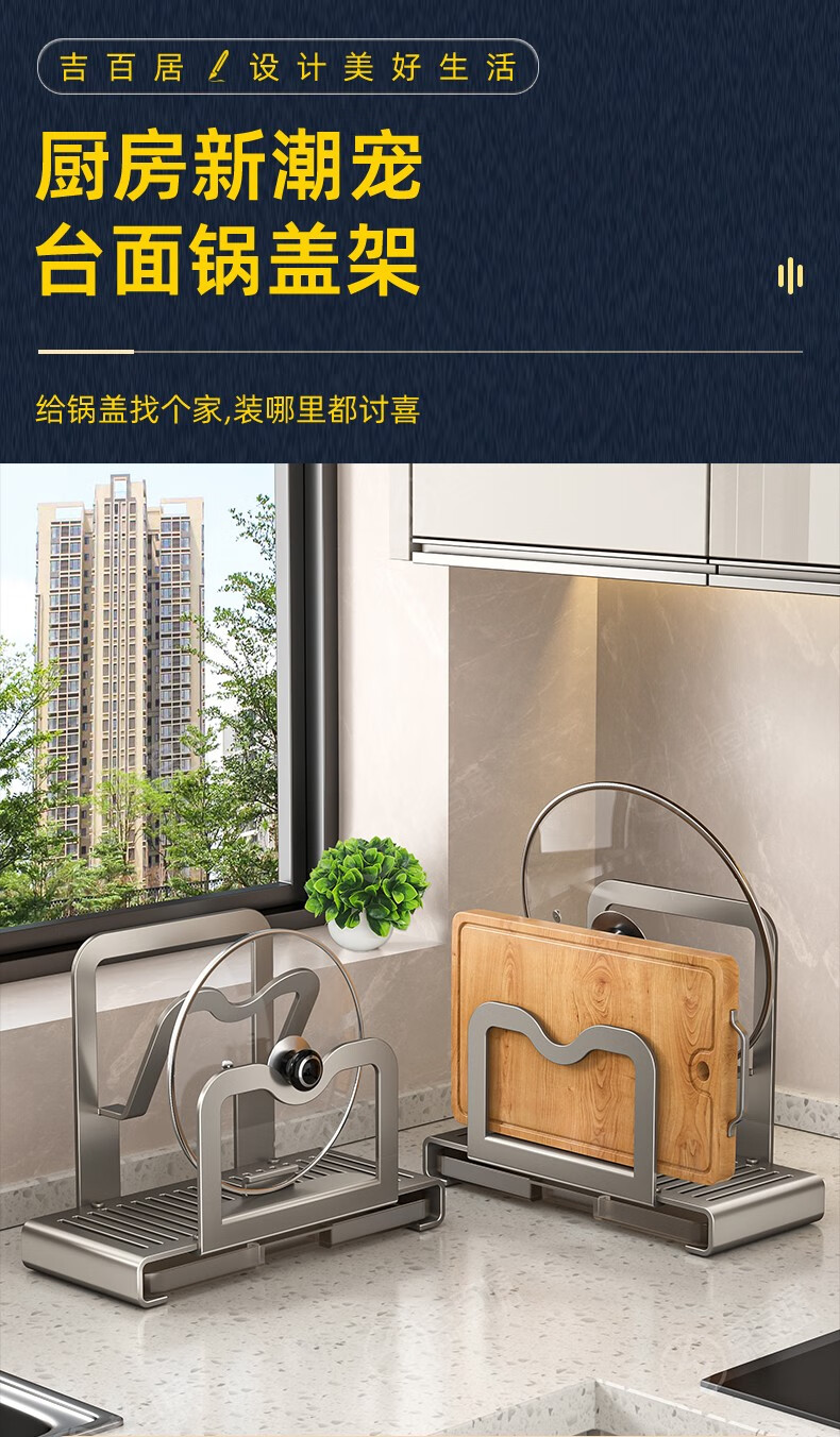 Jibaiju (jibaiju) pot lid rack bracket storage rack countertop sitting household removable and washable chopping board placement shelf kitchen storage countertop pot lid rack-gun ash