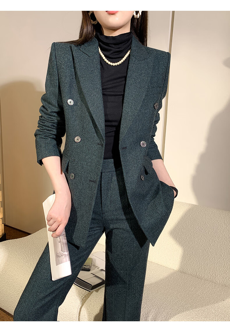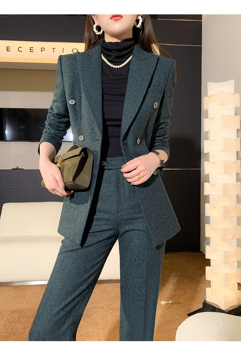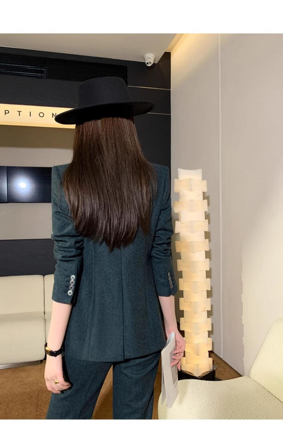 Sugargirl small suit suit autumn and winter new thickened wool professional host formal wear casual high-end temperament suit jacket gray (suit + bootcut pants) M