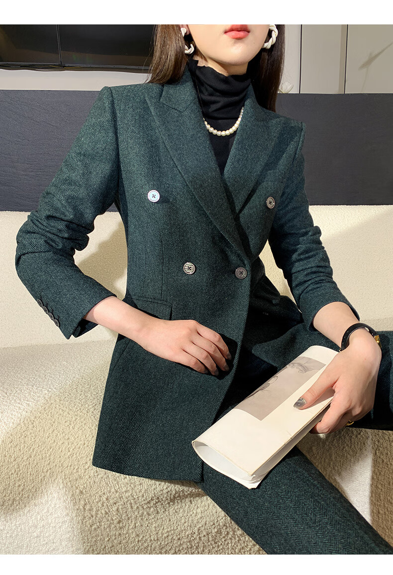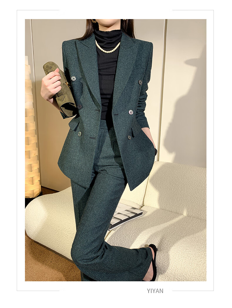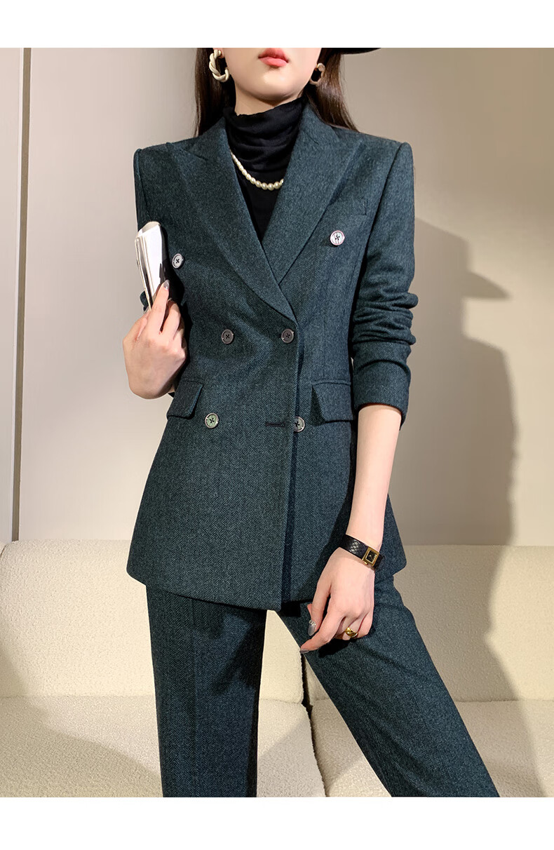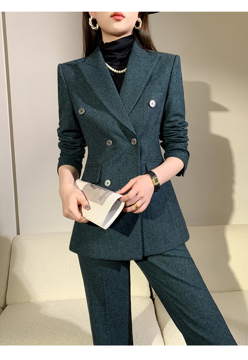 Sugargirl small suit suit autumn and winter new thickened wool professional host formal wear casual high-end temperament suit jacket gray (suit + bootcut pants) M