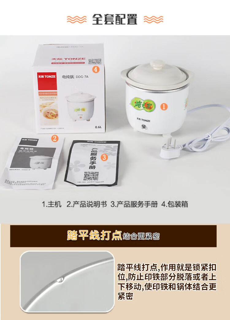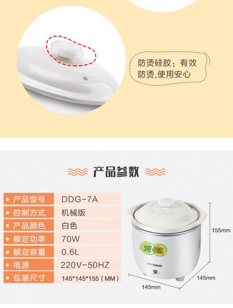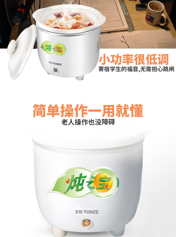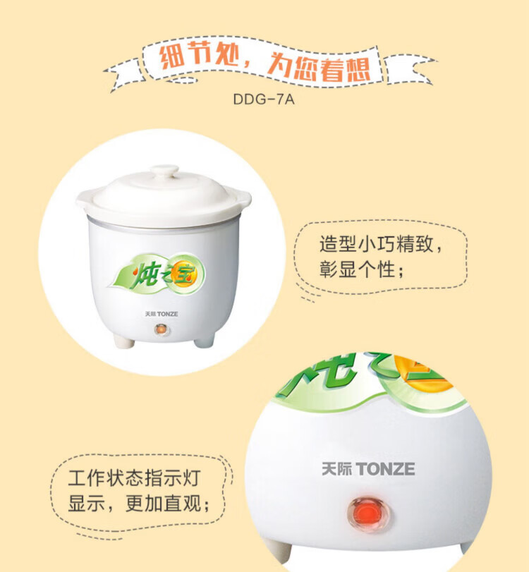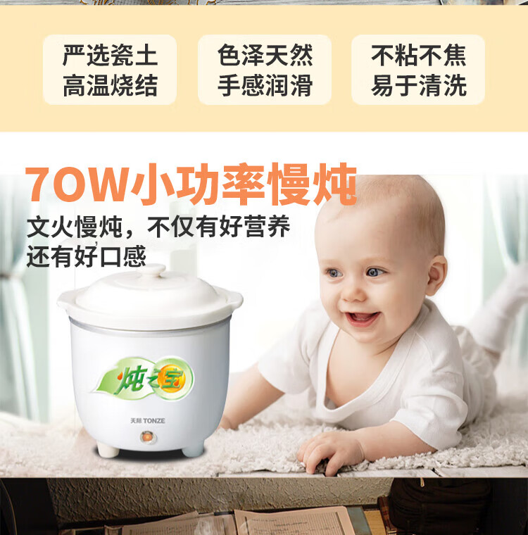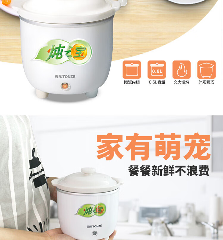 Tianji mini small stew pot electric stew cup household ceramic liner small porridge casserole stew for one person baby stew cup for 1 person about 2 bowls capacity 0.6L