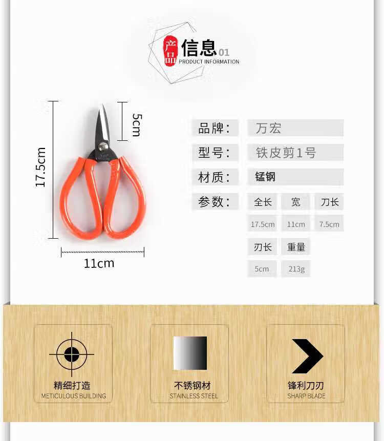 Wanhong scissors, iron scissors, old-fashioned short-bill industrial scissors, traditional electrician scissors, wire scissors, hand-made short-bill iron scissors, 1 pair