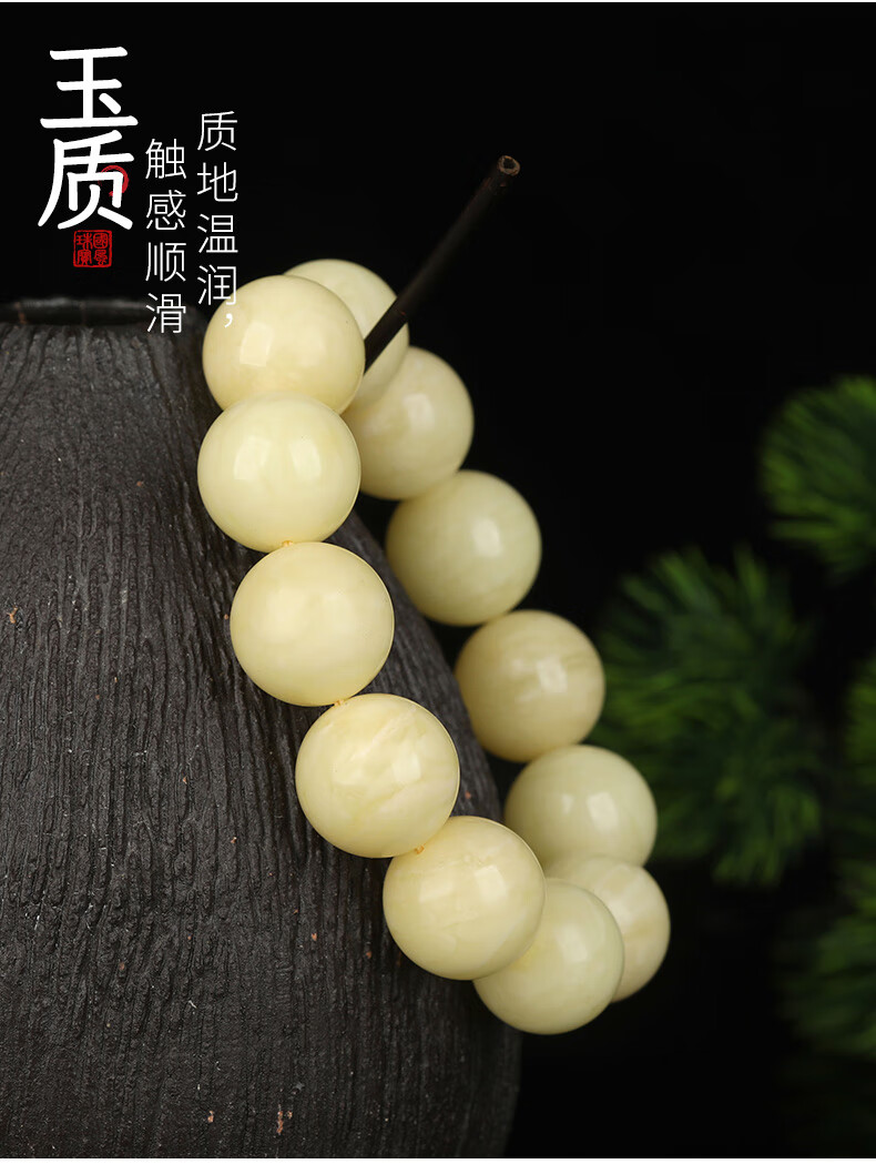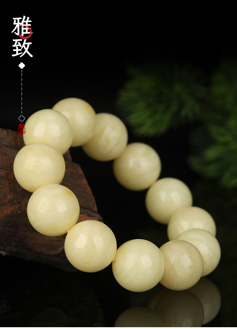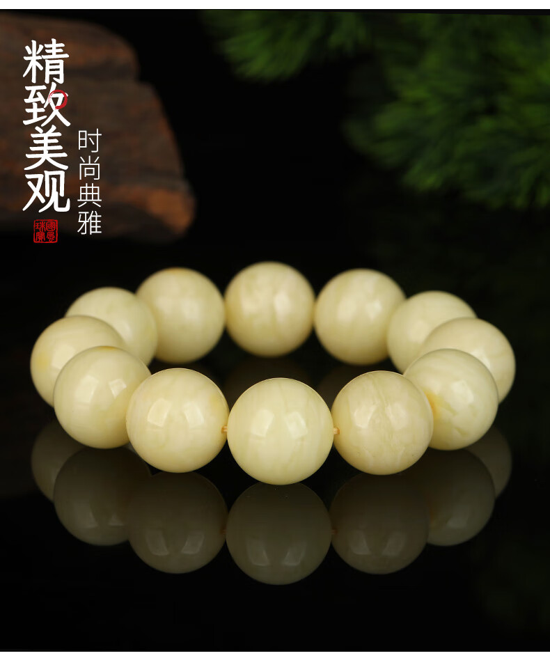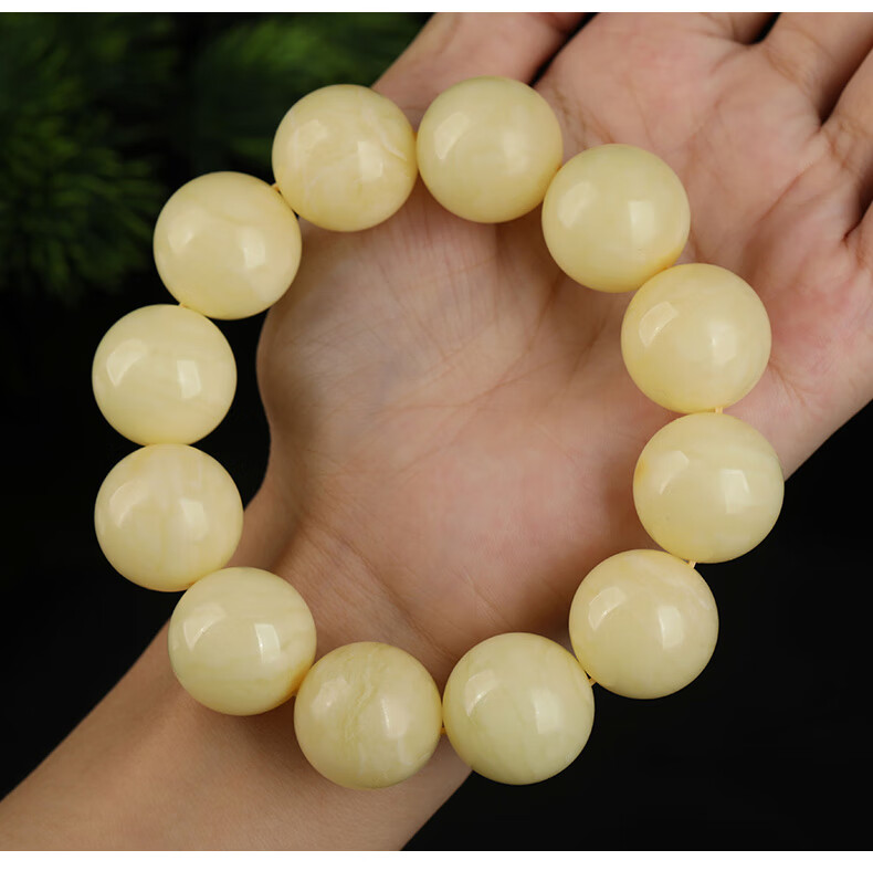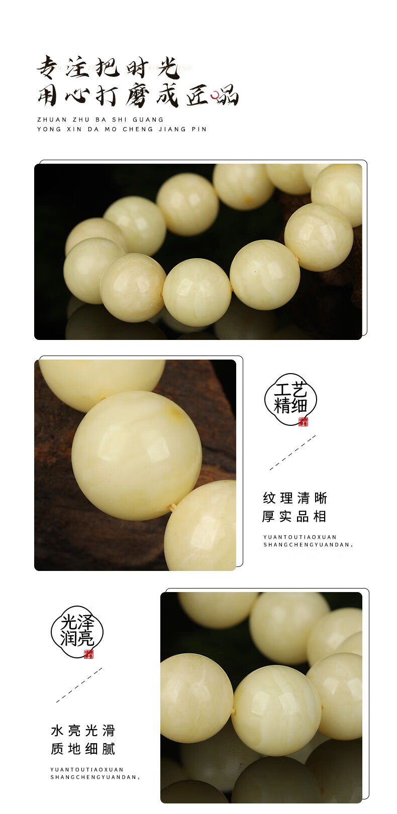 Ouchini Natural Collection White Wax Bracelet Orphan Beeswax Full of Honey Large Round Beads Amber White Nectar Bracelet Baltic Russian Material Natural Orphan One Product One Certificate One Shot Approximately 54.98g Approximately 20mm