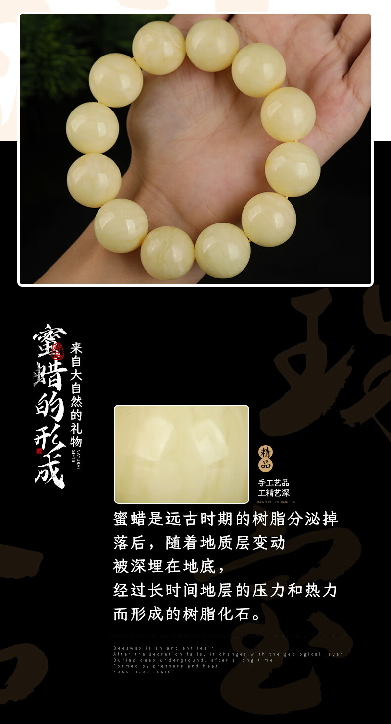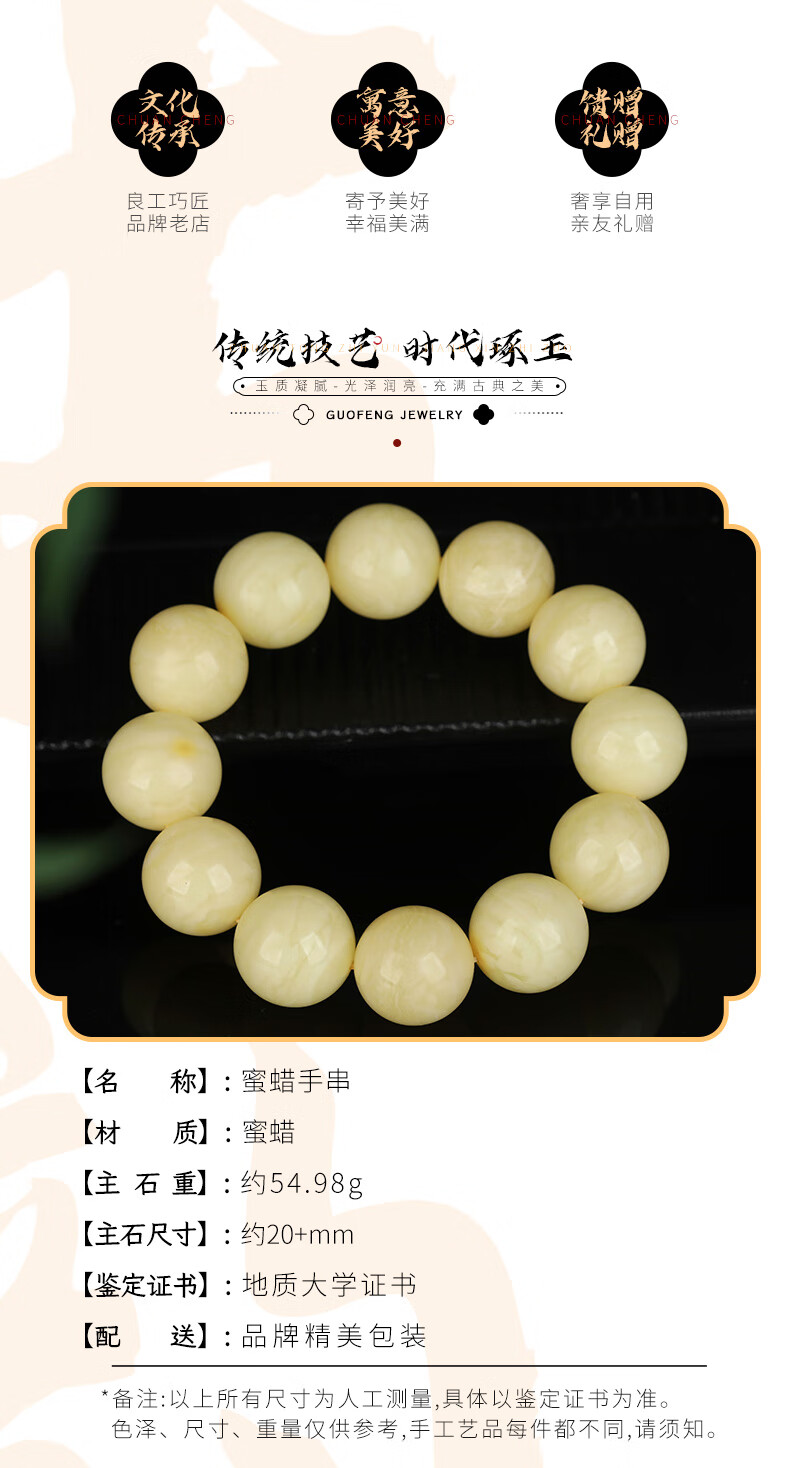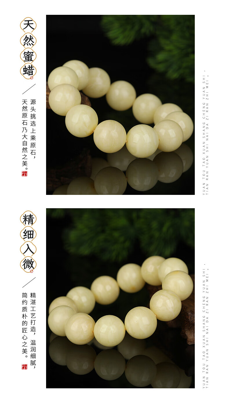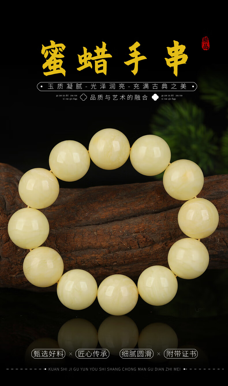 Ouchini Natural Collection White Wax Bracelet Orphan Beeswax Full of Honey Large Round Beads Amber White Nectar Bracelet Baltic Russian Material Natural Orphan One Product One Certificate One Shot Approximately 54.98g Approximately 20mm