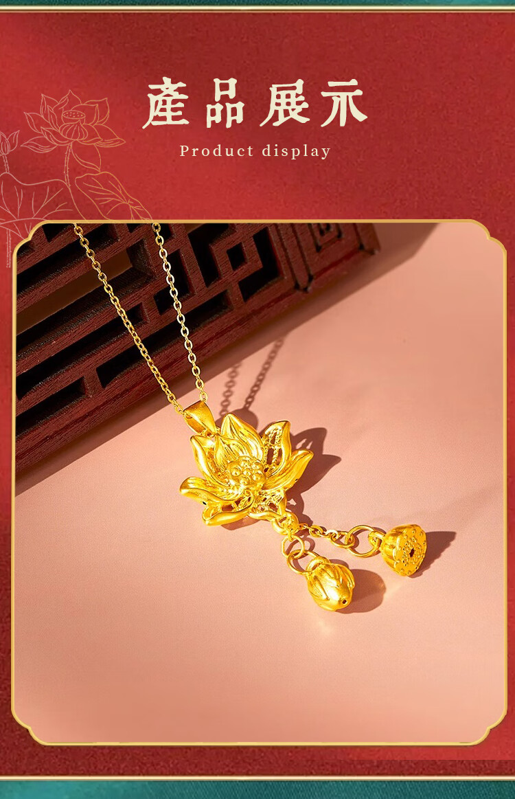 CHINA GOLD Pure Gold Filigree Lotus Pendant for Women Gold Necklace Good Luck Lotus Pendant Valentine's Day Gift for Girlfriend Today/Next Day Delivery Lotus Pendant with S925 Chain Approximately 1.3g