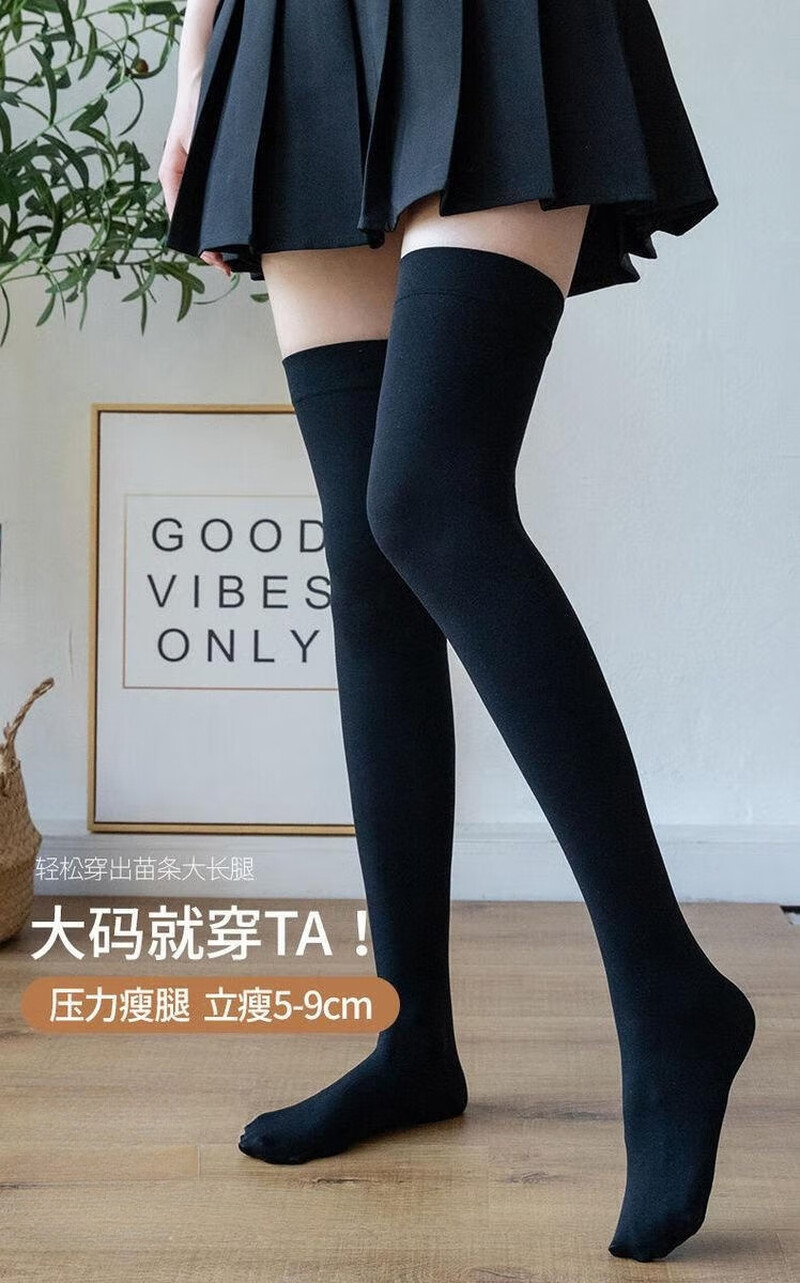 Hualiuyi stockings women's over-the-knee stockings spring and summer thin plus fat plus size fat mm 200 Jin Jin equals 0.5 kg Summer high black thigh socks 1 black 1 white stockings (135-200 Jin Jin equals 0.5 kg) Spring and Autumn