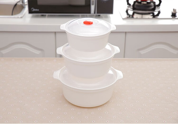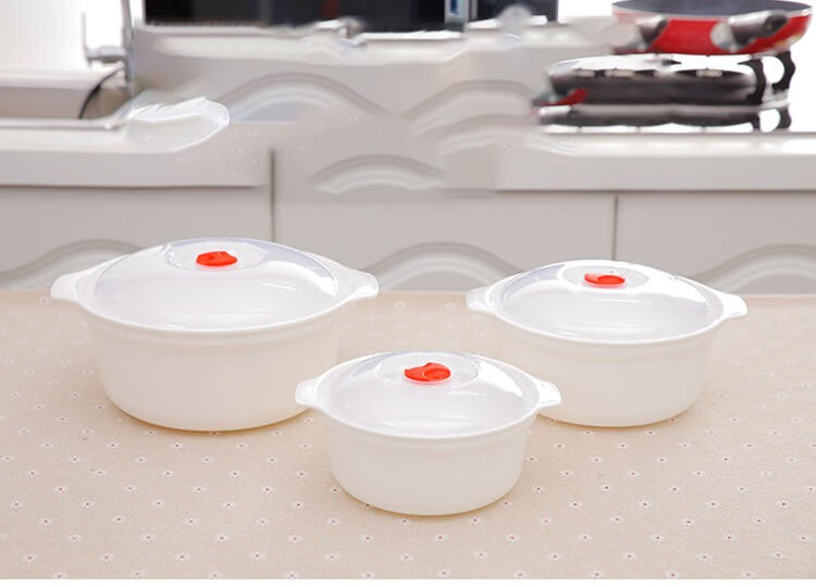 Boelter microwave bowl heating special container hot rice container instant noodle bowl lunch box plastic soup bowl with lid three-piece set large + medium + small