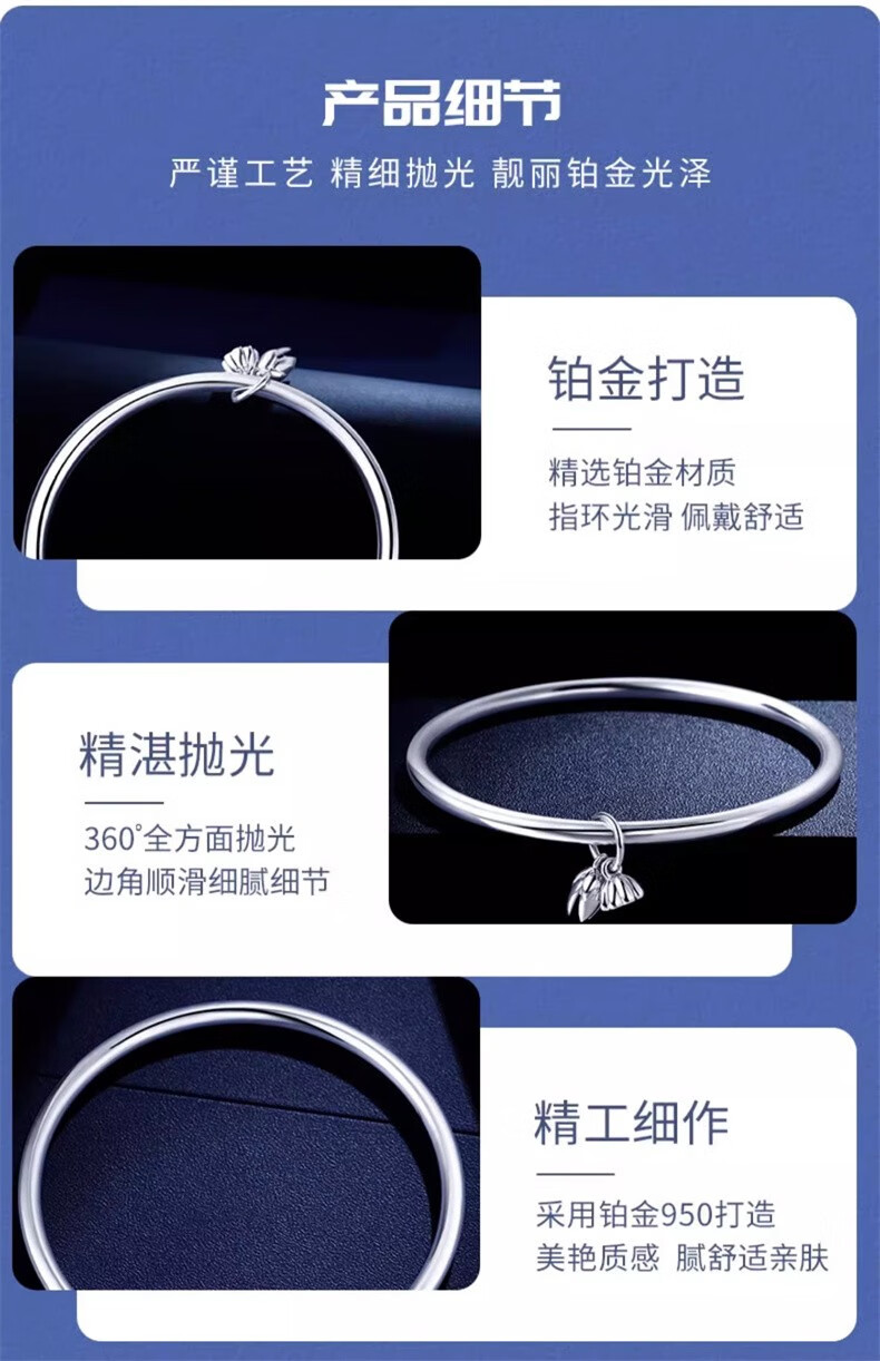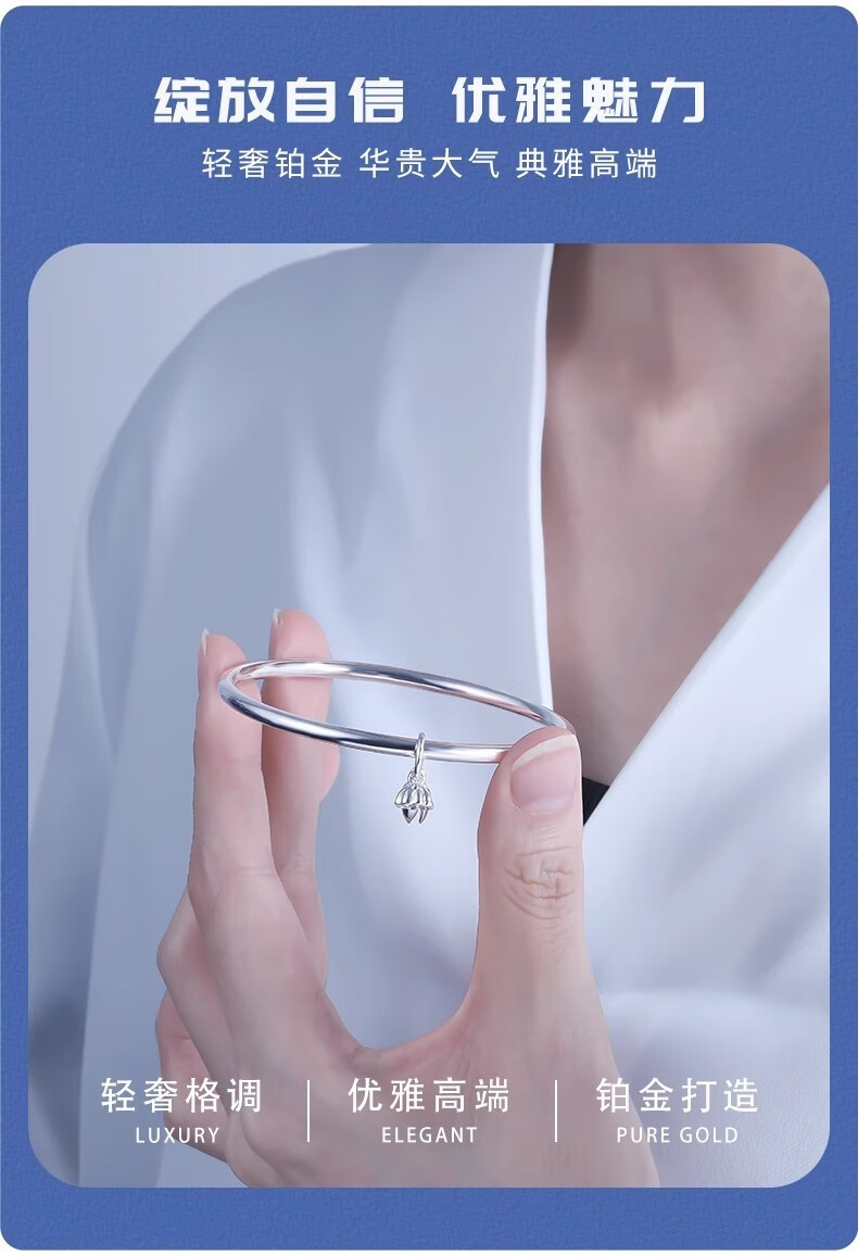 Xiyue Platinum Two Worlds Bracelet Platinum PT950 Plain Circle Smooth Lotus Peng Solid Bracelet for Wife’s Birthday Gift 20.58g Circle No. 56 Shipped in 1-10 working days