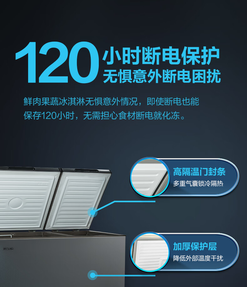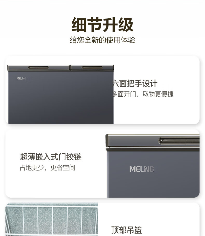 MeiLing Freezer 218 liters horizontal household commercial refrigeration and freezing two-door dual-temperature thin small freezer first-class energy efficiency top-opening double-door freshness large capacity small refrigerator freezer BCD-218DTCX Starry Sky Gray 218L