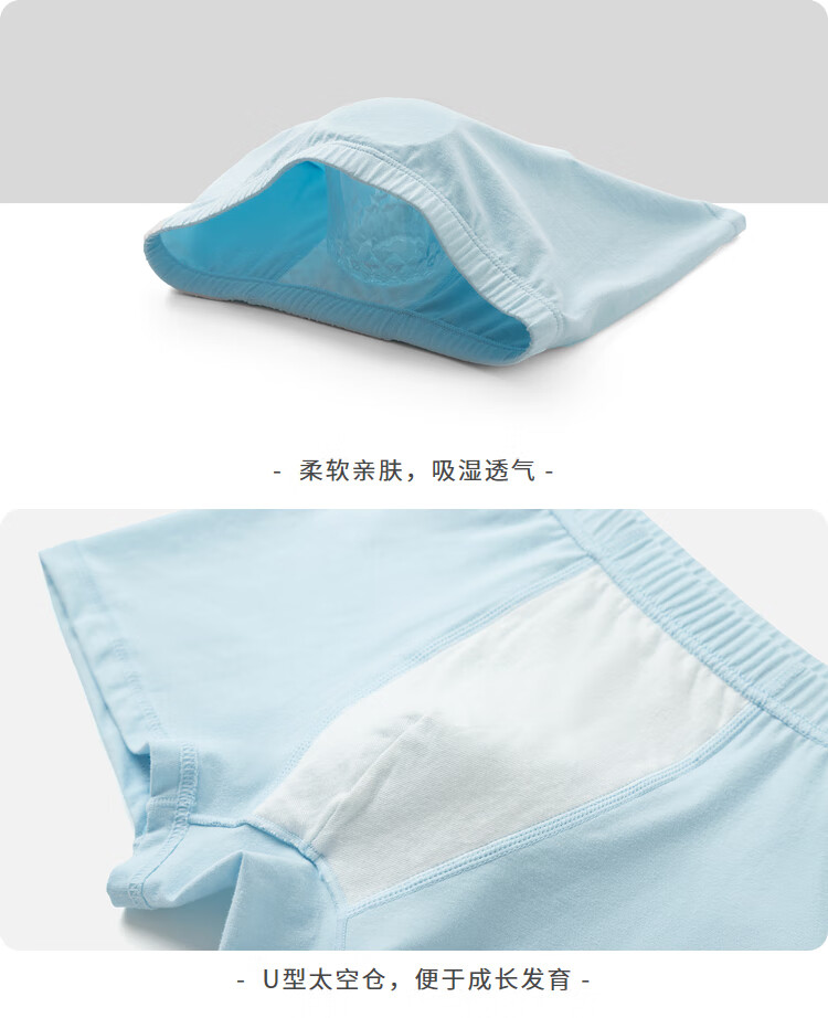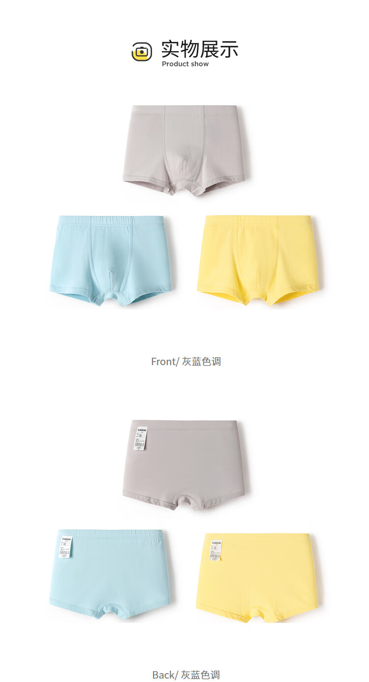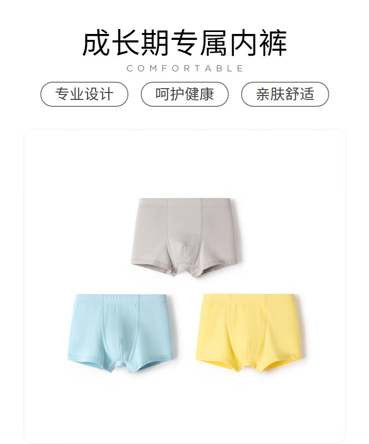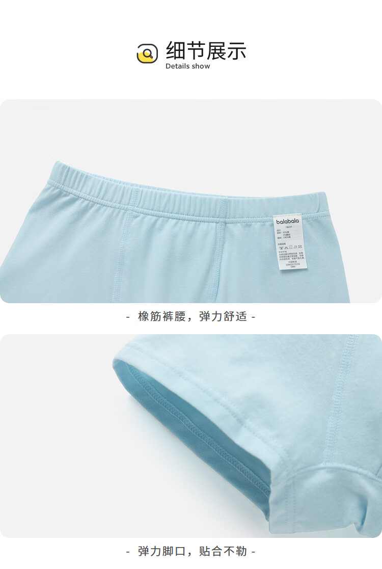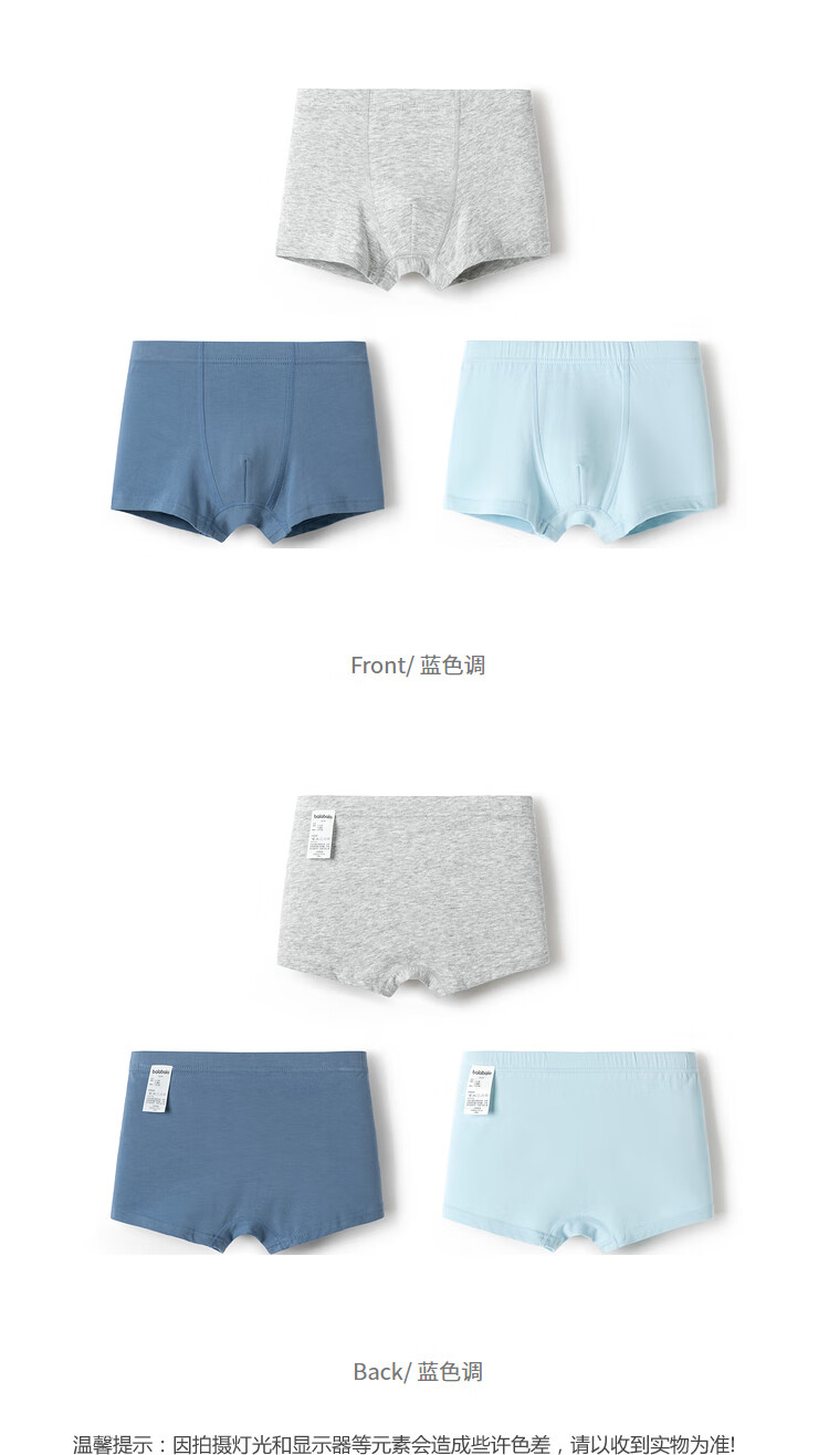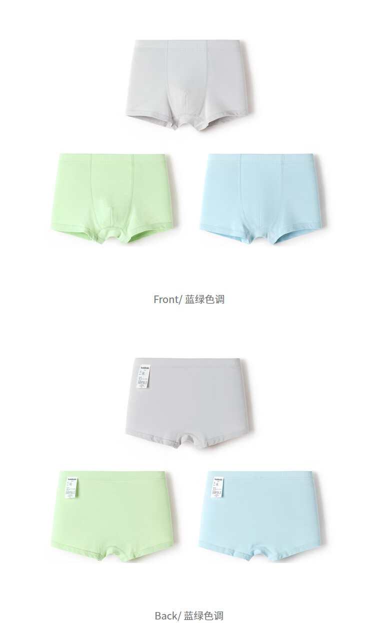 Balabala children's underwear cotton boxer boys' boxer shorts solid color small children, middle and large children without PP three-pack blue-green tone 00484 110 cm