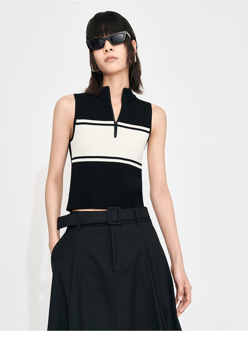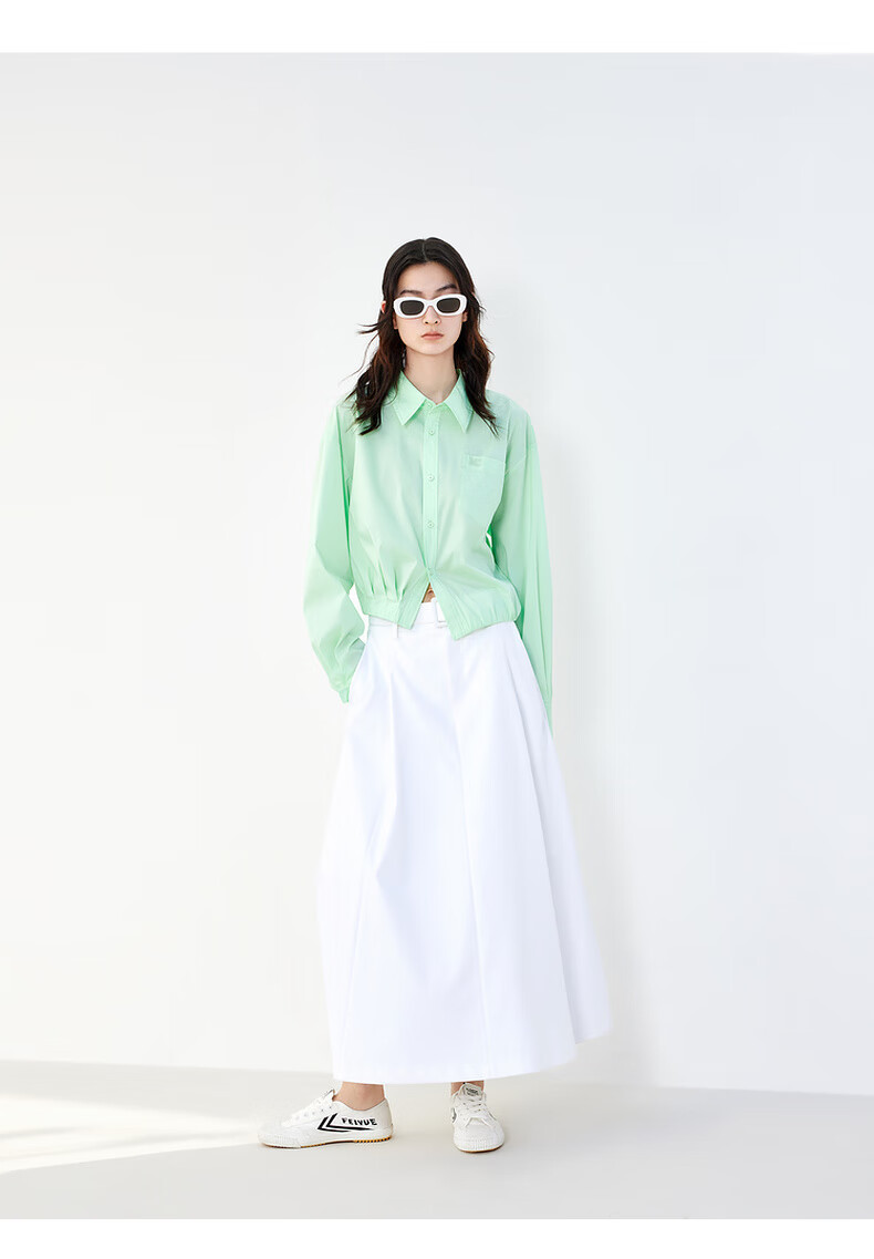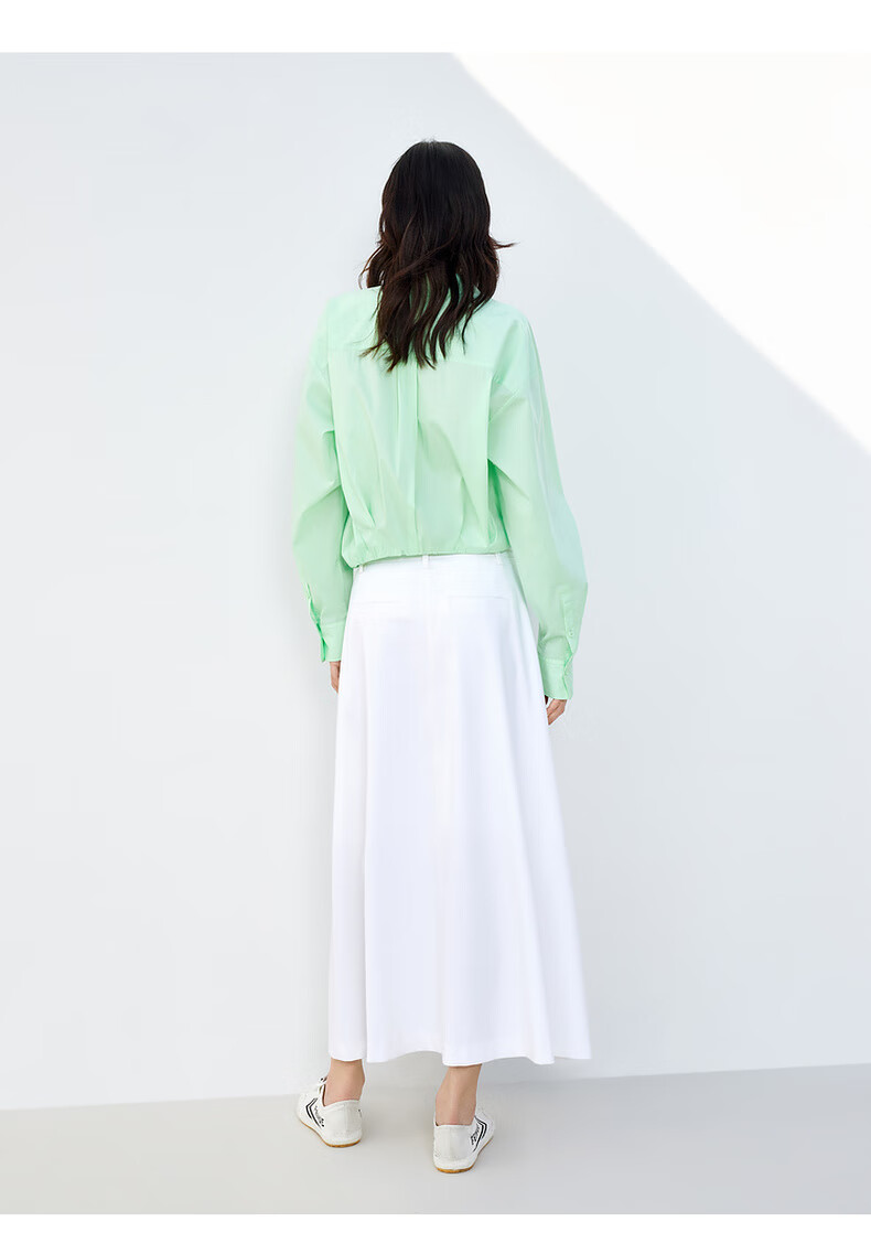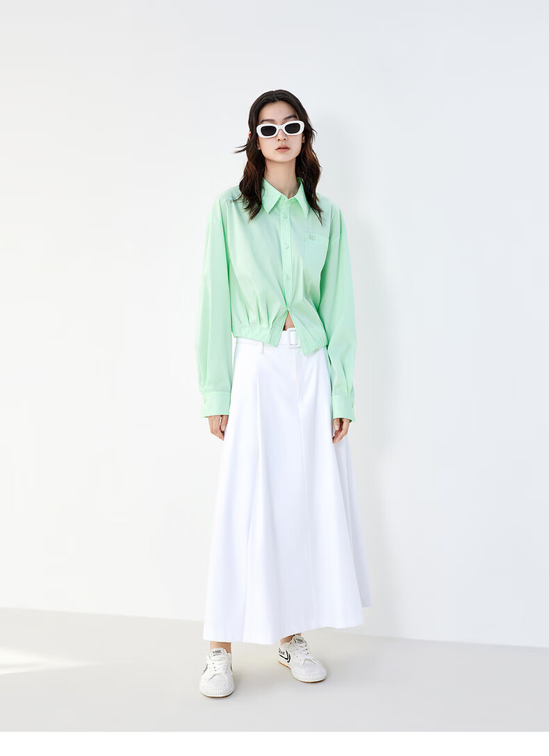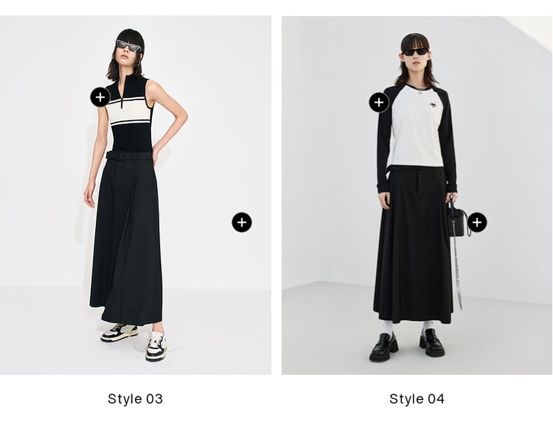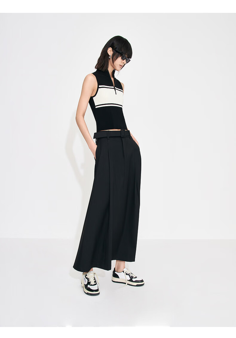 MO&Co. Mid-high waist long pleated loose A-line skirt umbrella skirt (with belt) design skirt Moanke black-2nd batch M 165