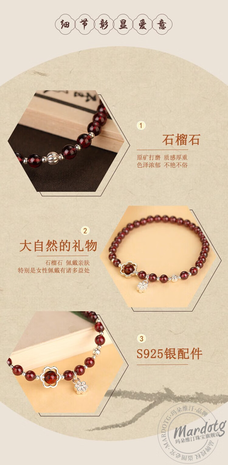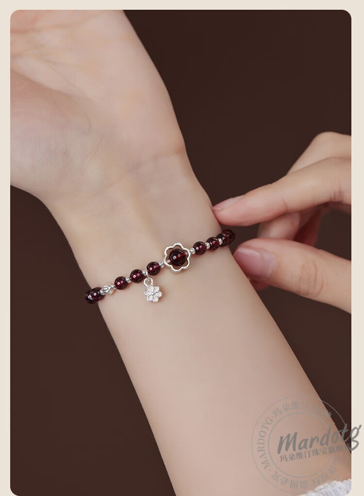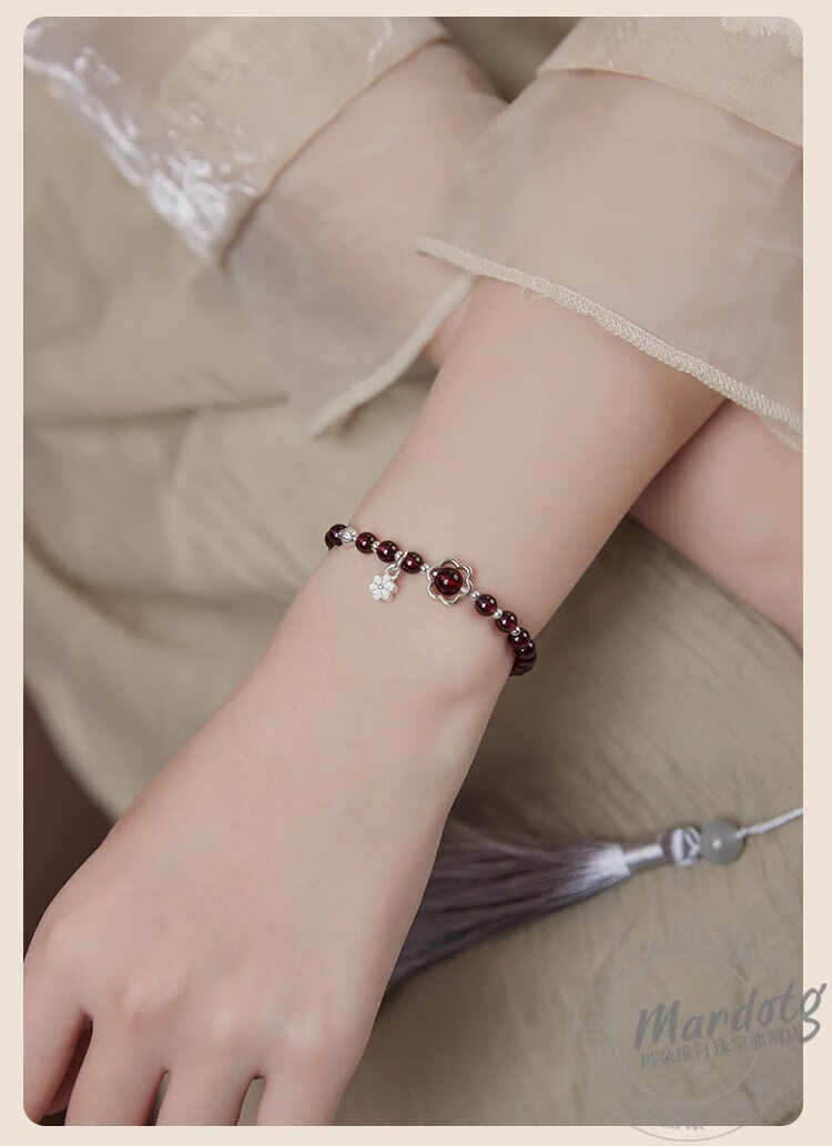MARDOTG burgundy garnet bracelet female flower crystal bracelet gift for girlfriend 6mm bead diameter