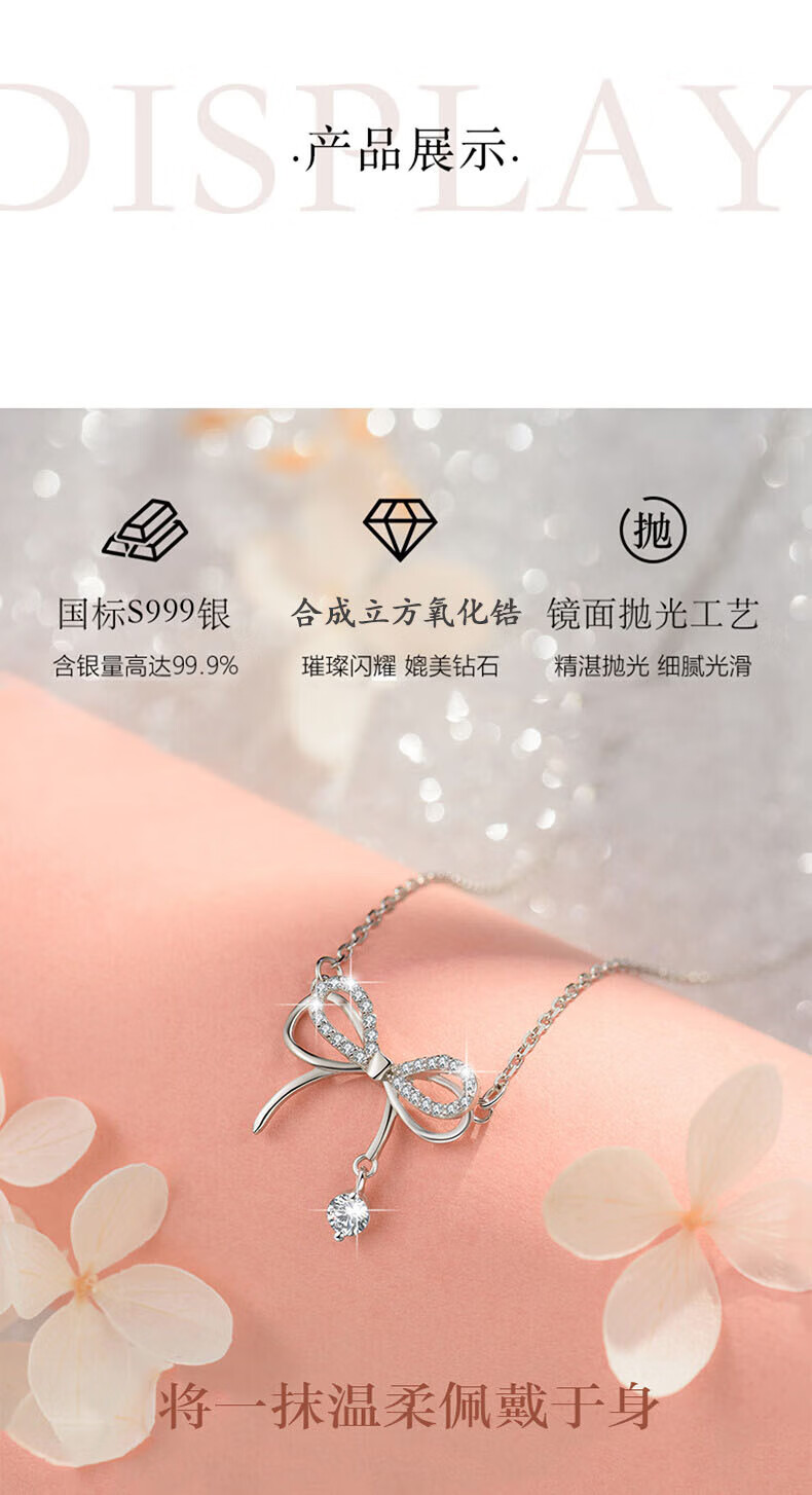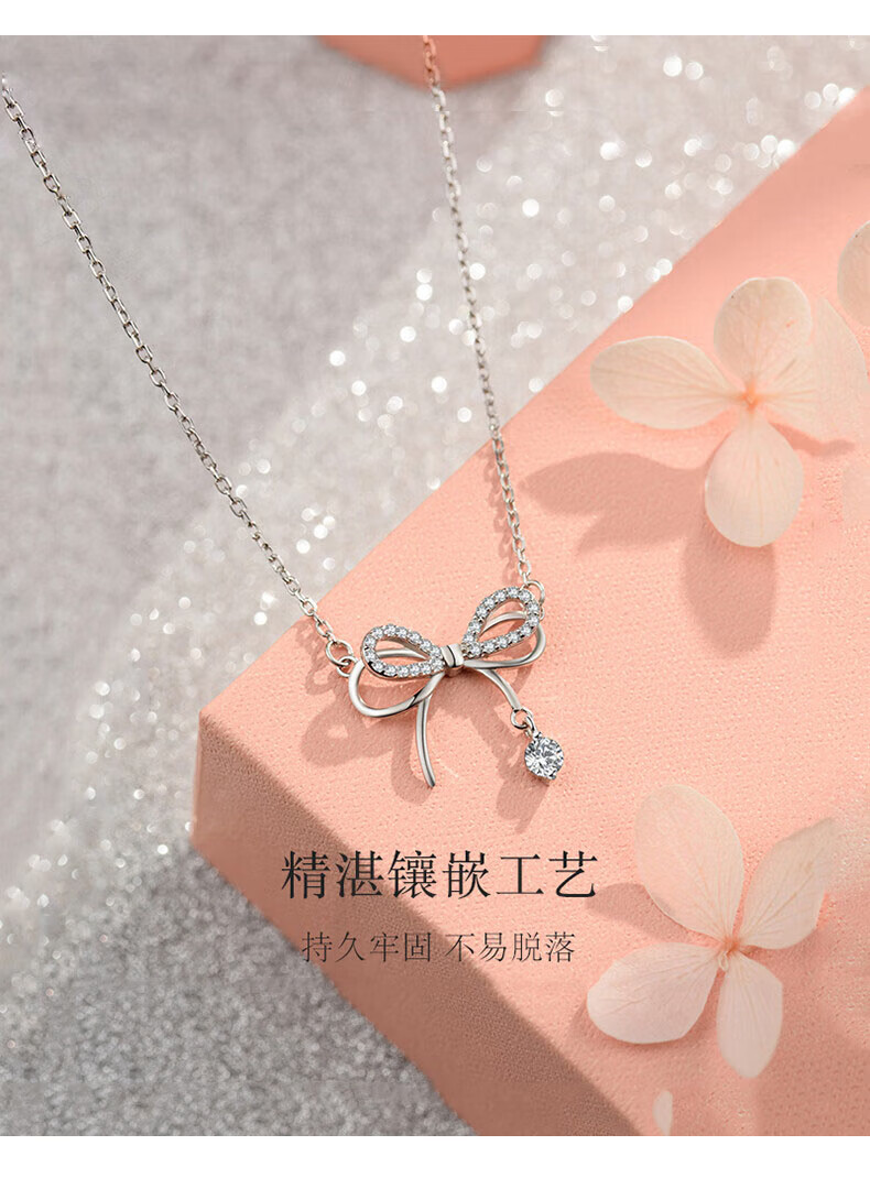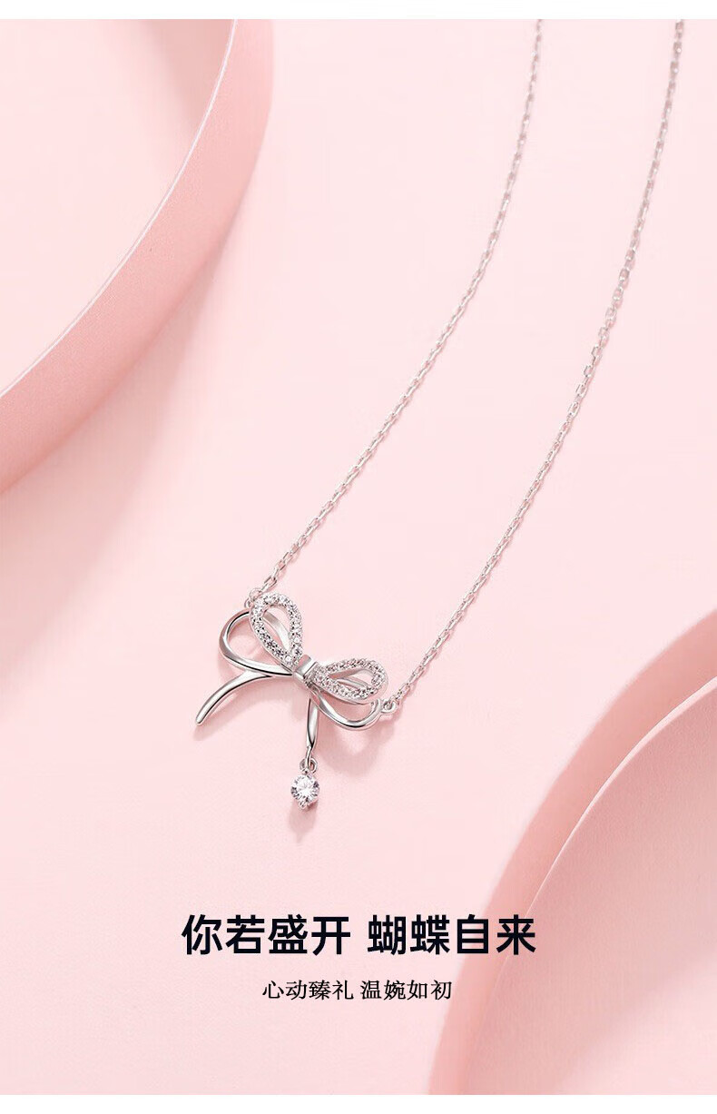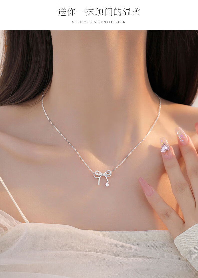 Farcoko Light Luxury White Gold Bow Necklace Women's Clavicle Chain Silver Clavicle Necklace Chinese Valentine's Day Gift for Girlfriend Haoyue Silver-Bow Knot Necklace