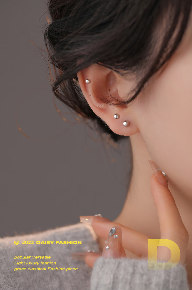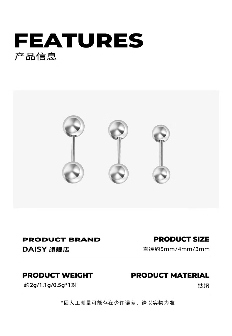 DAISY DREAM medical titanium steel earrings for women, double-headed earrings for piercing, ear bone nails for sleeping, no-removal earrings for men, screw-buckle earrings, 1 pair of 4mm high-quality steel double-headed earrings