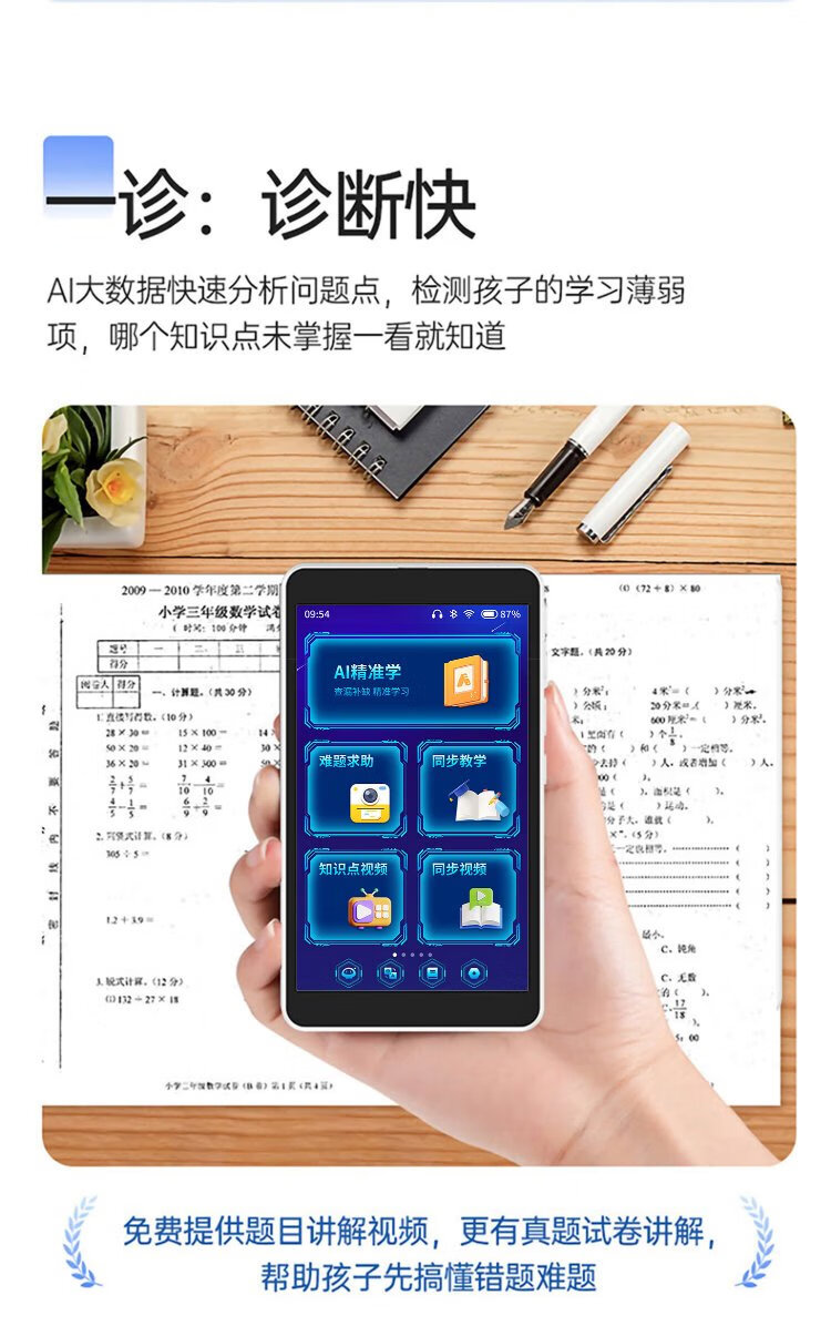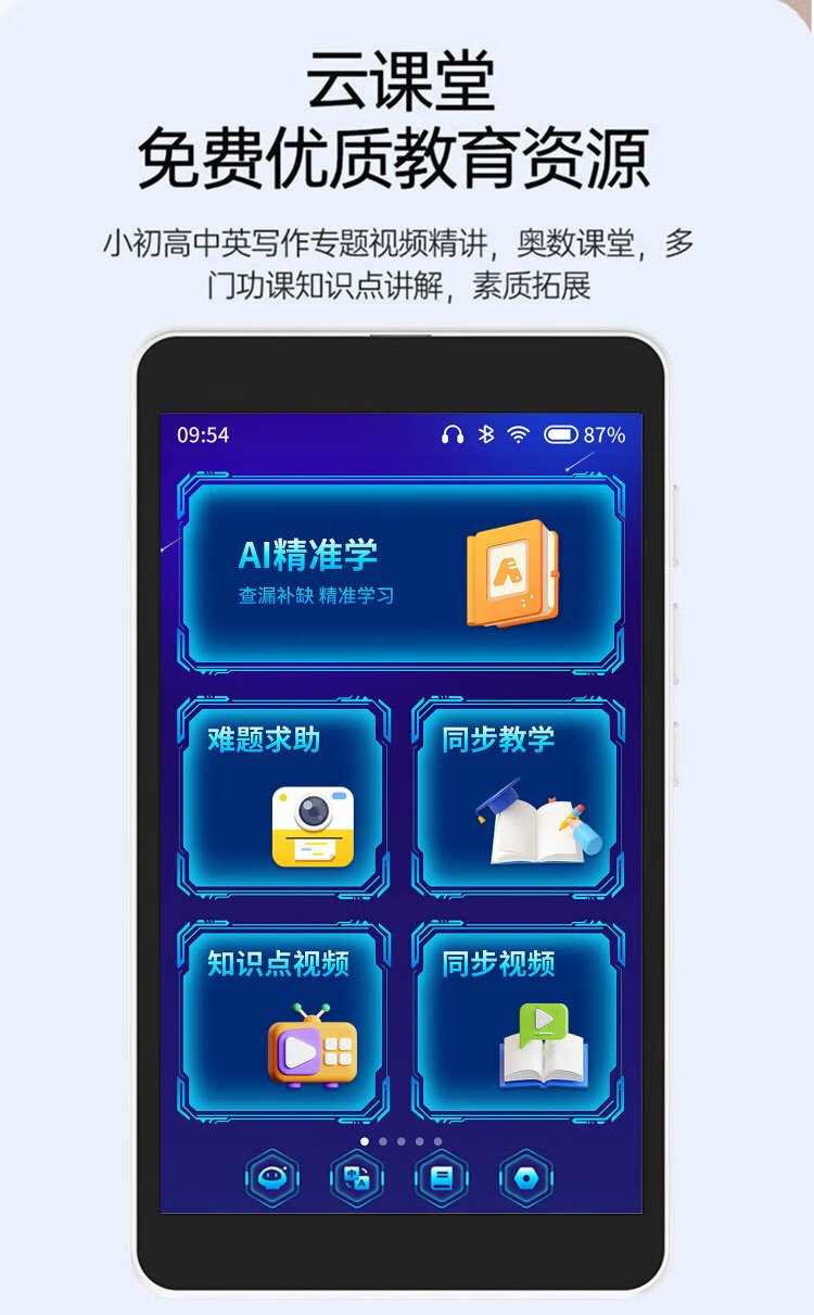 Nine-finger cat learning machine, taking pictures of famous teachers' lectures, synchronous learning of math lectures, English repeating machine, listening treasure ai education pocket learning machine, primary school, high school and high school comprehensive learning tablet computer, white, flagship upgraded version 5.7 inches + 128G storage + photo answering