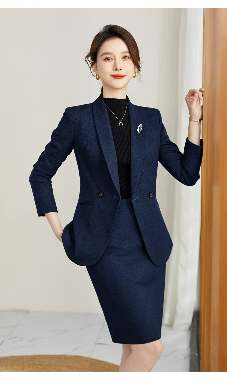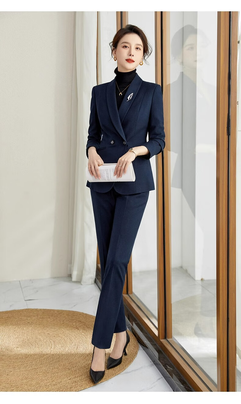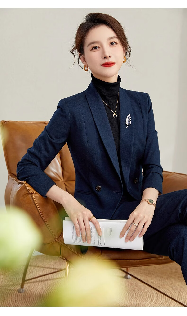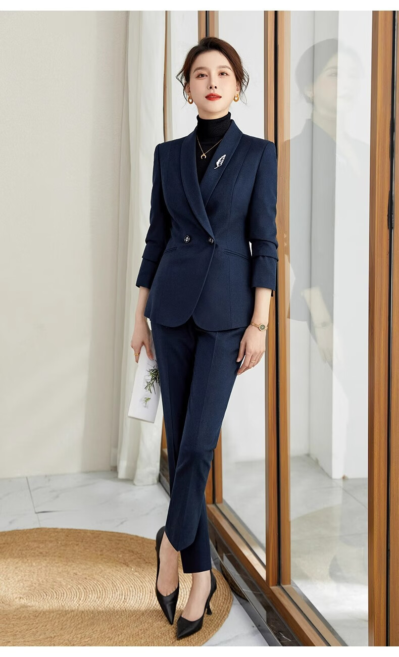 ROMON suit suit slim and fashionable high-end autumn and winter gold store shopping guide suit women's formal jacket professional work clothes navy blue suit jacket + pants S